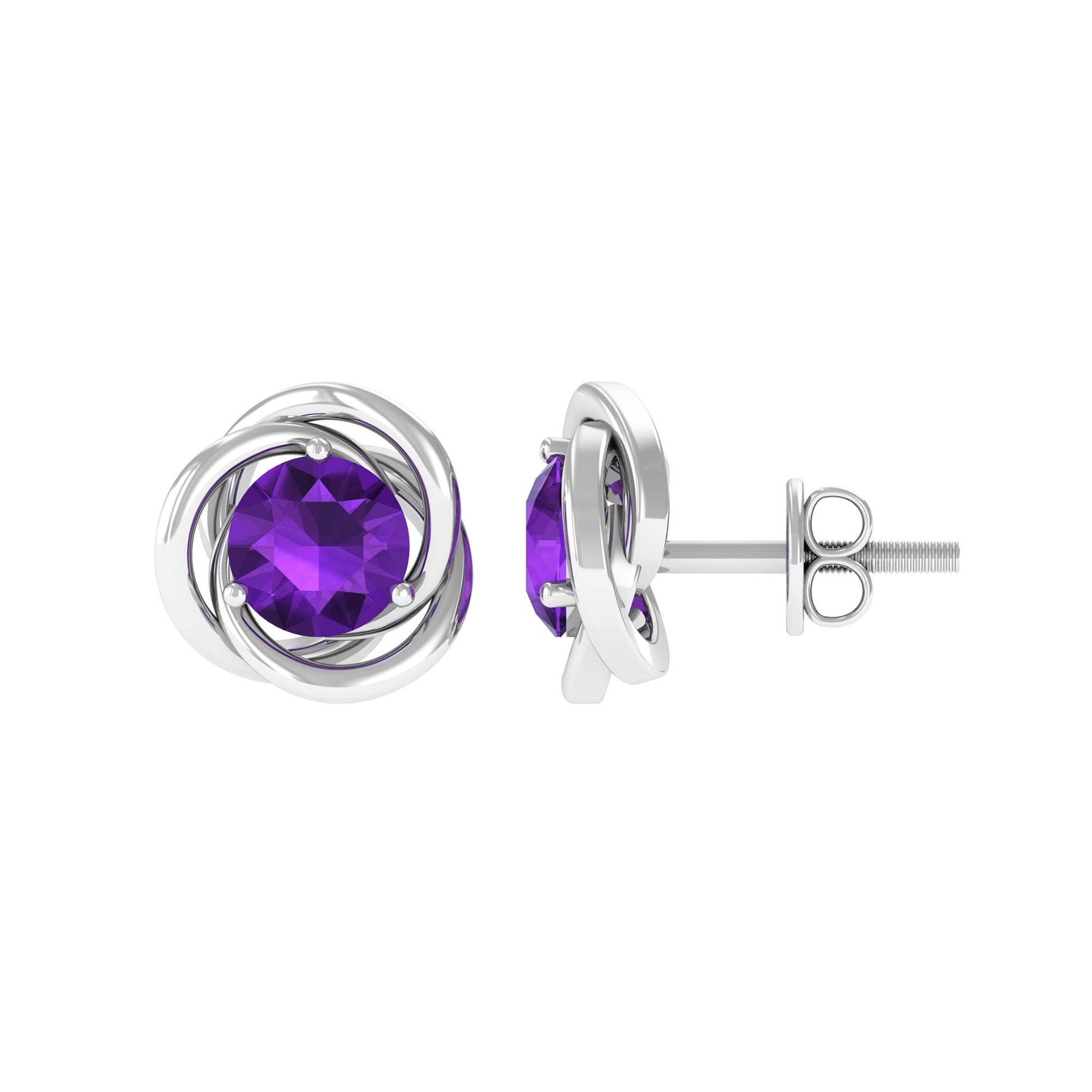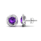 Add a pop of purple color to your ears with these elegant Swirl Stud Earrings featuring beautiful Amethyst gemstones set as a solitaire in 3 Prong Setting.
