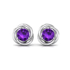 Natural Amethyst Solitaire Swirl Stud Earrings