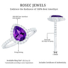 Natural Amethyst Teardrop Engagement Ring with Diamond Halo
