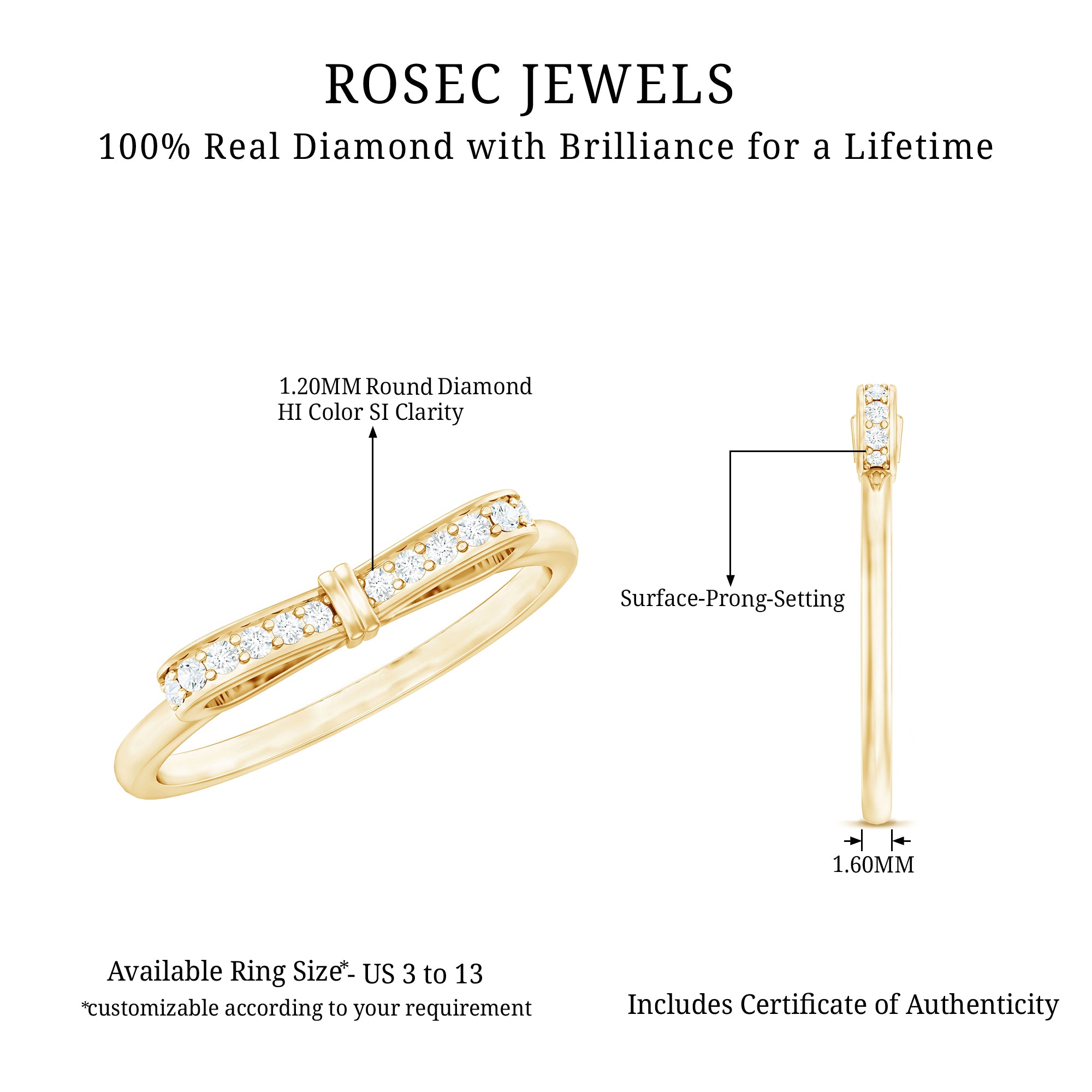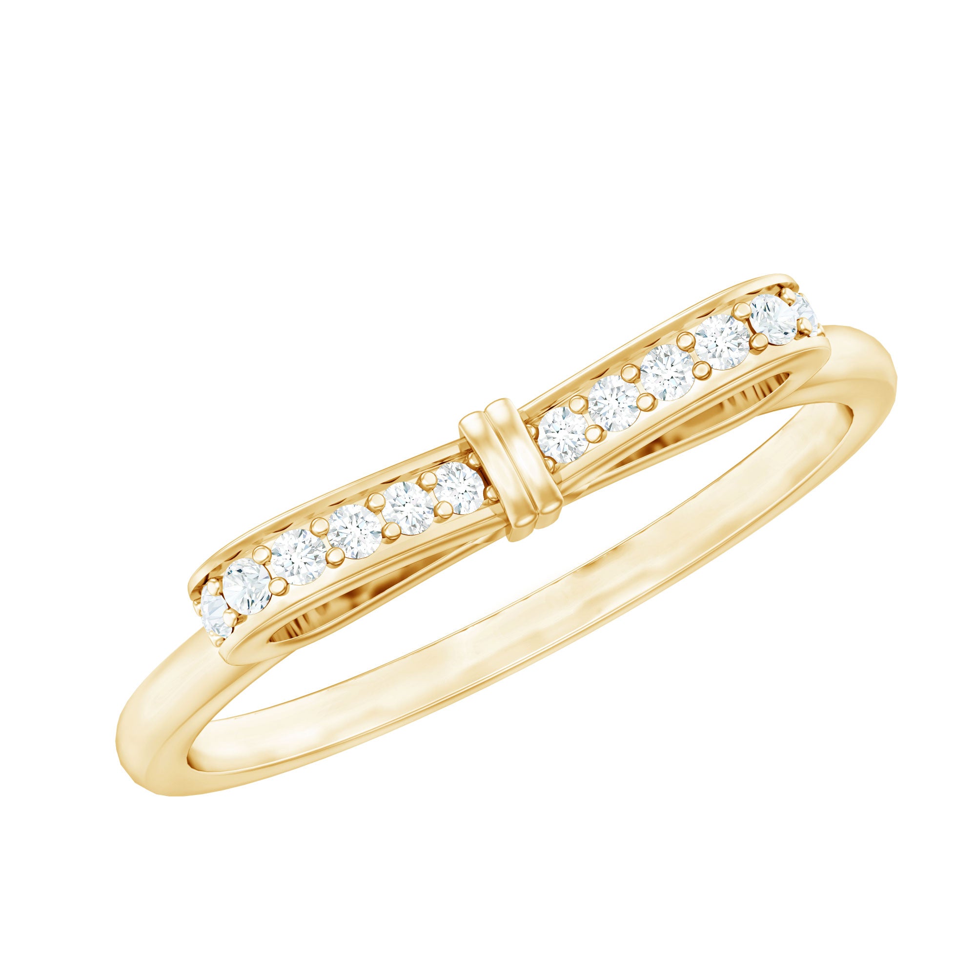 Add a touch of whimsy and elegance to this Diamond Promise Ring for Her that features a delicate bow motif adorned with brilliant Round Diamonds sparkling with every movement. The graceful bow design symbolizes a promise wrapped in love, making this Bow Promise Ring an ideal choice for marking a special occasion or celebrating a meaningful commitment. Its stackable design allows for versatile styling, effortlessly pairing with other rings or standing beautifully. This April Birthstone Ring complements the intricate bow, creating a harmonious balance between sophistication and playfulness. Whether given as a promise ring, a unique engagement ring or a delightful addition to your jewelry collection, this Promise Stackable Ring radiates both elegance and affection, while embracing the beauty and joy of a truly special piece.