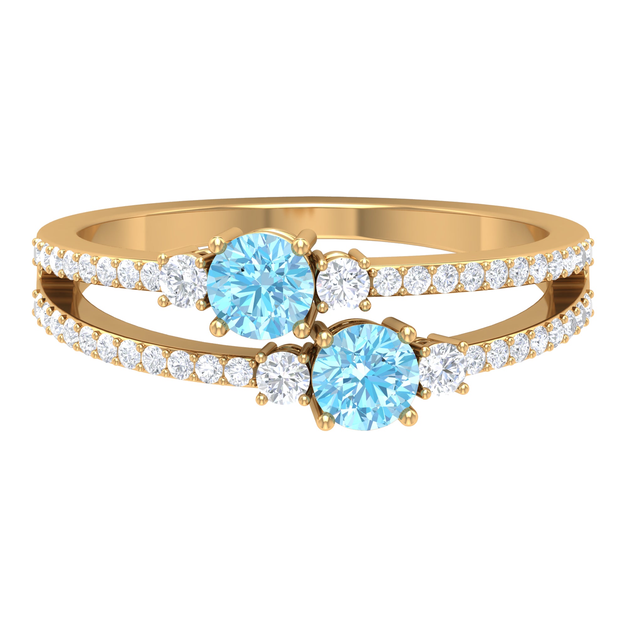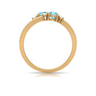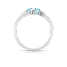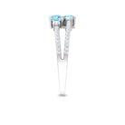 Natural Aquamarine Diamond 2 Stone Promise Ring with Split Shank