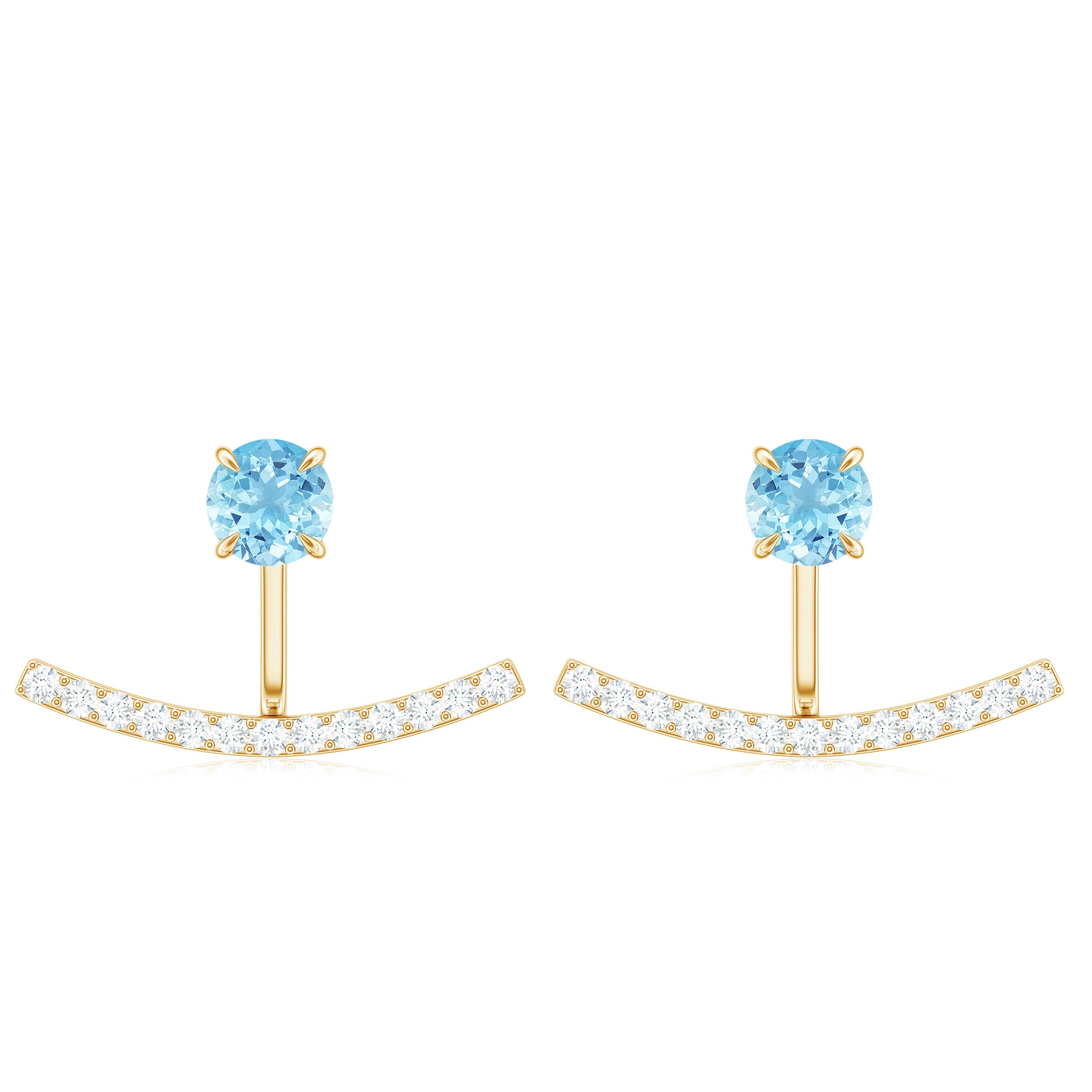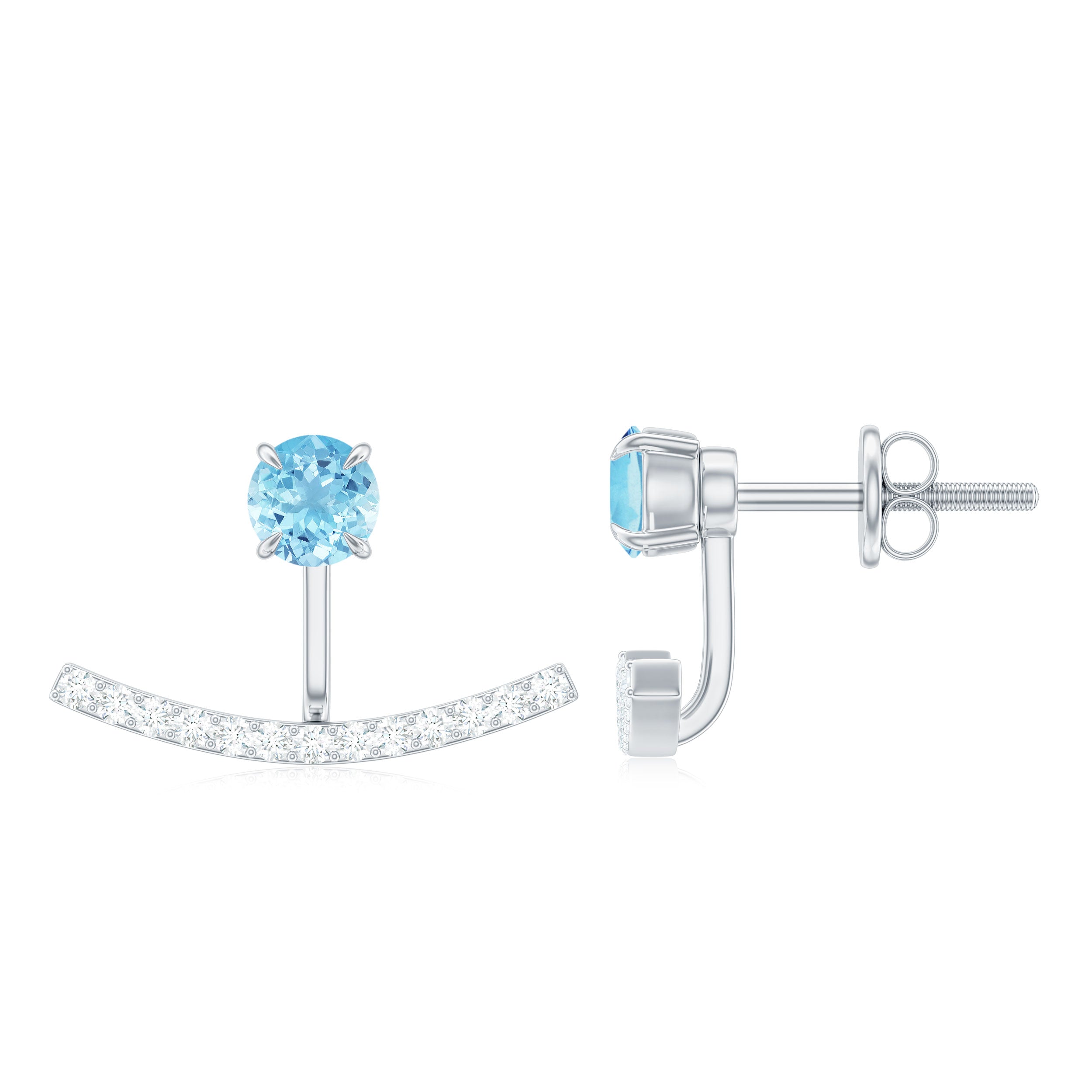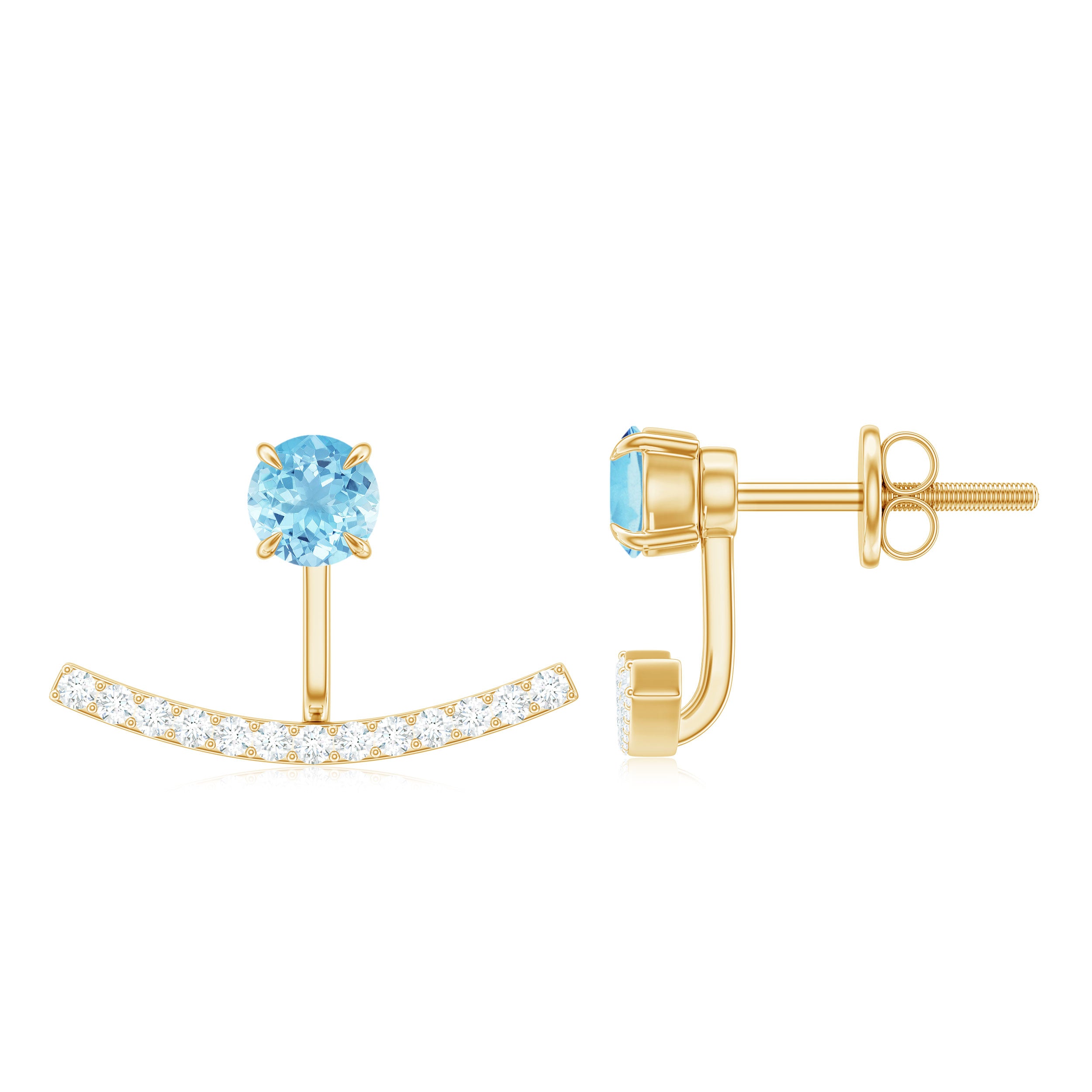 Handcrafted to perfection, these Jacket Earrings redefine elegance with a modern twist on classic sophistication. These Fine Earrings feature 4 mm Round Shape Aquamarine set in Claw Setting, capturing the serene beauty of clear waters, while sparkling Diamond stones accentuate their brilliance, creating an interplay of light with every movement. The innovative jacket design allows these earrings to transform effortlessly, adding versatility to your jewelry collection, perfect for both understated daytime looks and glamorous evening ensembles. These Aquamarine Diamond Earrings are secured with Screw Back Closure, ensuring comfort and security. Presented in a signature jewelry box, these Ear Jacket Earrings make an ideal gift for birthdays, anniversaries or simply to celebrate someone special. Whether worn alone or paired with other favorites, these Aquamarine Earrings are an expression of love for detail and a touch of luxury that can be cherished for a lifetime. Elegant and captivating, they embody the perfect balance of contemporary design and classic charm.