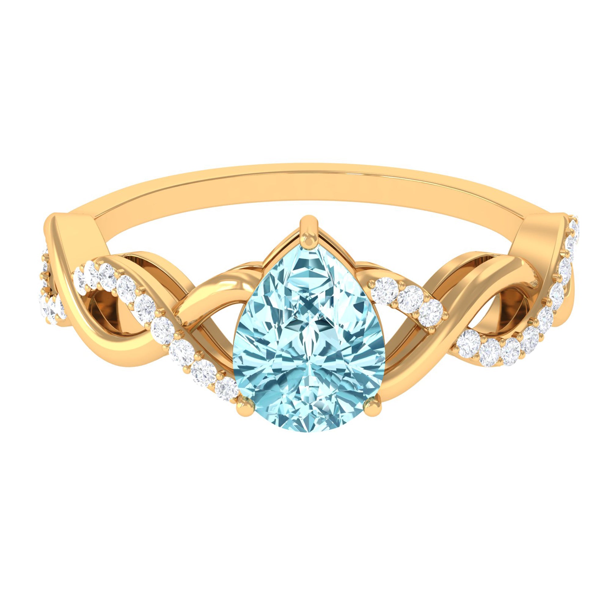 Natural Aquamarine Pear Shaped Engagement Ring with Diamond Infinity Shank