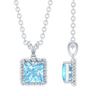 Craft an unforgettable experience with this timeless Princess Cut Pendant, designed to captivate the heart of every woman. This elegant Solitaire Pendant Necklace is made from 14k white gold plated sterling silver and showcases a breathtaking 5 MM Princess Cut Aquamarine gemstone encircled by a twisted rope frame. The Aquamarine Solitaire Necklace comes with a matching cable chain that secures with a lobster clasp, making it easy to adjust the length. The pendant bail features a rabbit ear design, adding a distinctive touch. The secure prong setting enhances the visibility of the stunning gemstone for everyone to admire. Its classic design allows for effortless layering with another chain or another gemstone necklace. The AAA quality Aquamarine shines with a captivating blue hue that sparkles beautifully in the light. The straightforward yet elegant design of this Aquamarine Necklace makes it perfect for any occasion, whether its casual or formal. Its the perfect accessory to elevate any outfit with a touch of sophistication. With its lasting design and timeless appeal, this March Birthstone Necklace is sure to become a beloved piece for years to come.
