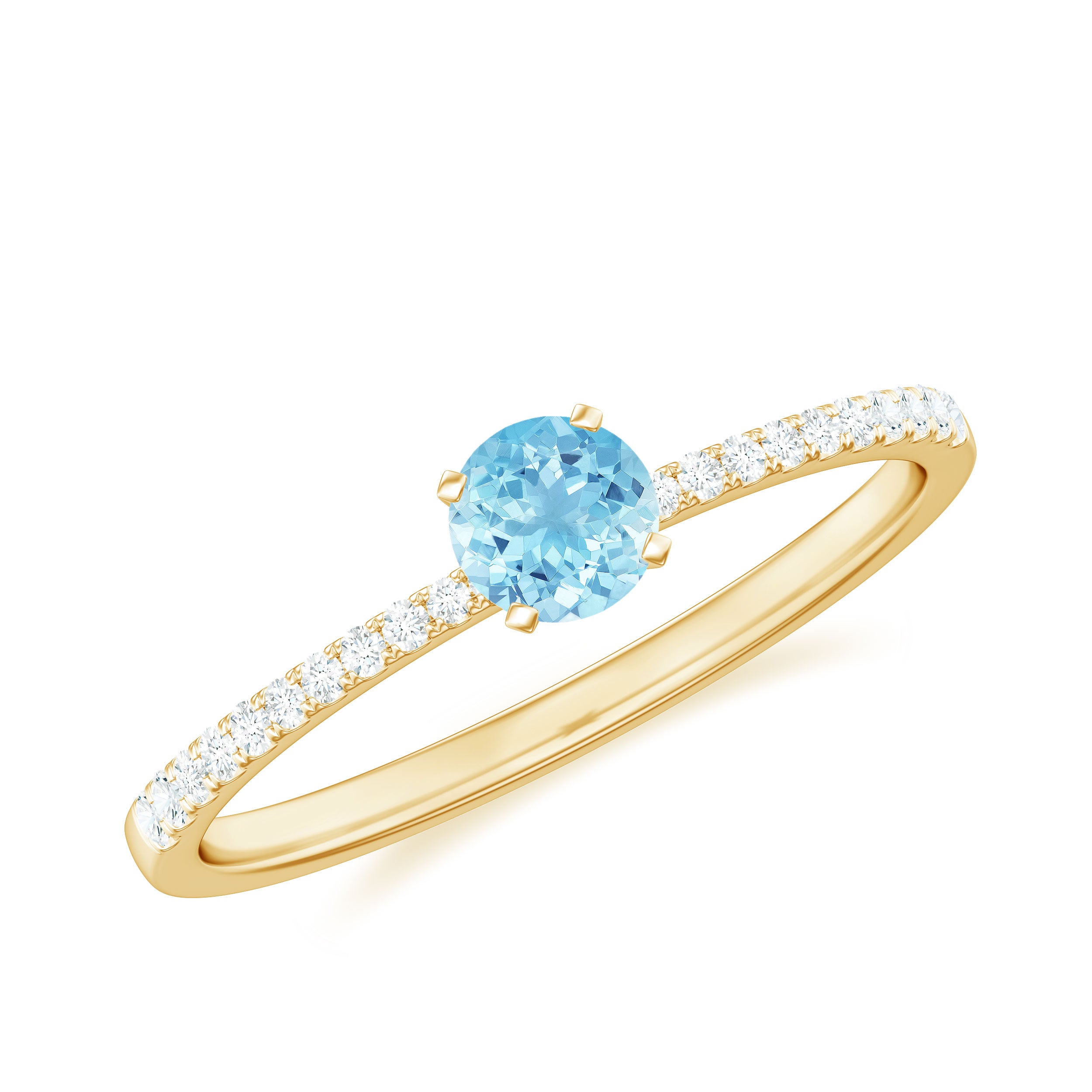 This breathtaking Solitaire Ring features an Aquamarine gemstone as a center stone flanked with sparkling Diamond gemstones. A symbol of everlasting love.