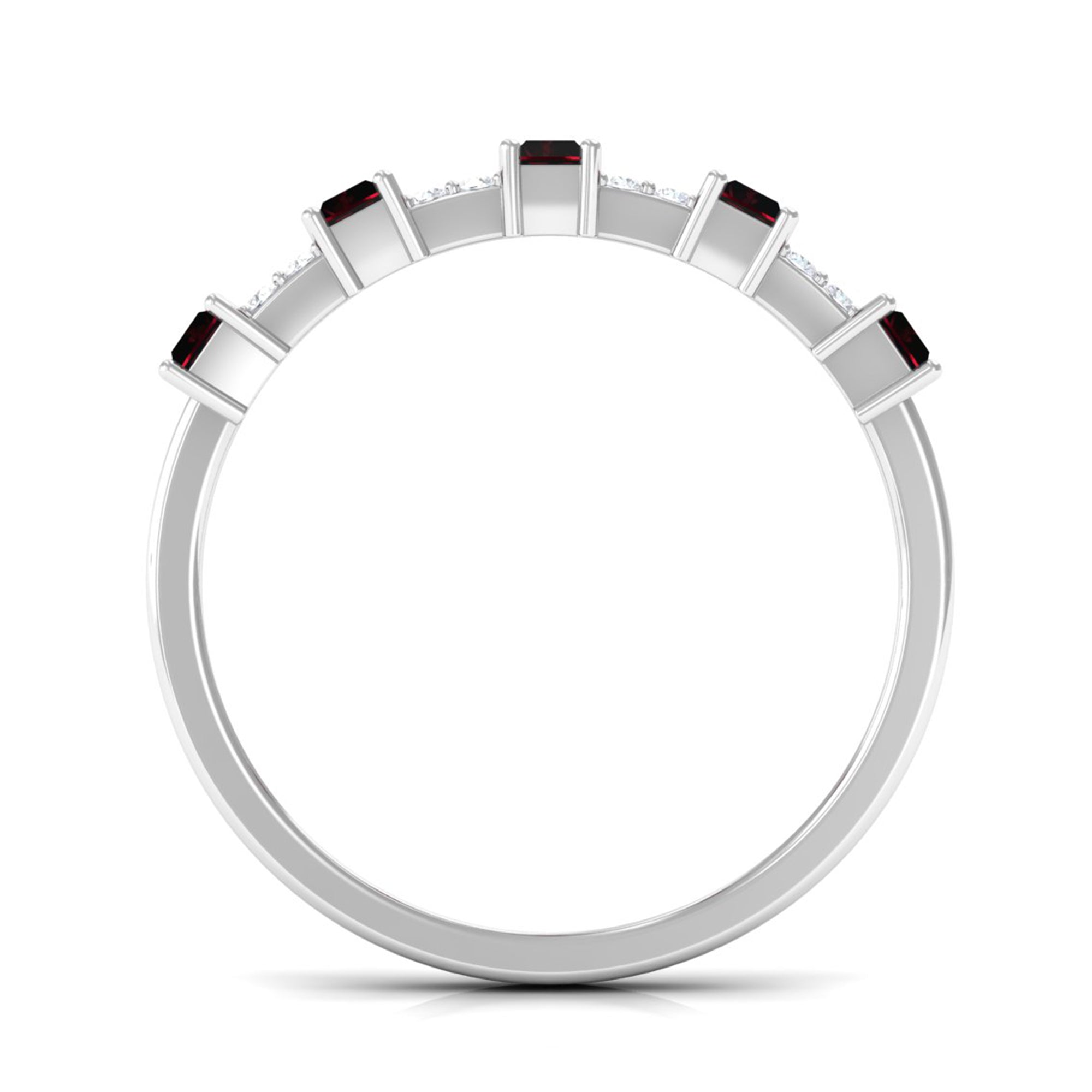 Natural Baguette Garnet Half Eternity Band with Diamond
