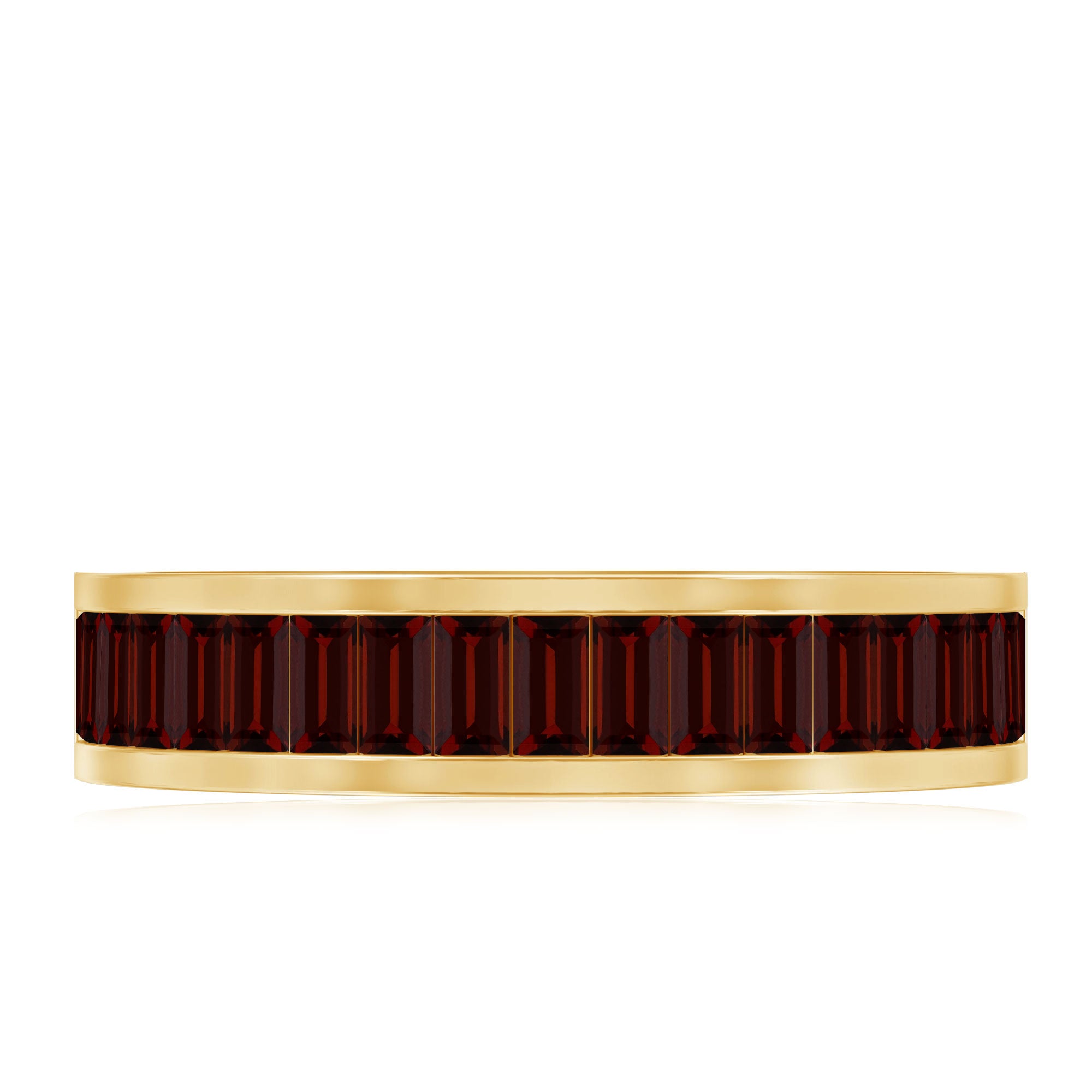 Natural Baguette Garnet Wedding Band in Yellow Gold Plated Silver