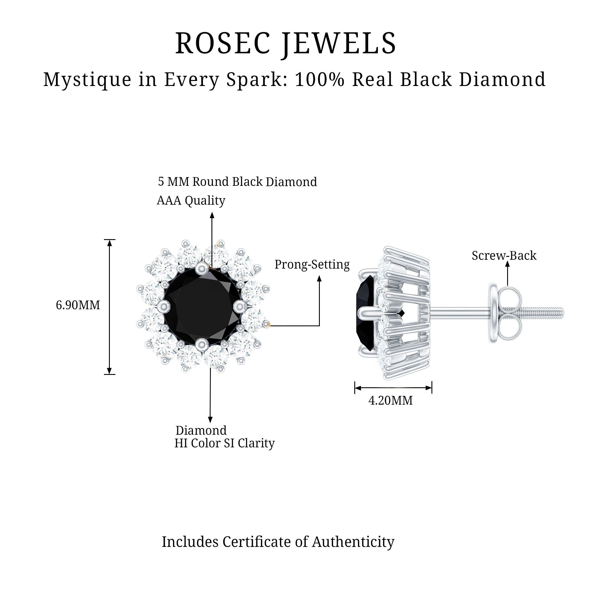Natural Black Diamond Everyday Stud Earrings with Moissanite Halo