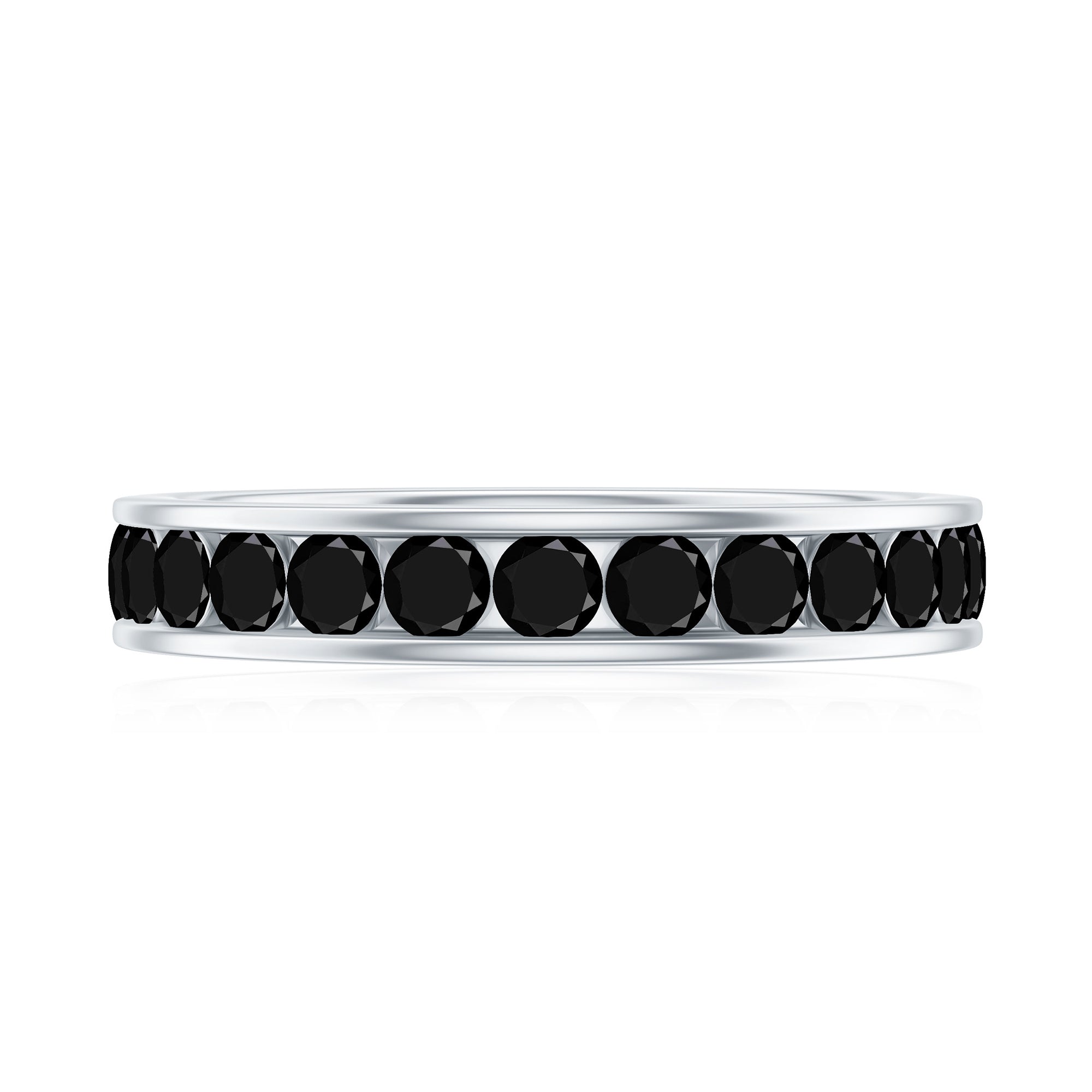 This Black Diamond Band reflects a bold elegance creating a captivating lusture. It features Round Shape Black Diamond in a Channel Setting making a continuous flow of stones. This ring signifies the enduring power of love making it perfect for the special day. This Wedding Band Ring depicts the strong bond that serves as a reminder of love. This Black Diamond Ring can be worn solely or can be stacked with an engagement ring to achieve a signature look. This ring beholds the classic shine of AAA Quality Natural Black Diamond. This April Birthstone Ring will be delivered to you in a signature jewelry box.