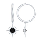 Natural Black Onyx Sunburst Hoop Drop Earrings