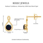 A symbol of endless love and effortless elegance, these Infinity Earrings are designed to make every moment feel a little more special. These Love Knot Earrings feature a captivating 5 mm Round Shape Black Opal set in Prong Setting within a graceful infinity loop, creating a meaningful design that represents forever, connection and a bond that never fades. The Black Opal shimmers with deep hues that shift beautifully with the light, adding depth and intrigue to any look. Secured with comfortable Screw Back Closure, these AAA Quality Black Opal Earrings offer both style and peace of mind, making them perfect for daily wear or special occasions. Their versatile design pairs beautifully with everything from chic dresses and elegant evening outfits to casual weekend looks. Ready to gift and presented in a lovely jewelry box, these October Birthstone Earrings make a heartfelt surprise for birthdays, anniversaries, holidays or simply to show someone how much they mean to you. Thoughtful, romantic and beautifully crafted, these Black Opal Stud Earrings are a timeless piece she will cherish every time she puts them on.