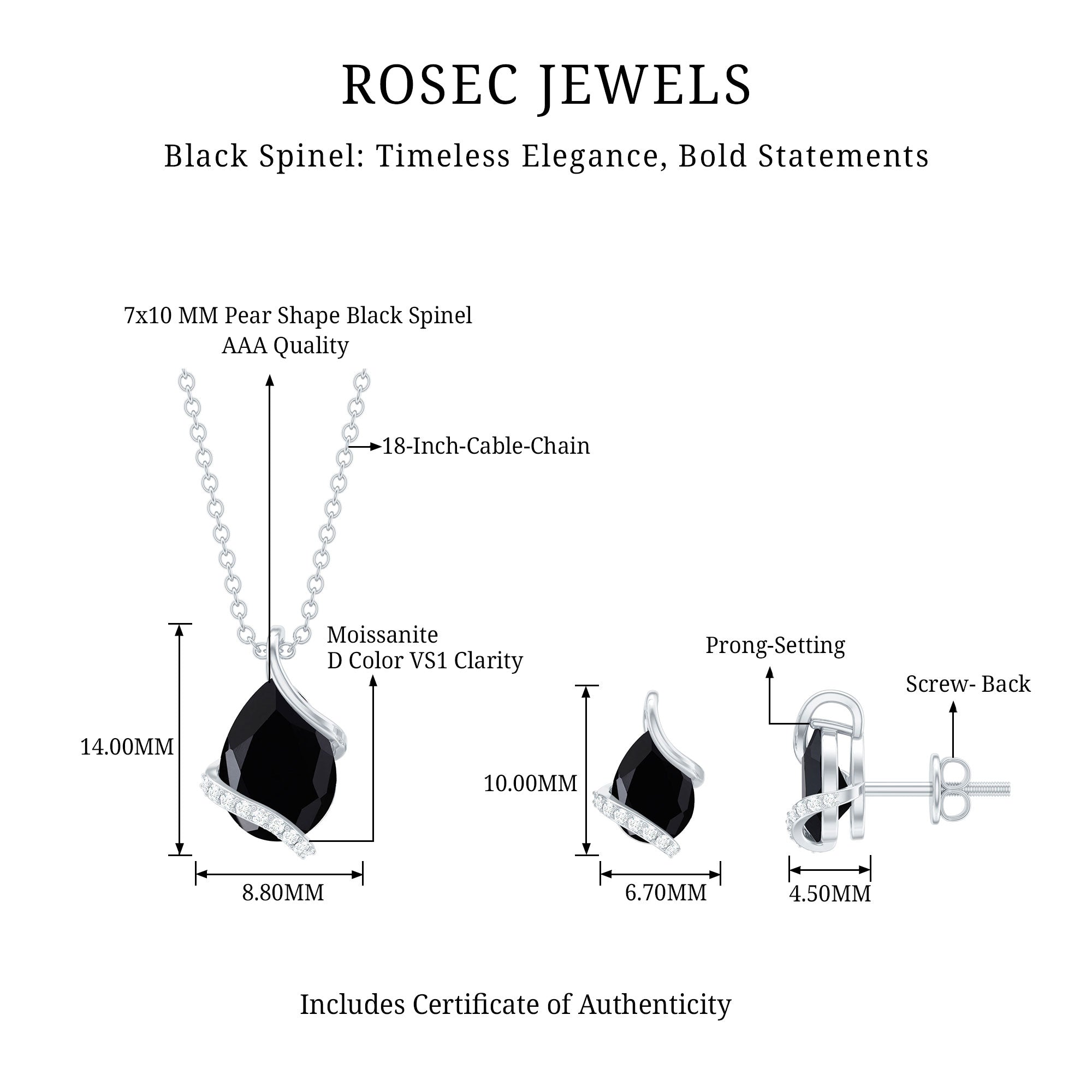 Natural Black Spinel and Moissanite Teardrop Jewelry Set in Silver
