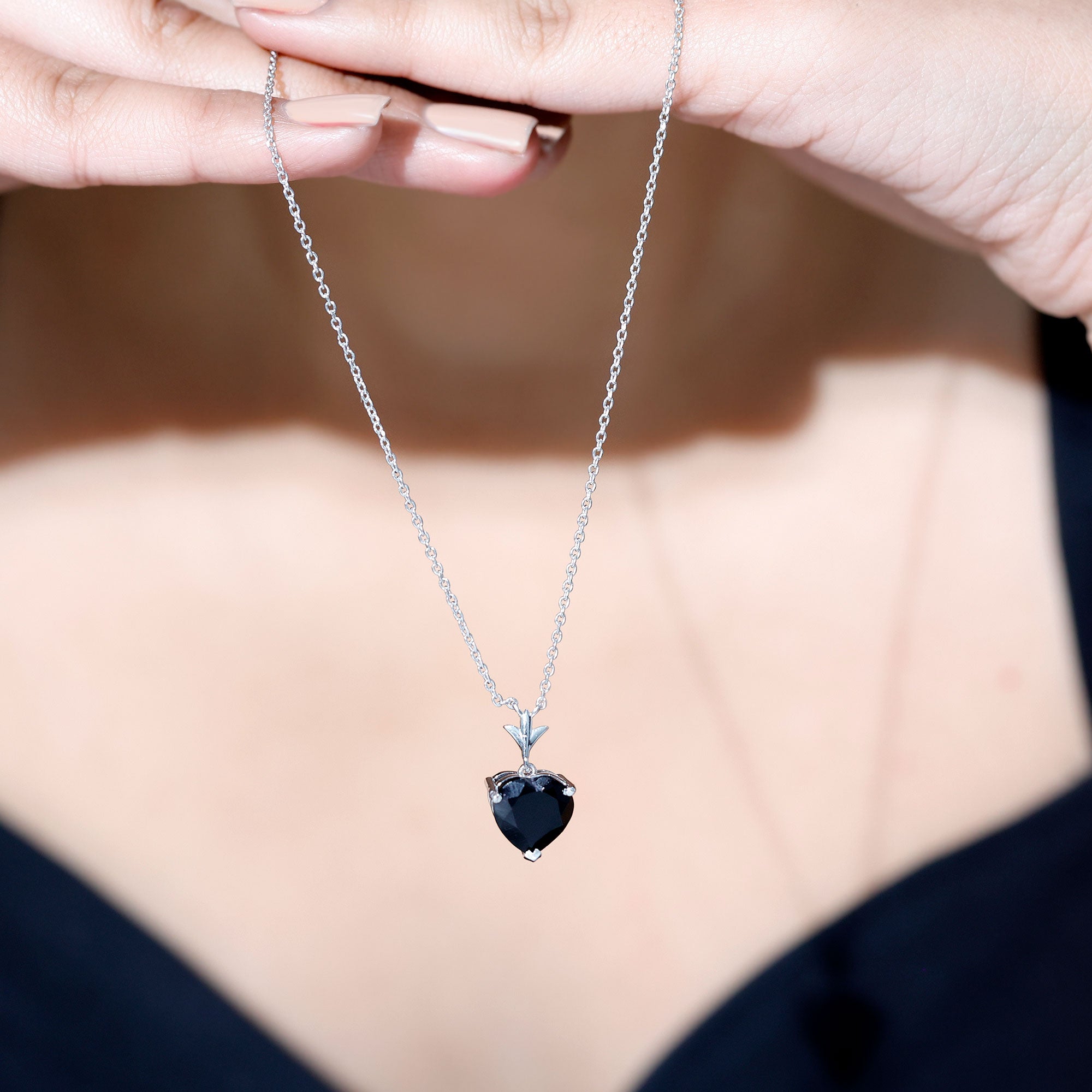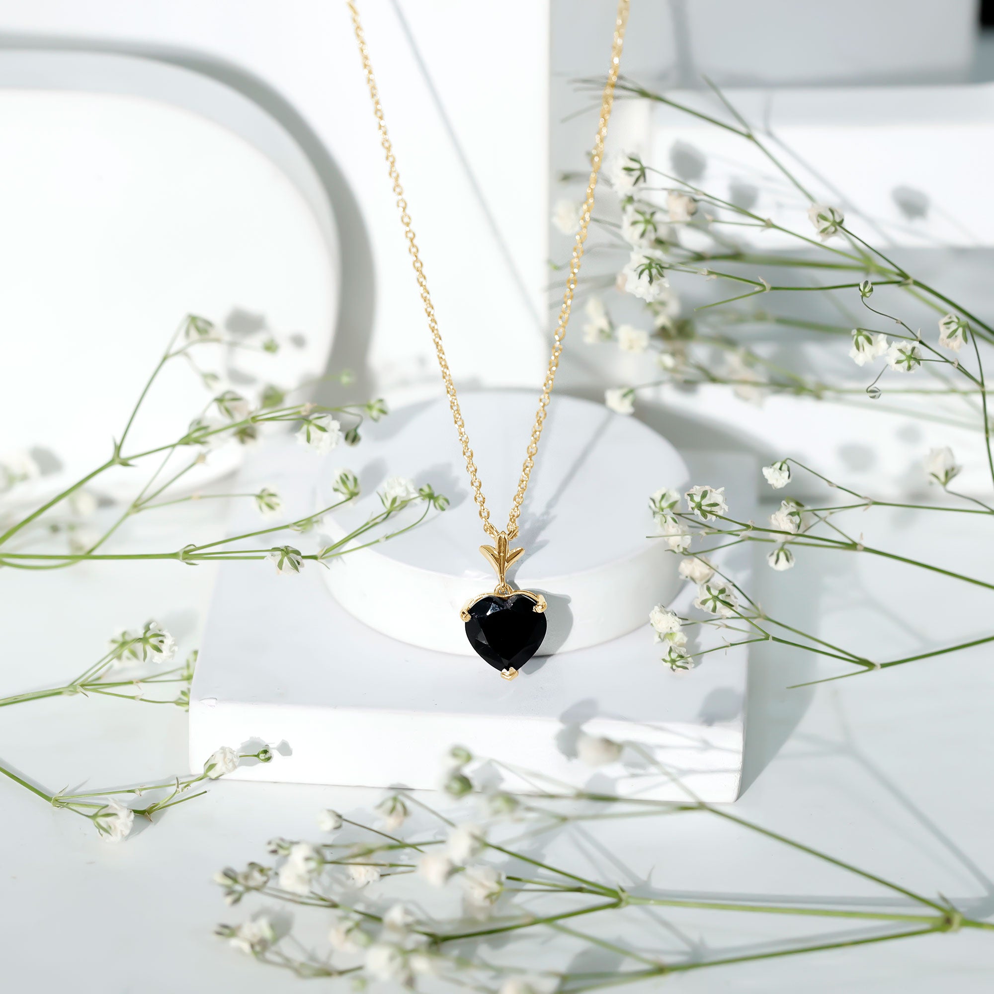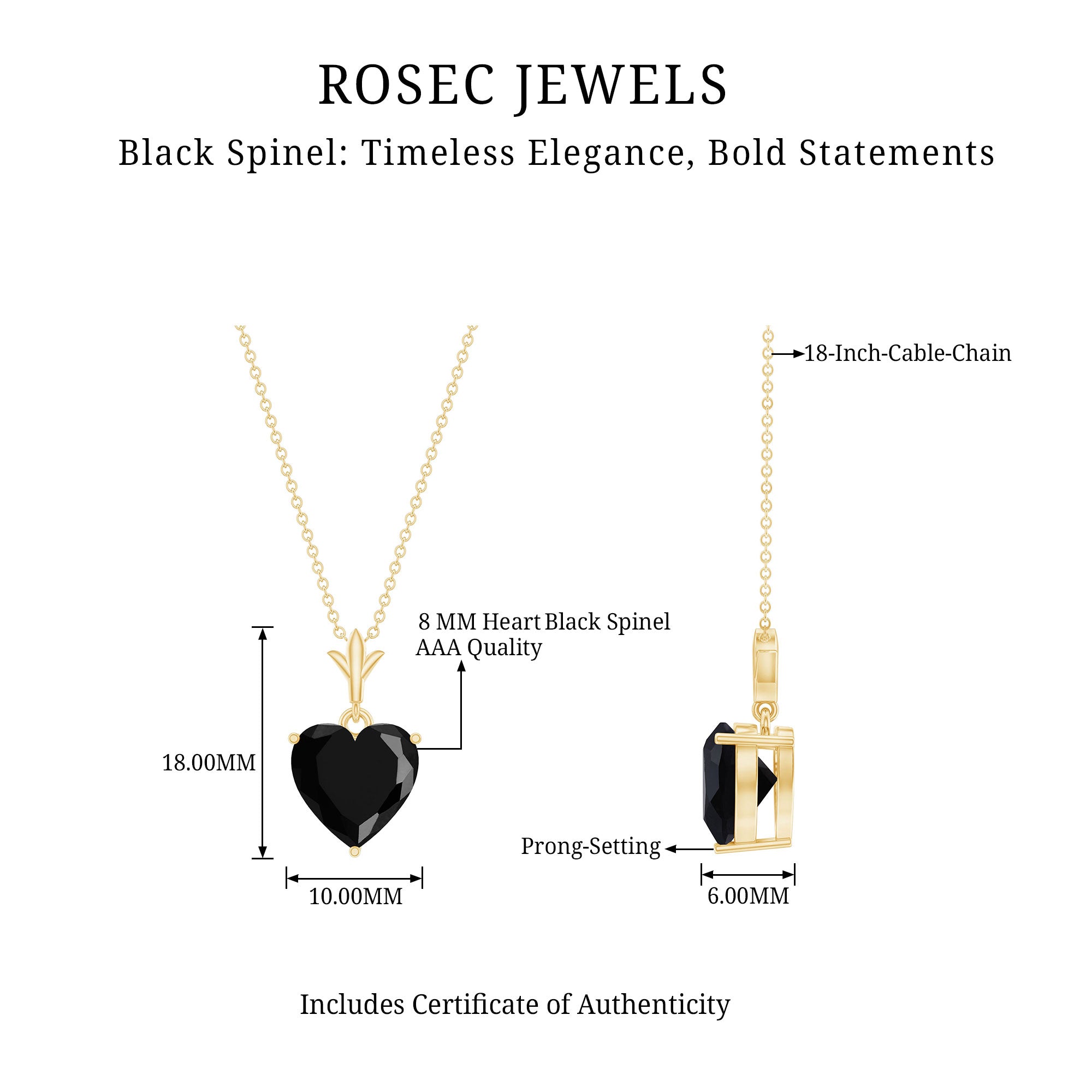 Indulge in the black allure of this Black Spinel Necklace, a statement piece for your jewelry wardrobe. The pendant is adorned with an 8 MM Heart Shaped Black Spinel gracefully set in 3 prong setting. The luxurious intense hue of this Solitaire Necklace makes this an ideal choice to wear at evening parties, work events, and family get-togethers. Crafted to attention, this Heart Pendant Necklace is designed to highlight your neckline showcasing a perfect blend of sophistication.