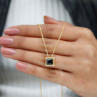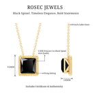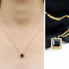 Natural Black Spinel Princess Cut Necklace in Gold Plated Silver