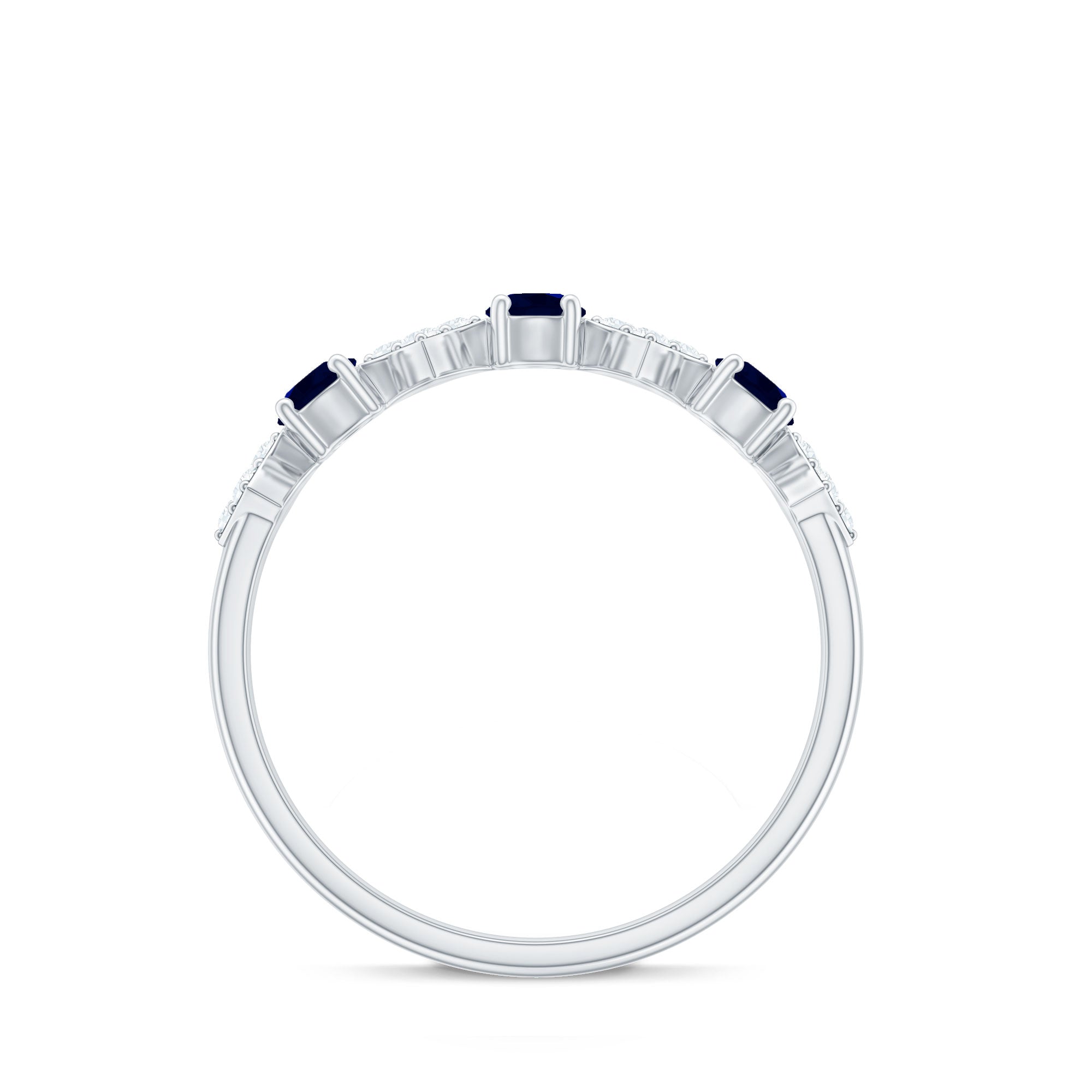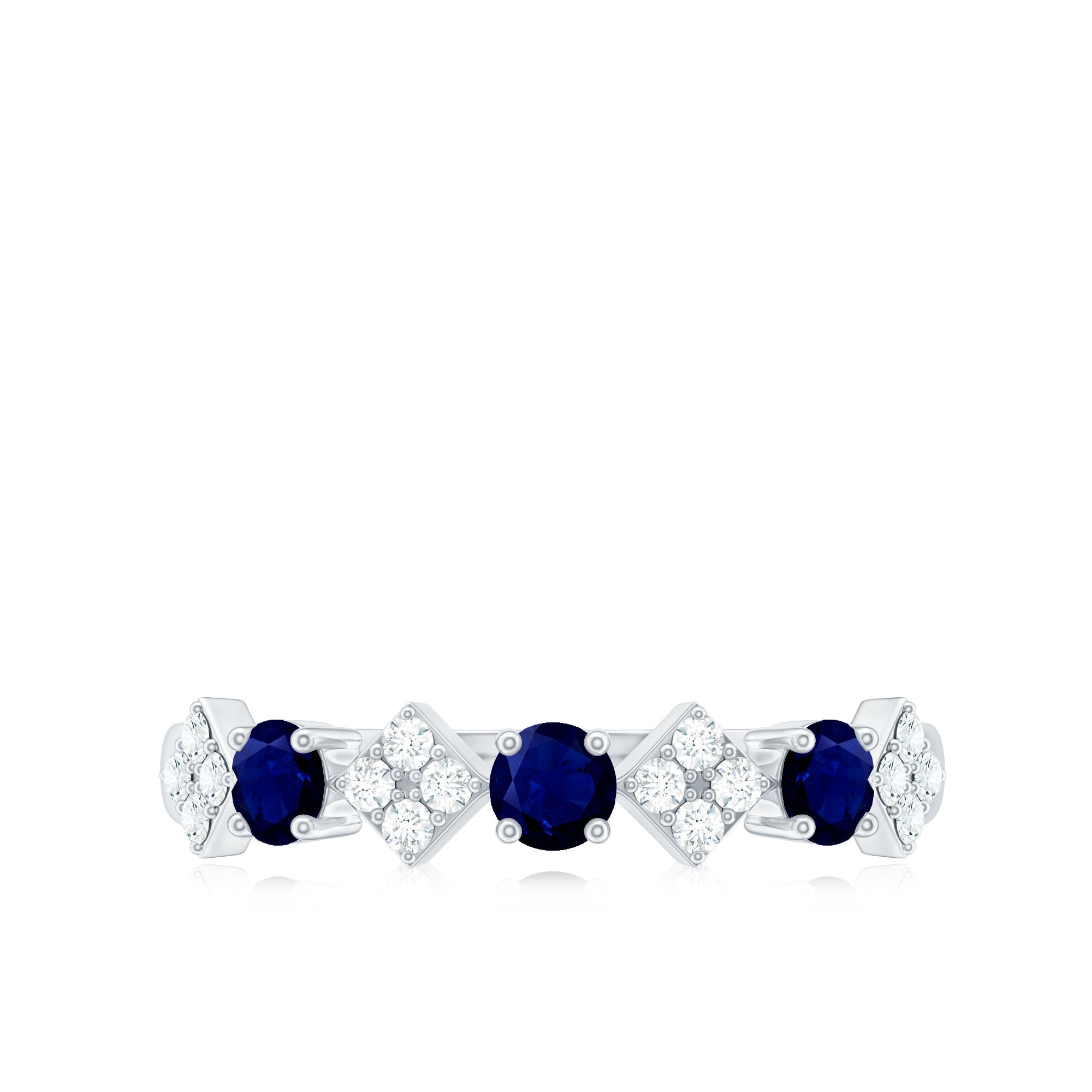Natural Blue Sapphire and Diamond Half Eternity Band Ring