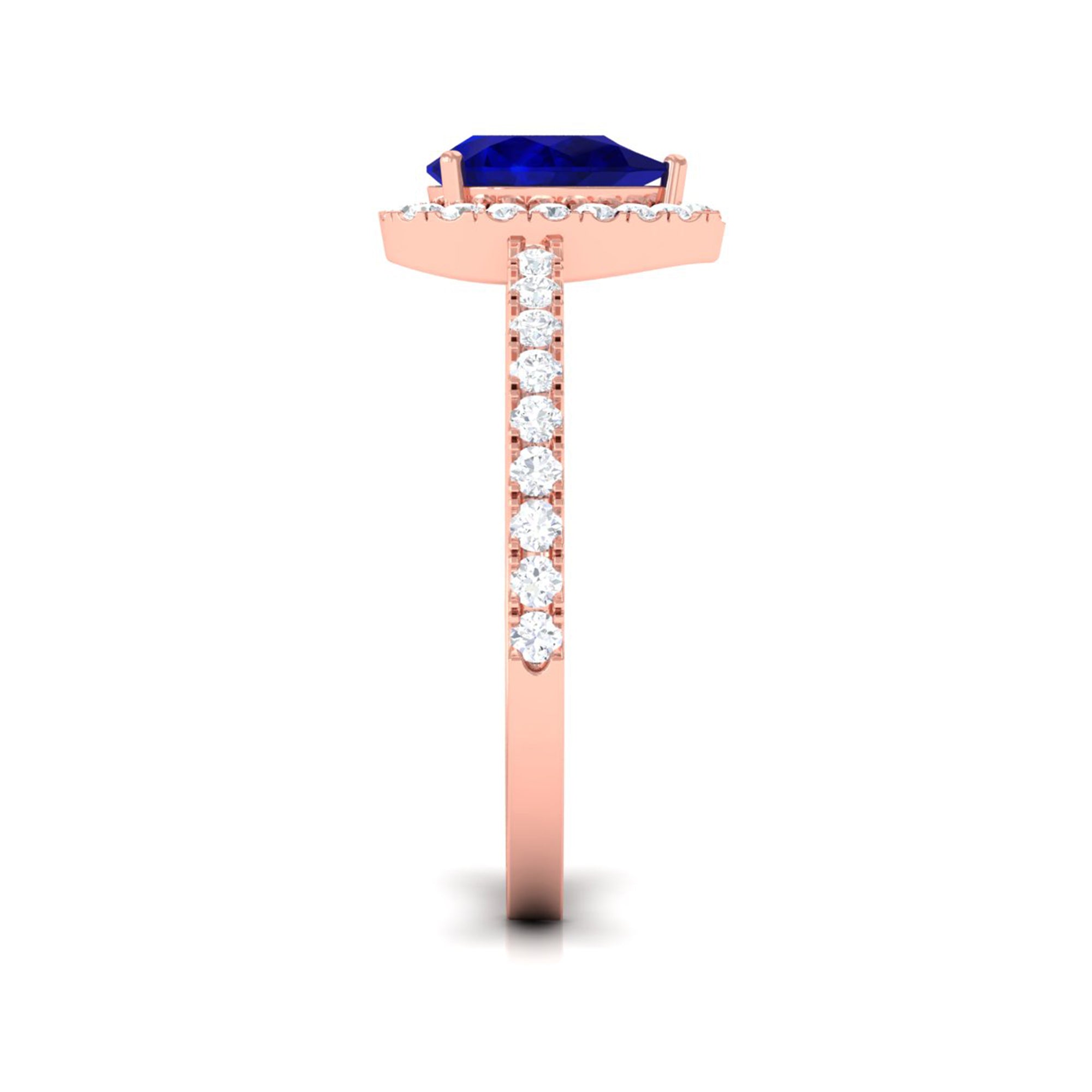 Natural Blue Sapphire and Diamond Teardrop Halo Engagement Ring