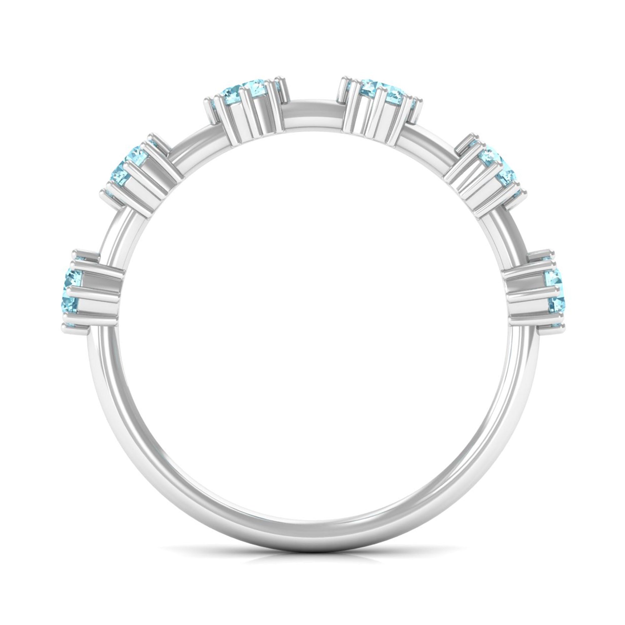 Show your love and commitment with this beautiful Aquamarine Stackable Ring, a perfect piece to symbolize an everlasting bond. This Minimalist Ring features sparkling 4 MM round cut aquamarine stones set securely in 8-prong setting, evenly spaced across the half band. The slim and simple band allows the stones to shine brightly, making it an ideal choice for stacking with other rings or wearing alone for a delicate look. Aquamarine, the birthstone for March, is known for its calming blue hue and is often associated with loyalty, clarity, and serenity, making this Half Eternity Ring not only a beautiful piece of jewelry but also a meaningful symbol of love and harmony. Perfect as a wedding, anniversary, or promise ring, this Aquamarine Eternity Ring is a thoughtful gift for your partner or a meaningful addition to your own jewelry collection. Its lightweight design makes it comfortable for daily wear, while the blue stones catch the light beautifully with every movement.