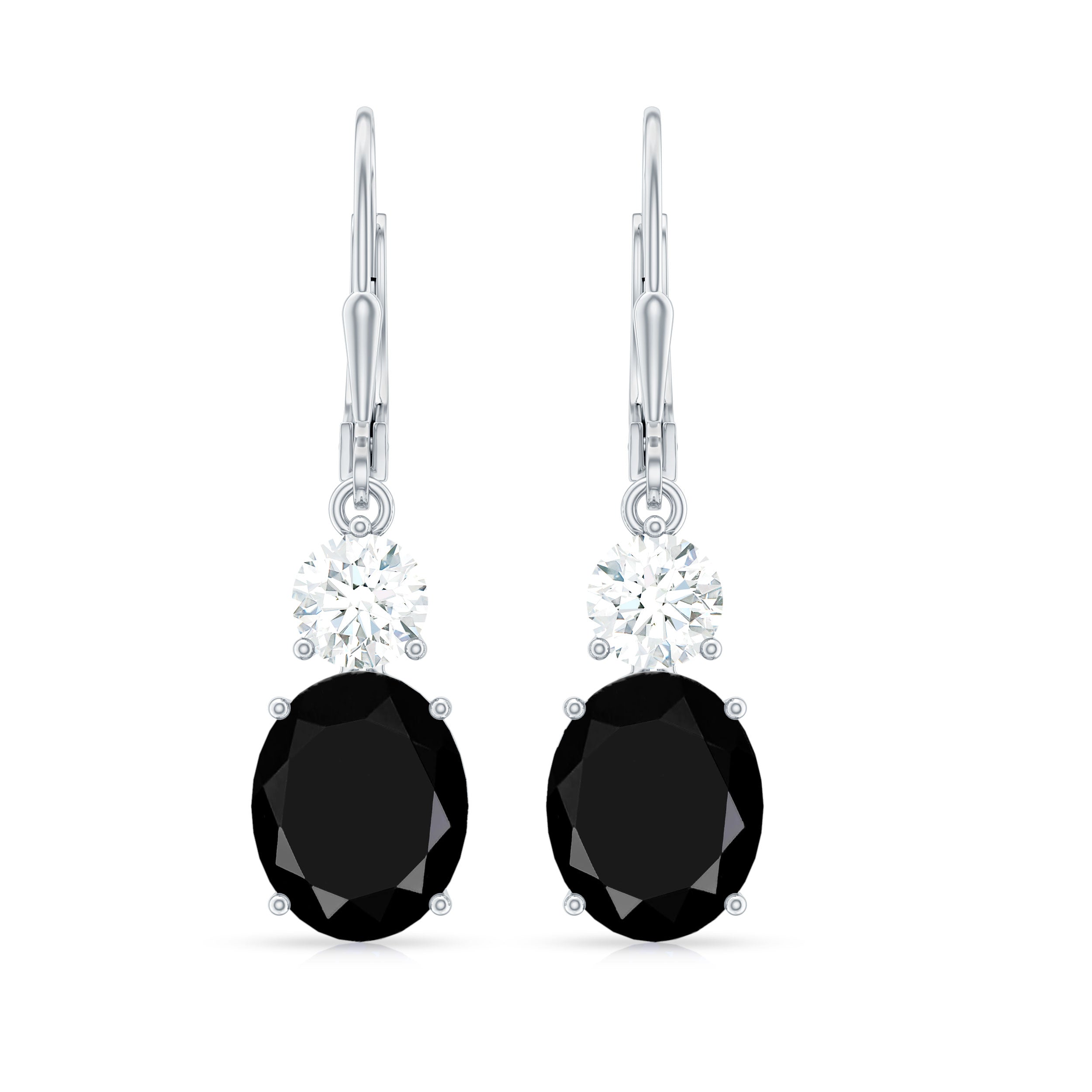 Upgrade your jewelry collection with these stunning Black Onyx Drop Earrings, designed to turn heads and add an air of sophisticated glamour to any look. The big 8X10 mm Black Onyx stones are perfectly shaped into an elegant Oval, hanging delicately with a sparkling round 5 mm Moissanite, known for its brilliant sparkle and fire. The combination of the bold AAA Quality Black Onyx and the dazzling D-VS1 Moissanite creates a striking contrast, making these Black and White Earrings the ultimate statement piece for both day and night. The secure Lever Back Closure ensures they stay comfortably in place, so you can wear them with confidence, whether you are dressing up for a night out or adding a touch of luxury to your everyday style. Arriving in a beautiful jewelry box, these Hoop Drop Earrings are ready to gift to someone special or to treat yourself to something extraordinary. Their timeless design pairs effortlessly with everything from chic cocktail dresses to casual outfits, making them a versatile addition to your collection. Elegant yet edgy, these Onyx Black Earrings exude confidence and class, giving you that perfect pop of sparkle that catches the light with every move.
