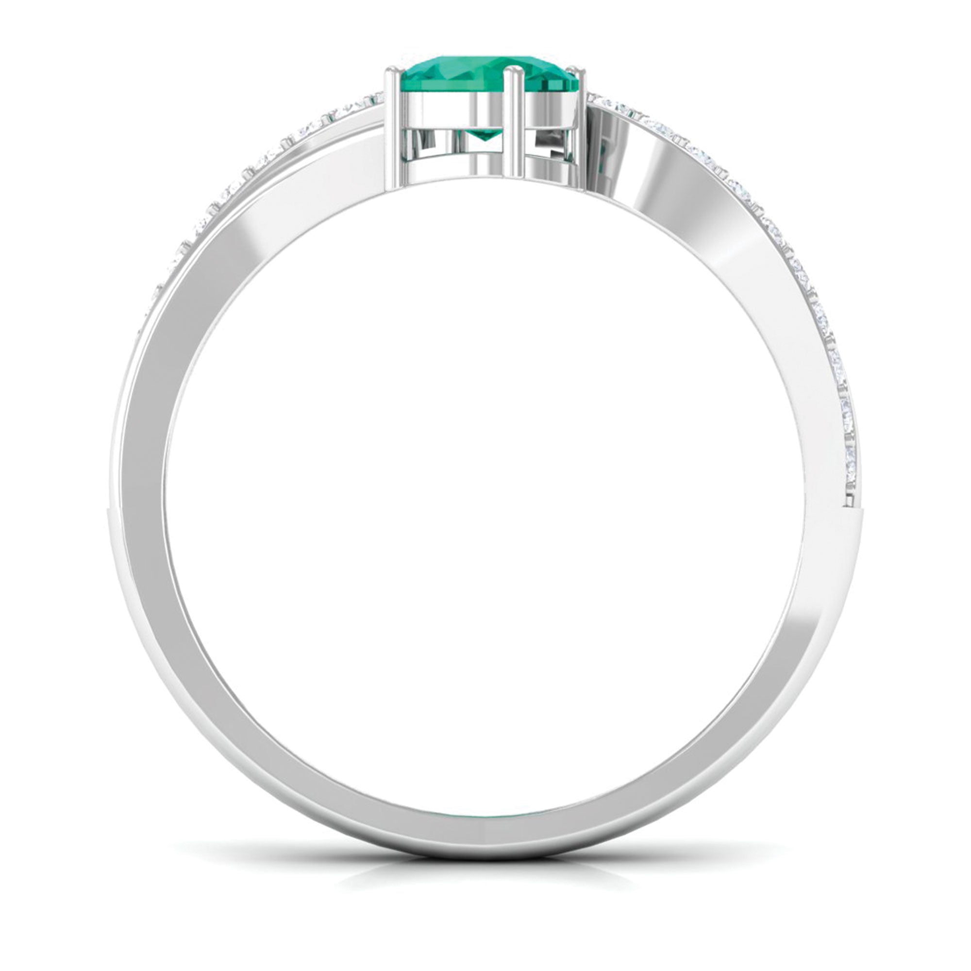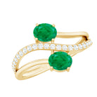 Celebrate the beauty of two hearts coming together with this stunning 2 Stone Engagement Ring, a symbol of love and connection. This elegant toi et moi design captures the meaning of - you and me, representing two souls united in harmony. This Designer Engagement Ring features two radiant 4X6 MM oval shaped lab created emeralds, set in prong setting. The two emeralds sit gracefully opposite each other in a smooth bypass design, creating a flowing shape that beautifully wraps around the finger. At the center of the band, a delicate row of shimmering round cut diamonds adds just the right touch of sparkle, enhancing the vivid green of the emeralds. Together, the stones create a look that feels both timeless and modern. Crafted with care and attention to detail, this Emerald and Diamond Ring captures the essence of elegance and emotion. Whether given for an anniversary, birthday, or simply to celebrate a special bond, this Emerald Two Stone Ring is a piece that will be cherished forever. With its graceful design and heartfelt meaning, this Bypass Engagement Ring shines as a perfect reminder that two hearts are always stronger together.