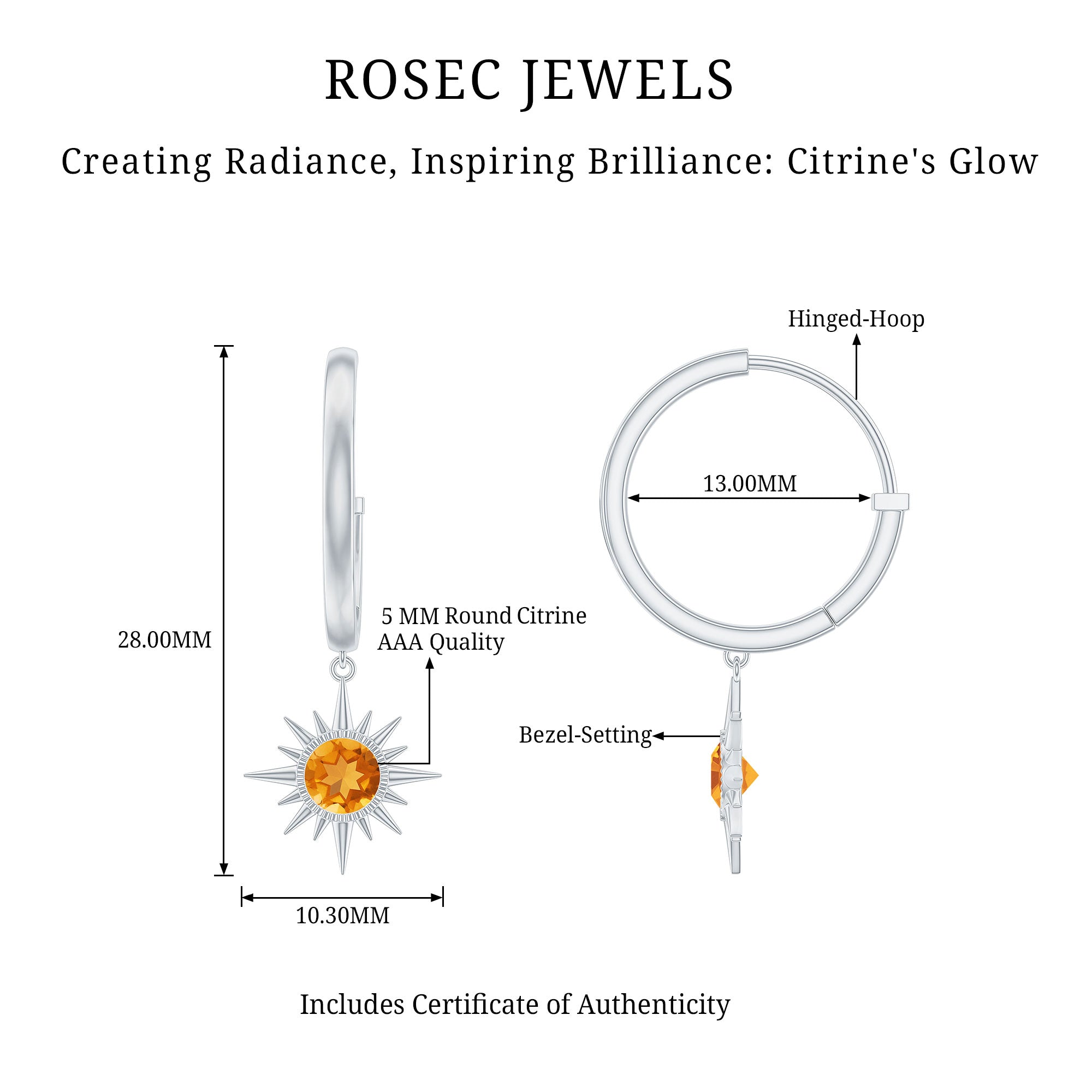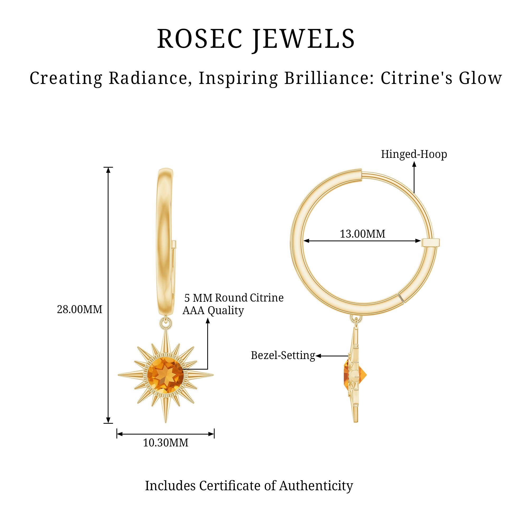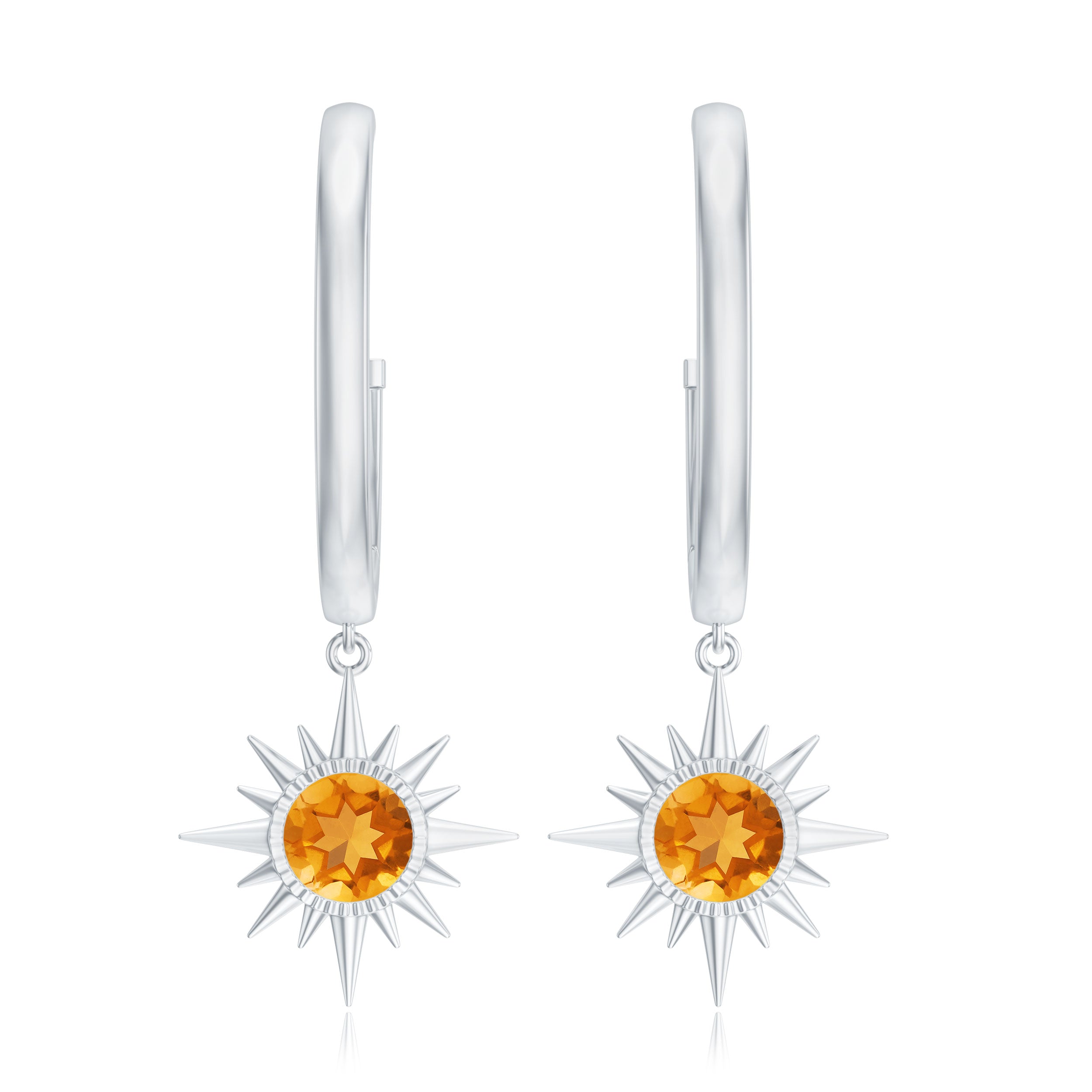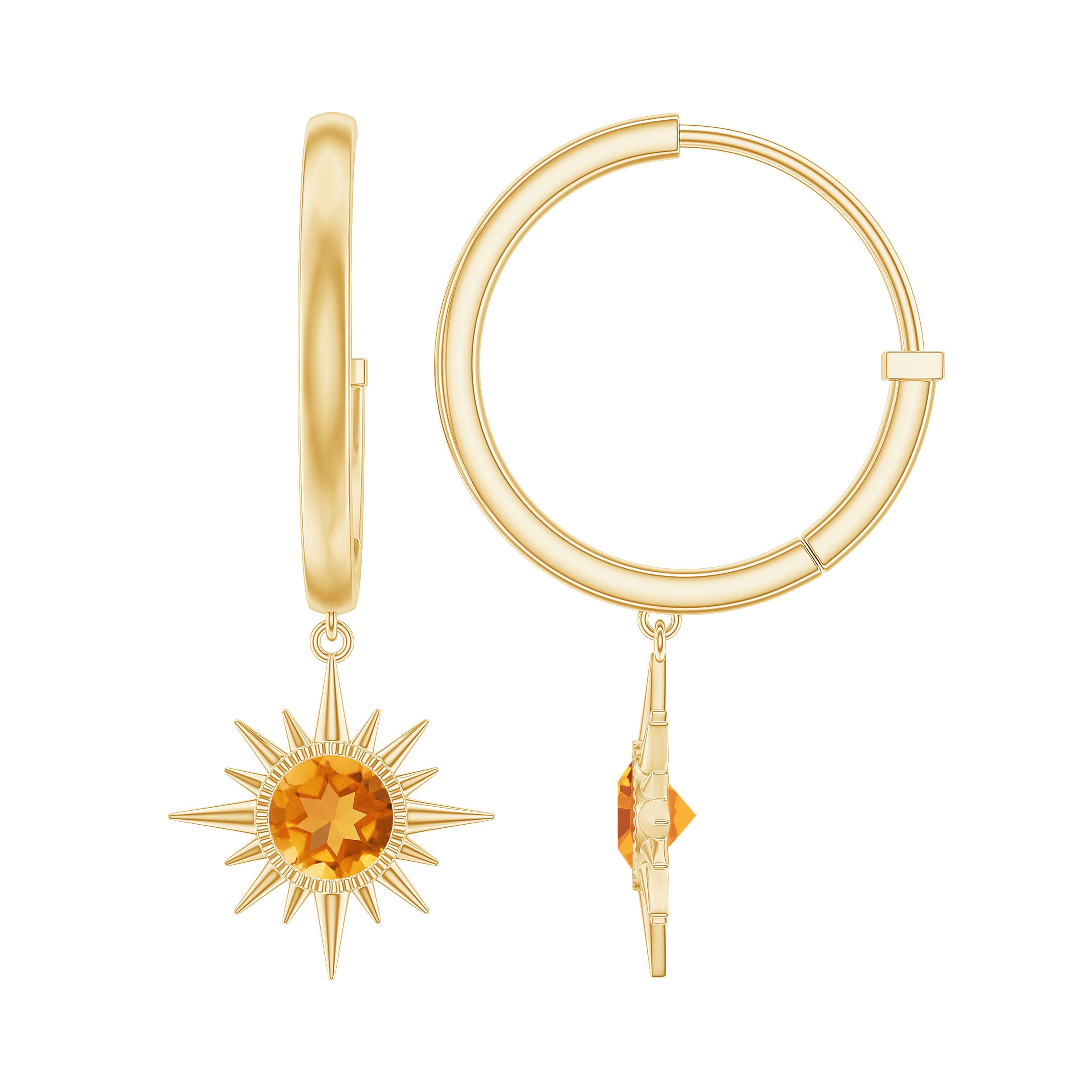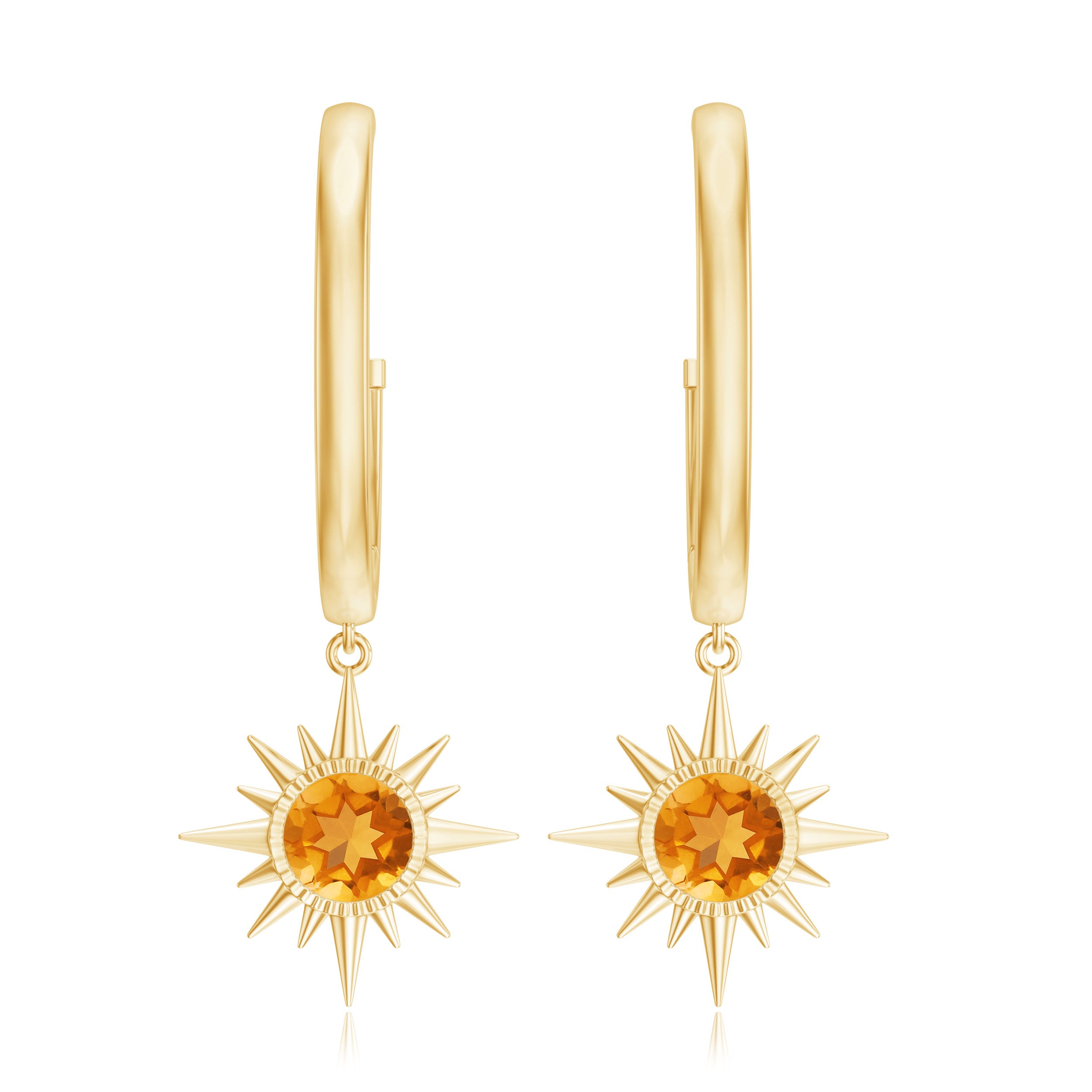 Sway into sunshine with these Sunburst Earrings, an instant statement piece that captures the essence of radiant beauty. The sunburst design, with its burst of golden 5 mm Citrine stones, brings a warm glow that is perfect for any occasion. These Citrine Drop Earrings feature a Hinged Hoop design for a secure, comfortable fit, so you can wear them with confidence all day long. Whether you are adding a little sparkle to a casual look or elevating your evening ensemble, these Hoop Drop Earrings effortlessly blend sophistication and playfulness. The vivid AAA Quality Citrine catches the light in the most enchanting way, making these Hinged Hoop Earrings perfect for any season, but especially stunning during the warmer months. Packaged in a signature jewelry box, these November Birthstone Earrings are ready to gift, whether it is for a birthday, anniversary or any special moment. These Citrine Earrings are a celebration of sunshine and joy, designed to brighten up your day and your outfit.