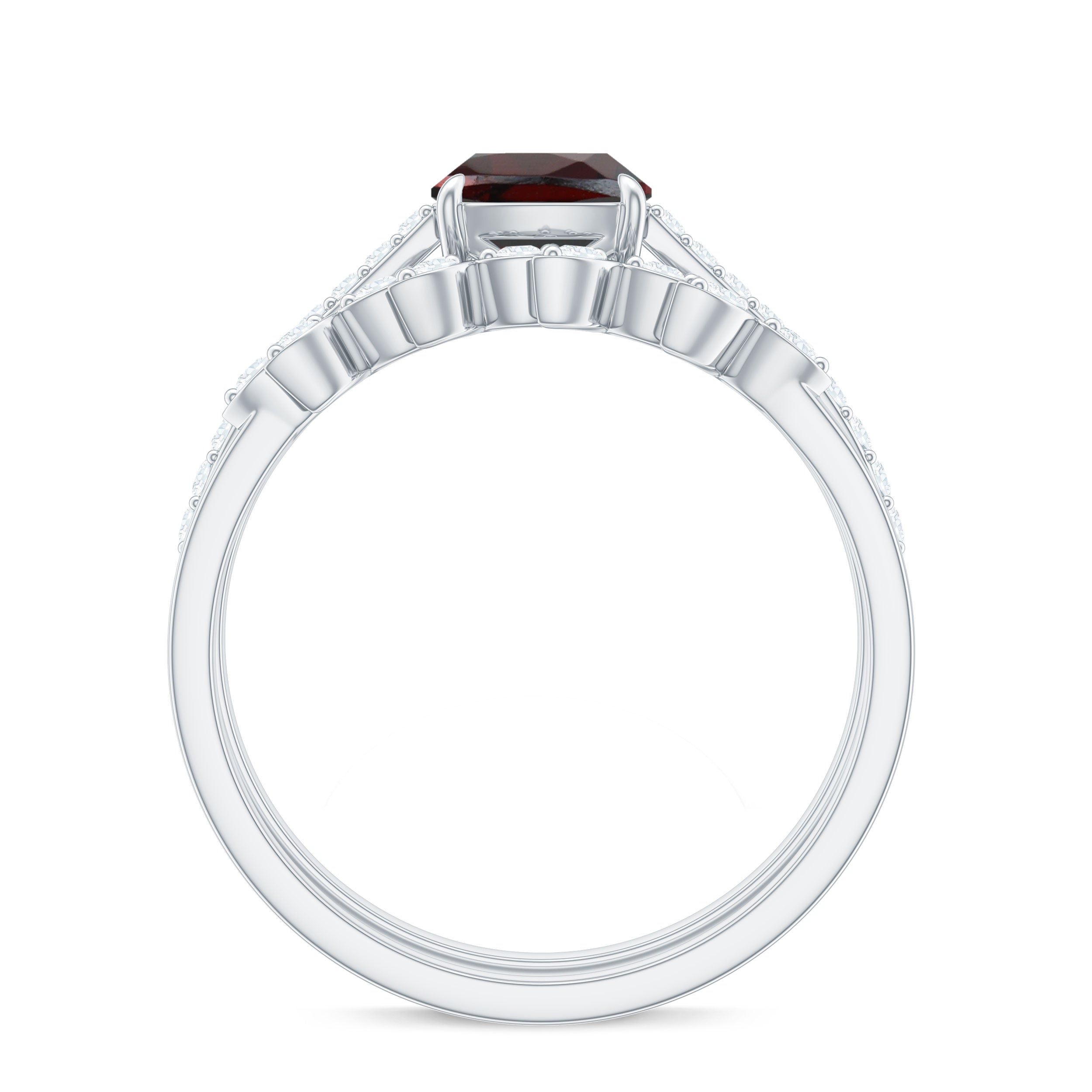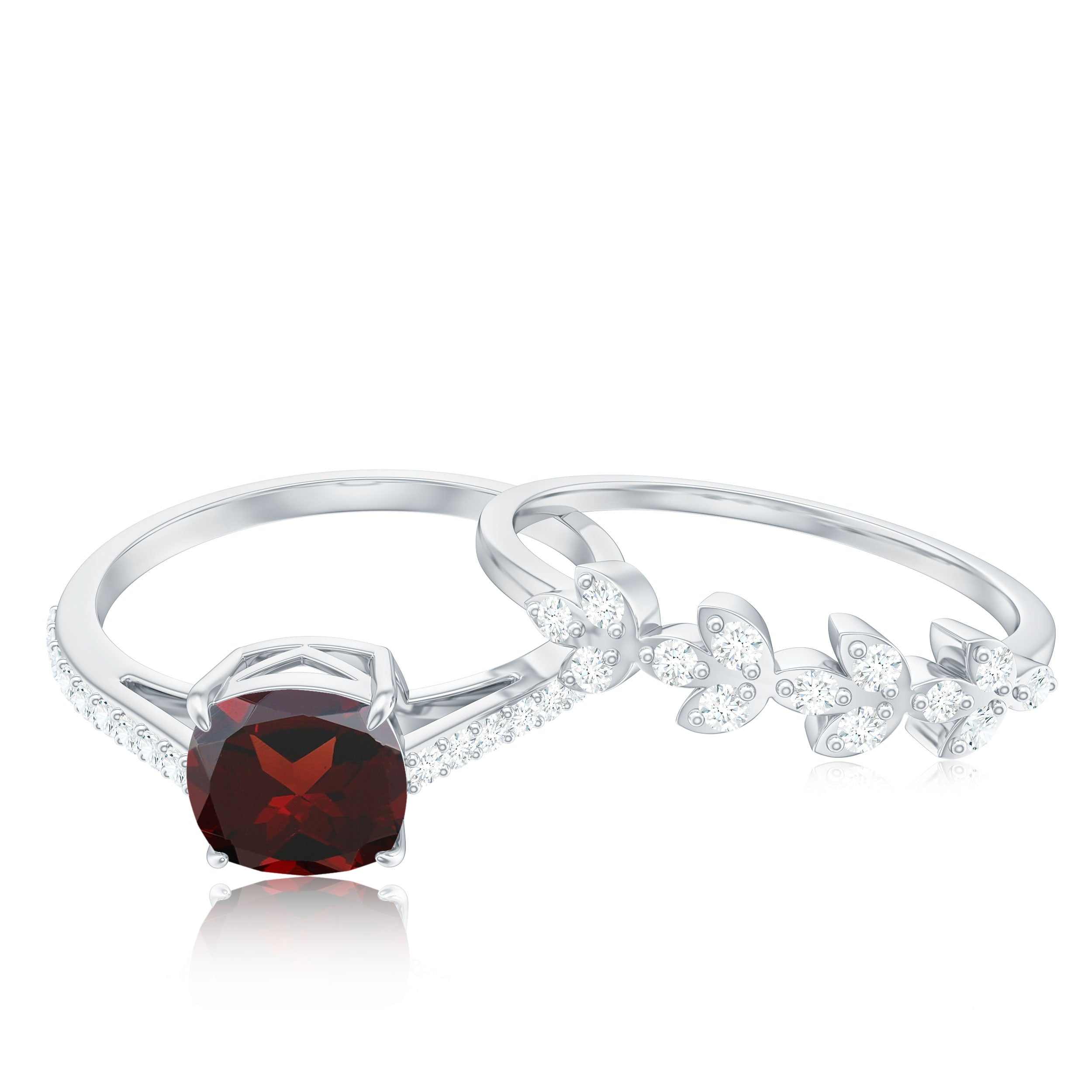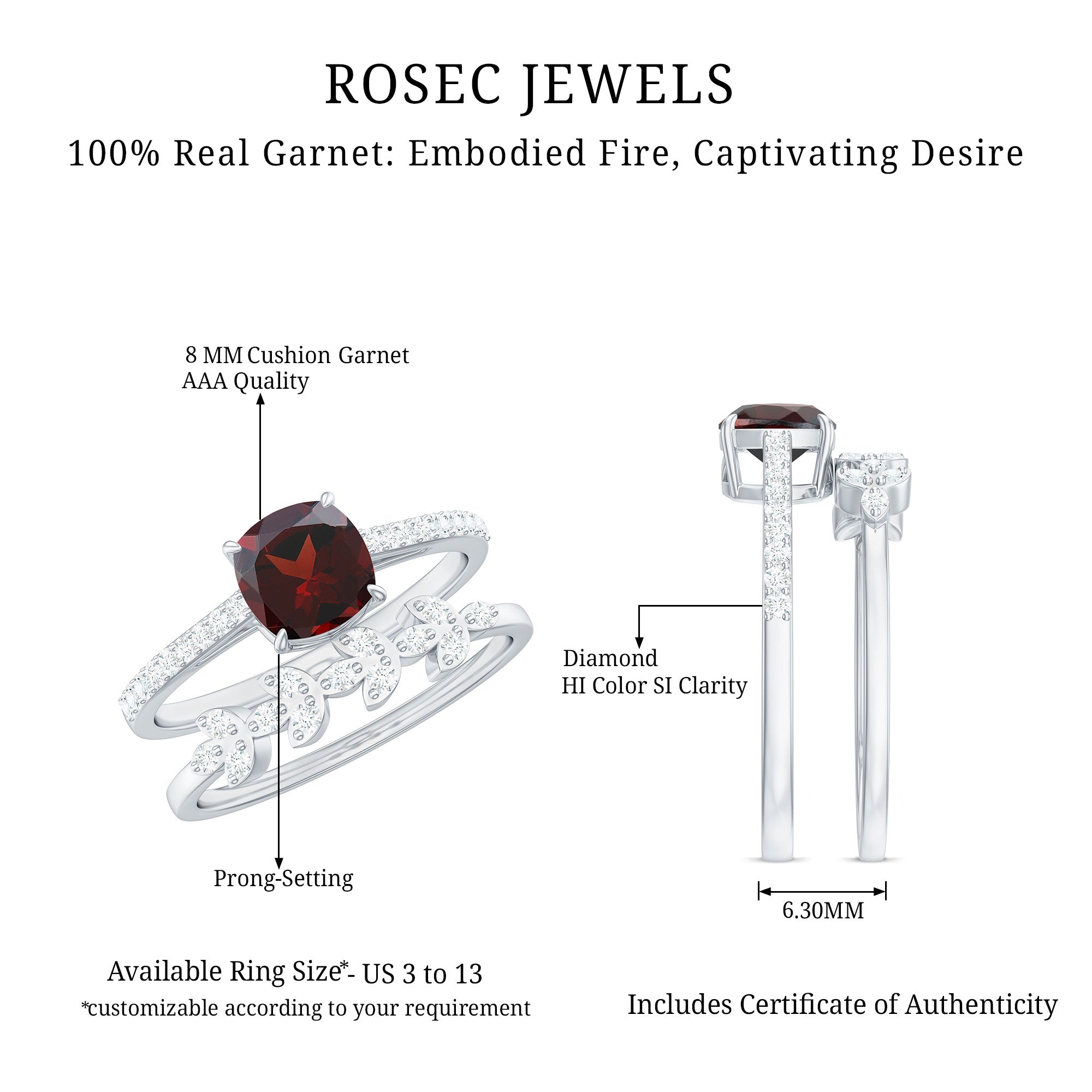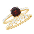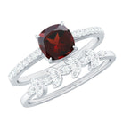 Natural Cushion Cut Garnet Diamond Wedding Bridal Ring Set of 2