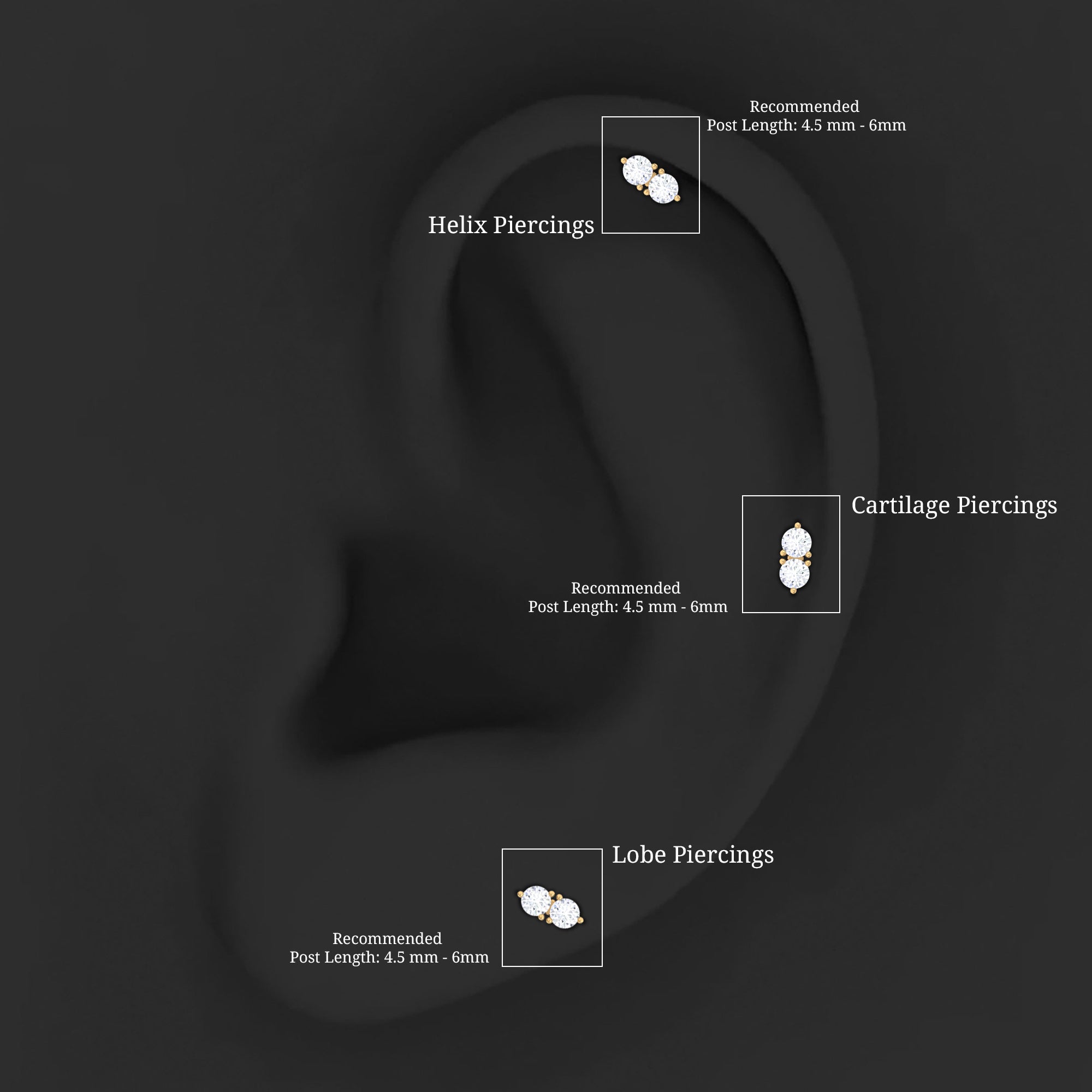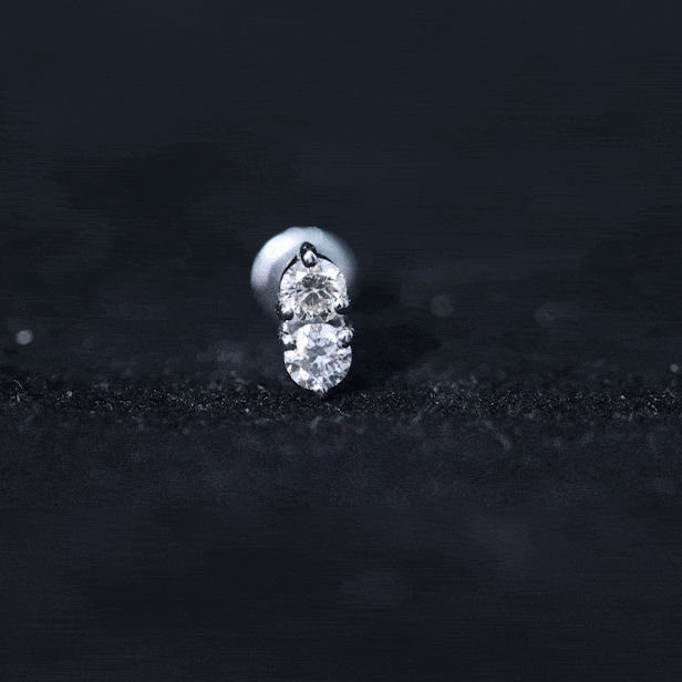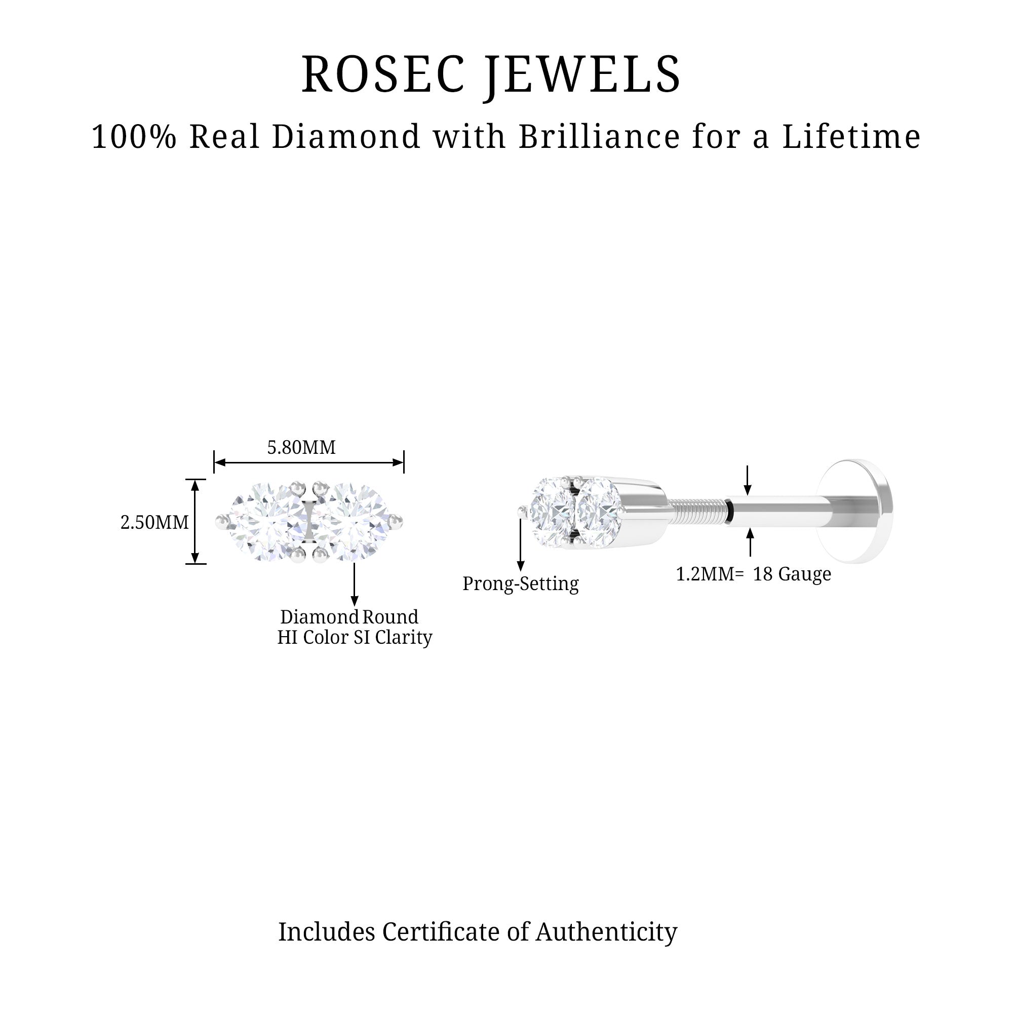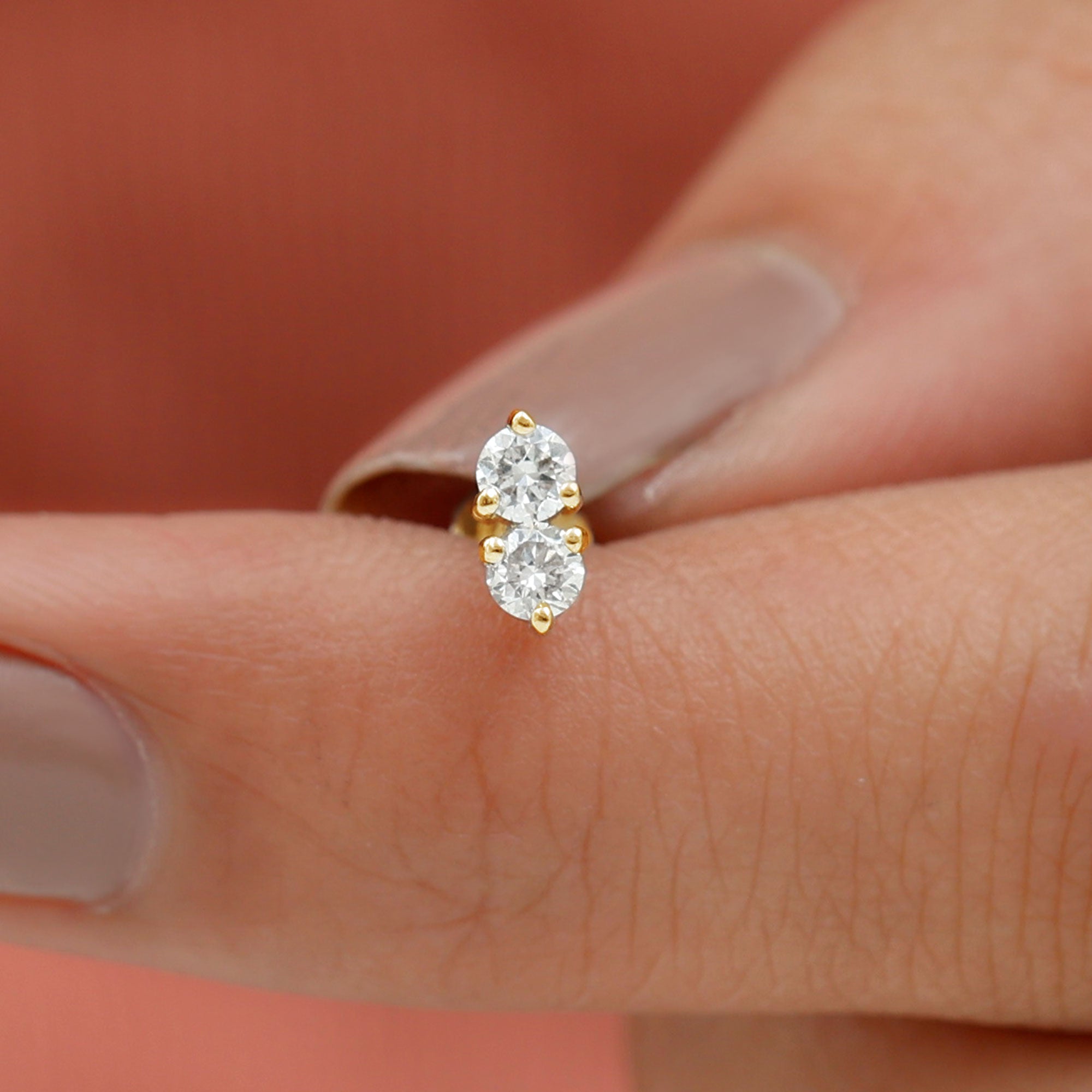 Natural Diamond 2 Stone Earring for Tragus Piercing