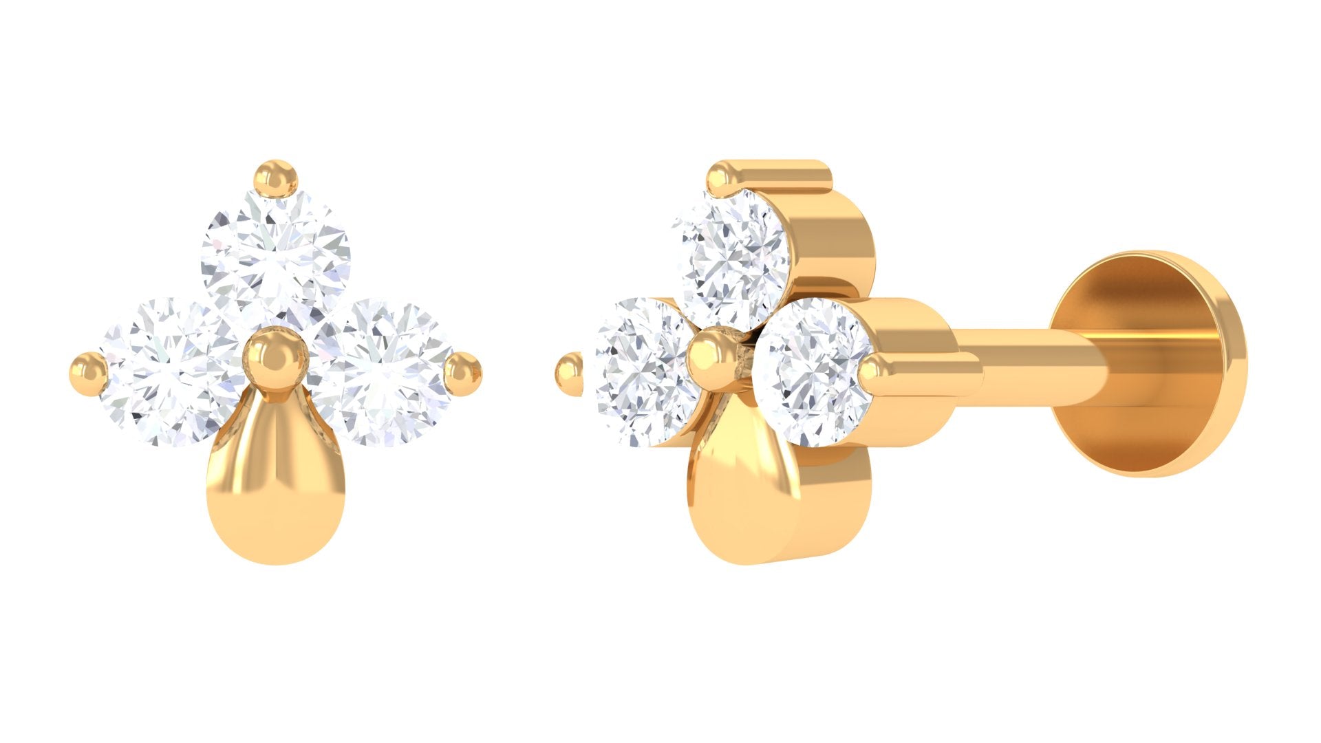 Natural Diamond 3 Stone Flower Nose Pin in Gold