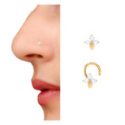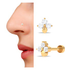 Express your unique personality with this stunning Diamond Flower Nose Pin, crafted from high-quality Gold and adorned with a Round Cut Diamond in a secure Prong Setting. The flawless design and impeccable craftsmanship of this Nose Pin are perfect for those looking to elevate their look with an exquisite piece of Body Jewelry. The charming flower design adds a touch of elegance and sophistication to any outfit, making it a versatile accessory that can be worn on any occasion.