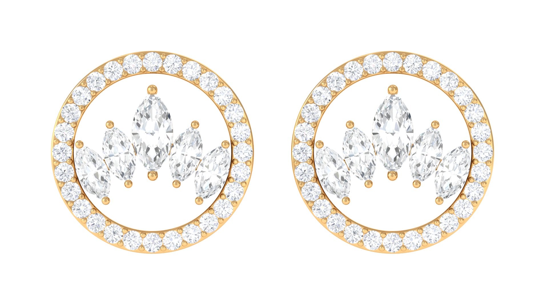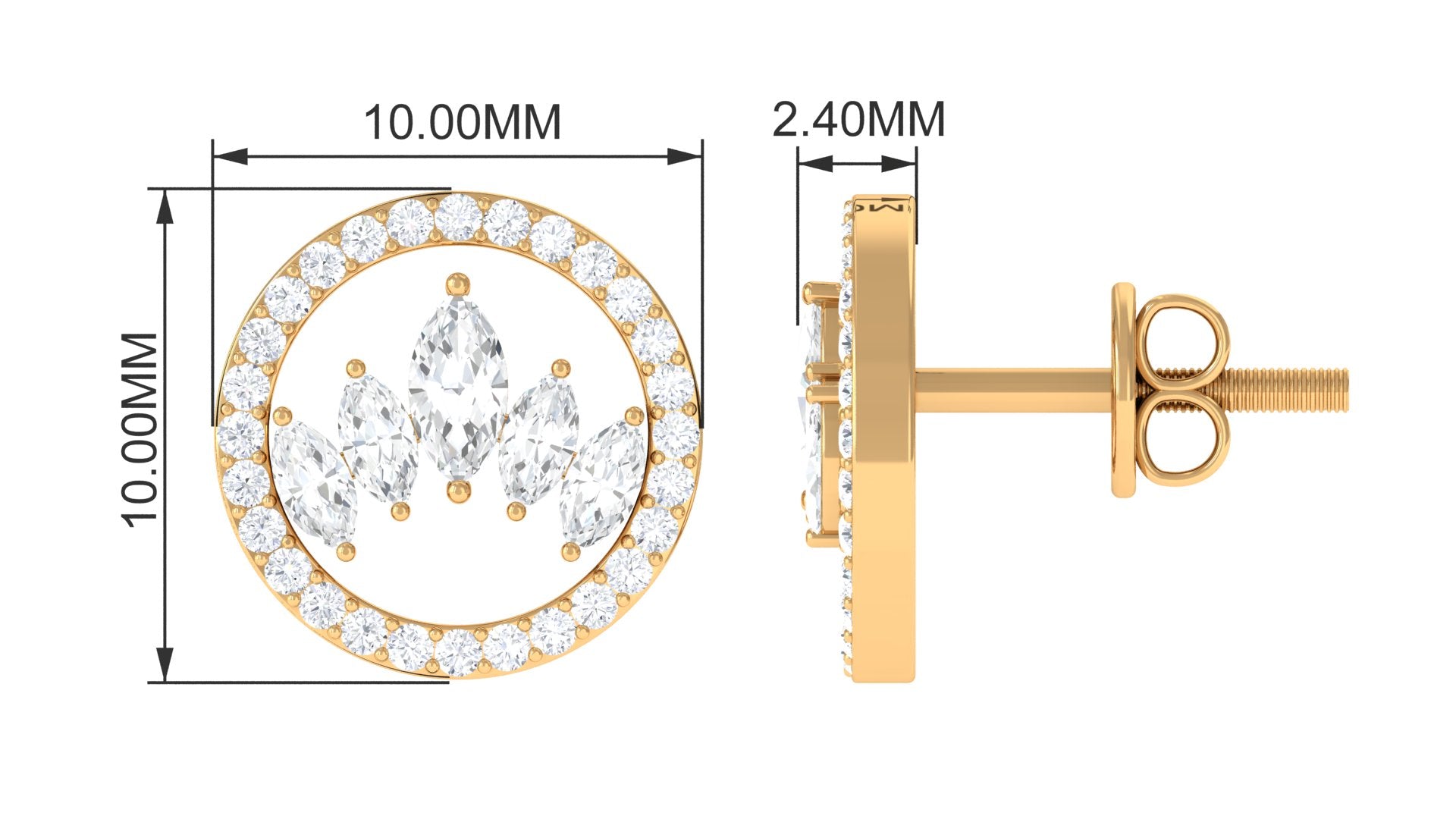 Compliment any outfit with a touch of modern elegance with these Circle Earrings, where contemporary design meets timeless sparkle. Each Earring features a delicate Open Circle lined with dainty Round Shape Diamond stones, with Marquise Shaped Diamond stones placed inside, creating a mesmerizing play of light and sophistication. The secure Screw Back Closure ensures a comfortable fit, making them perfect for everyday wear or for adding a refined sparkle to special occasions. Their versatile design pairs effortlessly with casual outfits, office wear or evening ensembles, making them a chic addition to any jewelry collection. Delivered in a stylish jewelry box, these Diamond Stud Earrings arrive ready to gift, ideal for birthdays, anniversaries or as a thoughtful surprise for someone special. These Diamond Ear Studs are a symbol of elegance, style and lasting beauty, offering both charm and sophistication in one stunning piece. Whether treating yourself or delighting a loved one, these Diamond Earrings turn every glance into admiration and every outfit into a statement.