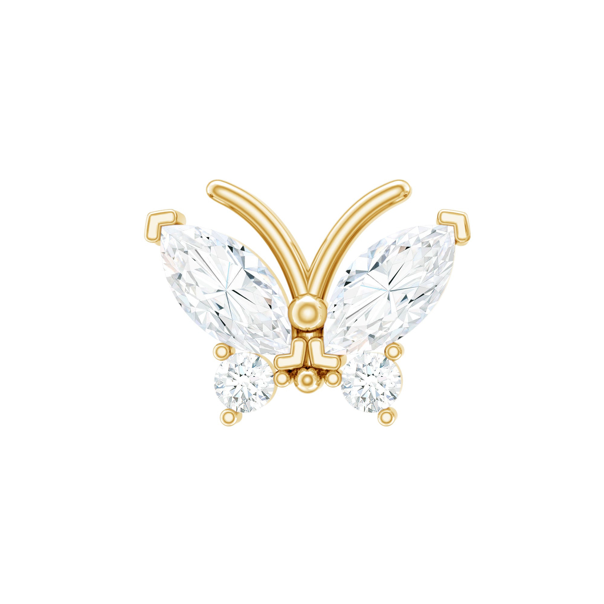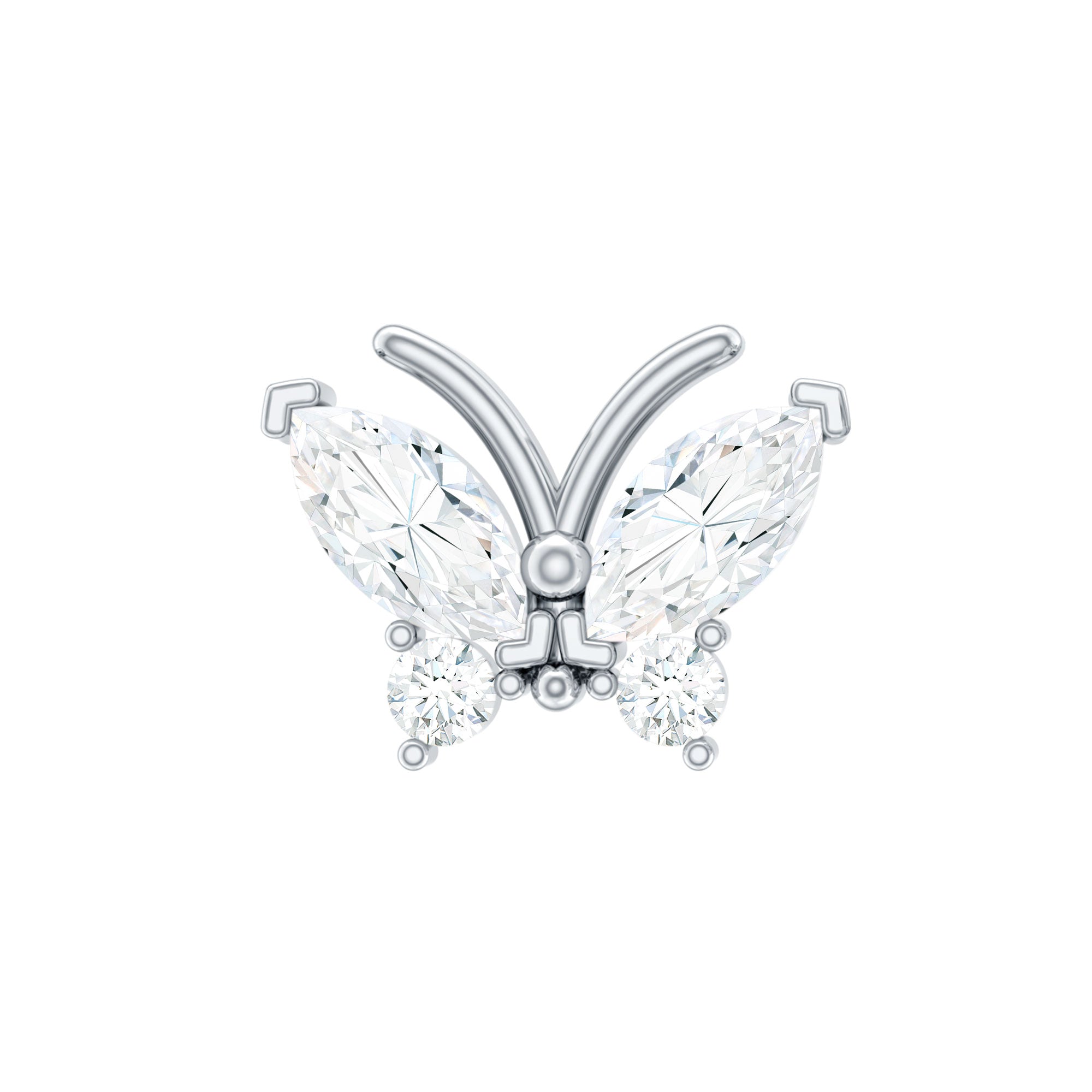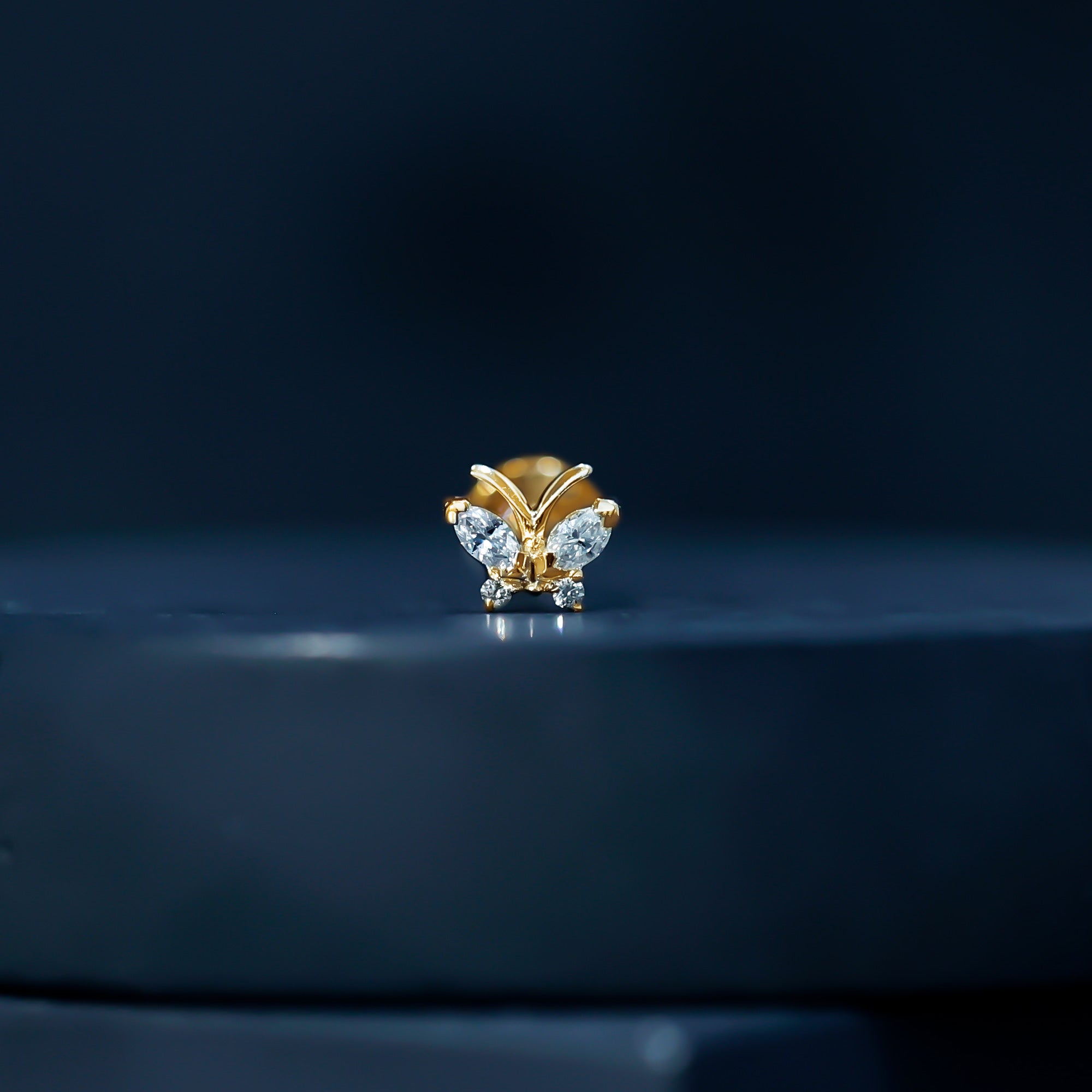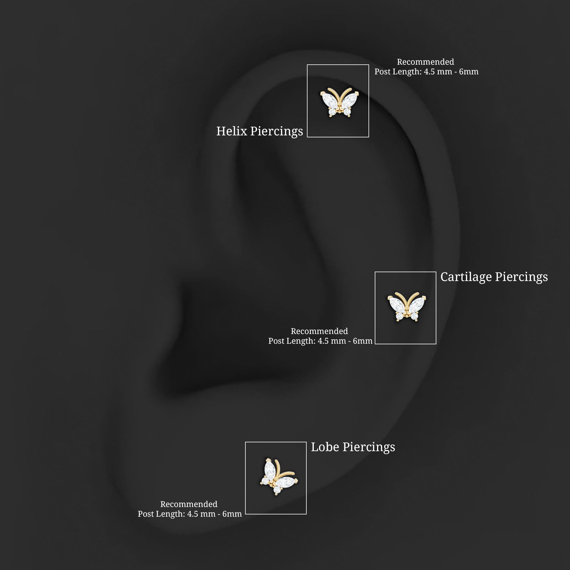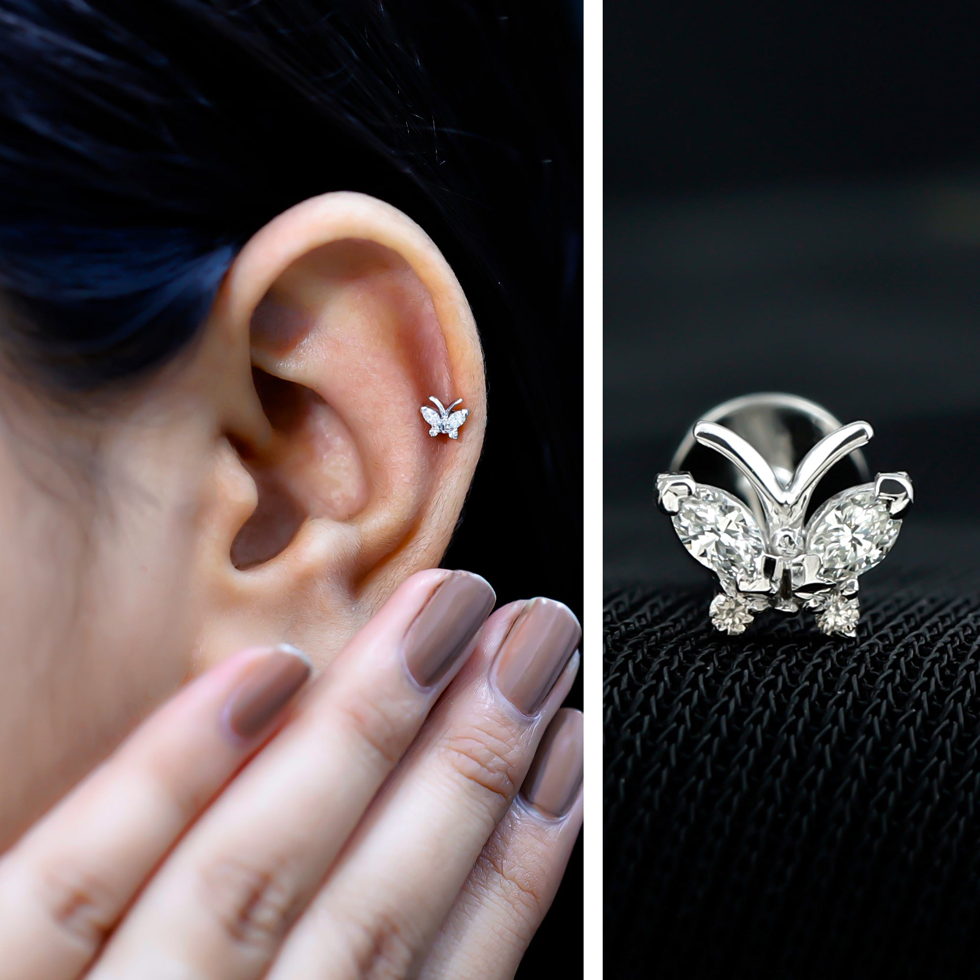 Flutter and sparkle with this cute Diamond Butterfly Earring that adds a playful touch to your look. Tiny yet dazzling, the butterfly is crafted with real HI-SI quality diamonds, using a mix of round and marquise cut stones to give the wings a shimmering effect. Each stone is prong set carefully so the butterfly shines beautifully from every angle. The flat back design keeps it comfortable for all-day wear, and it fits perfectly in multiple piercing spots like conch, helix, cartilage, upper lobe, and tragus. Wear it on its own for a simple sparkle or mix it with other studs and hoops to create a fun ear stack. This little Butterfly Stud brings a charming vibe that is both playful and elegant. Whether you are dressing up for a special occasion or adding a touch of shine to your everyday outfit, it is a piece that instantly lifts your style. This Diamond Tragus Earring is also a thoughtful gift for your wife, girlfriend, daughter, mother, or friend who adores cute and meaningful jewelry. This Cartilage Earring comes in a pretty box, ready to gift or keep safe.