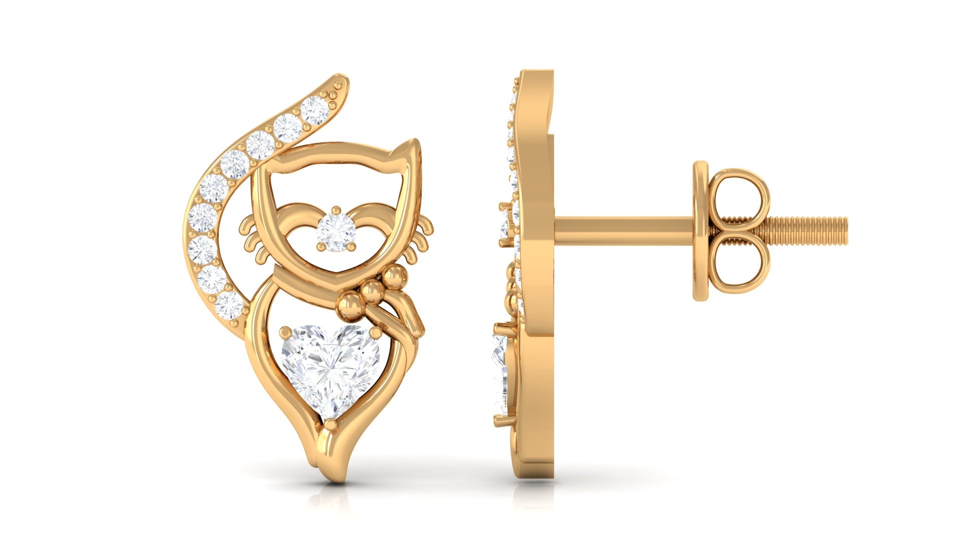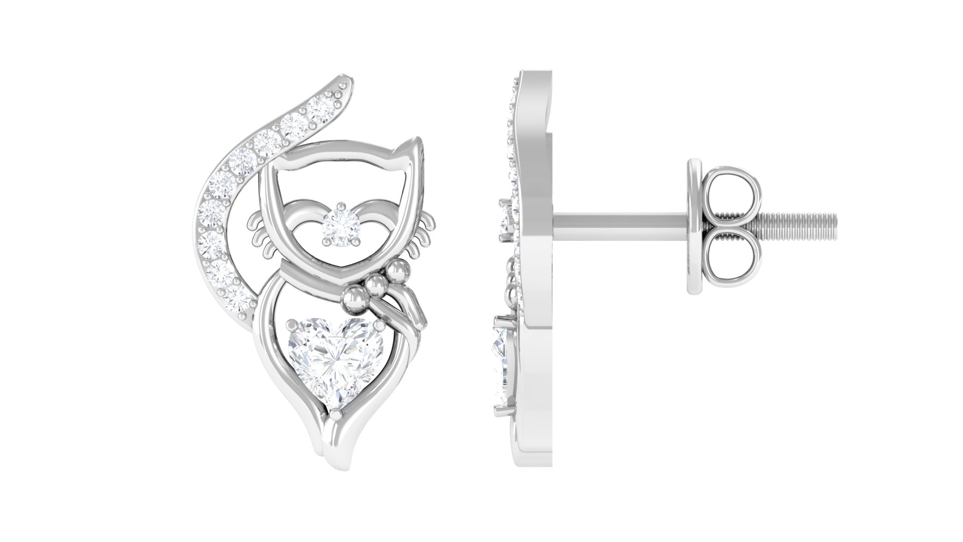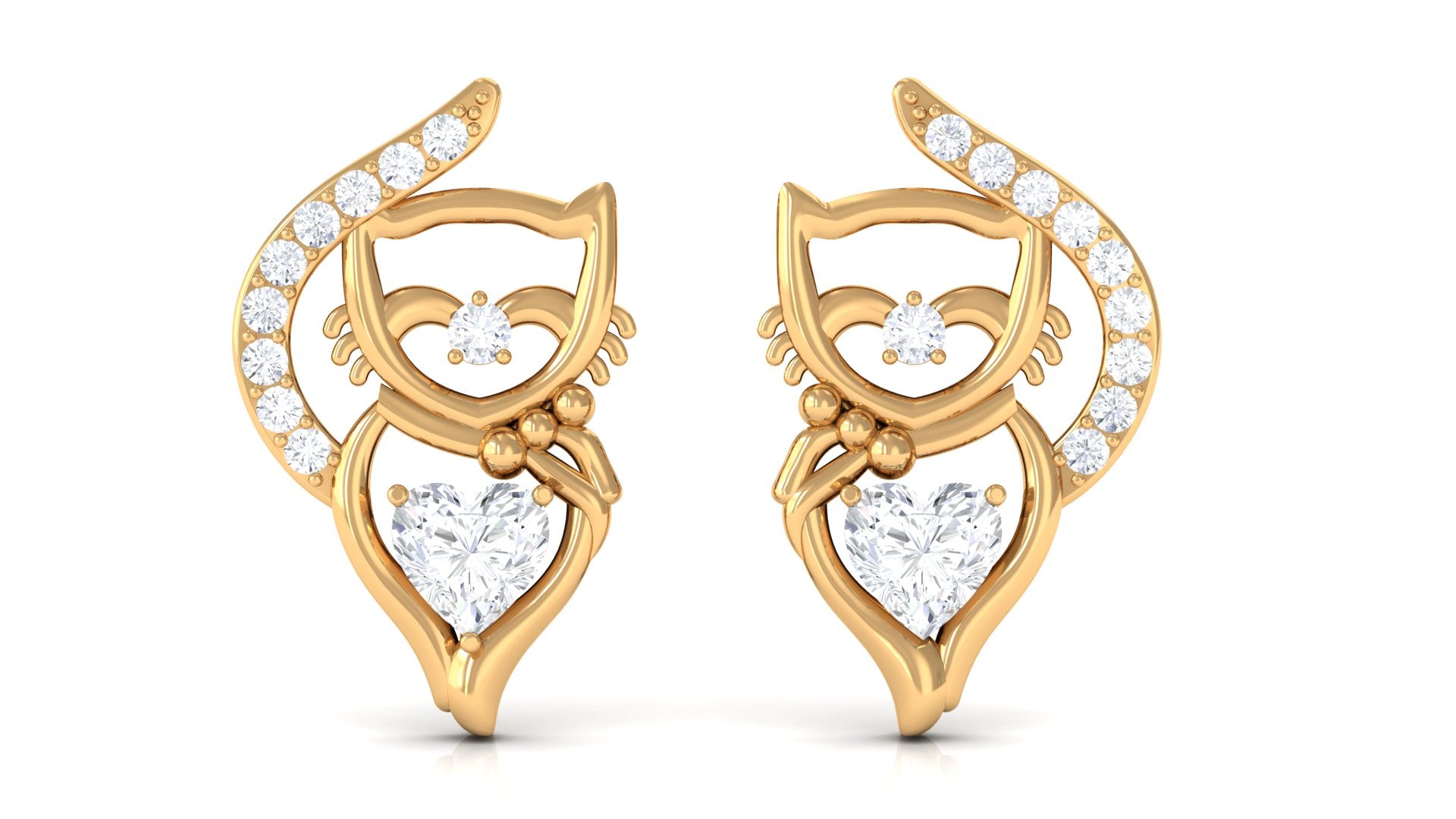 Show off your cattitude with these Diamond Cat Stud Earrings, featuring a sassy feline with a long tail, you will make a bold statement with this furry friend. Incorporate these Cat Stud Earrings into your style and are an appropriate accessory for any occasion - whether it be work or pleasure. Wear these Cat Ear Studs and dont go anywhere without a little catty edge. These Earrings are portrayed with 4 mm Heart Shape Diamond in Prong Setting with a metal head and fur with a Round Diamond studded in the center. Its tail is beautifully accented with a brilliant cut and sparkling Diamond. These cat themed earrings are indeed for cat lovers that give an unmatched quirkiness factor. This pair of Earrings with Cats have quirky energy and would undoubtedly bring vibrance and individuality to your jewelry collection.