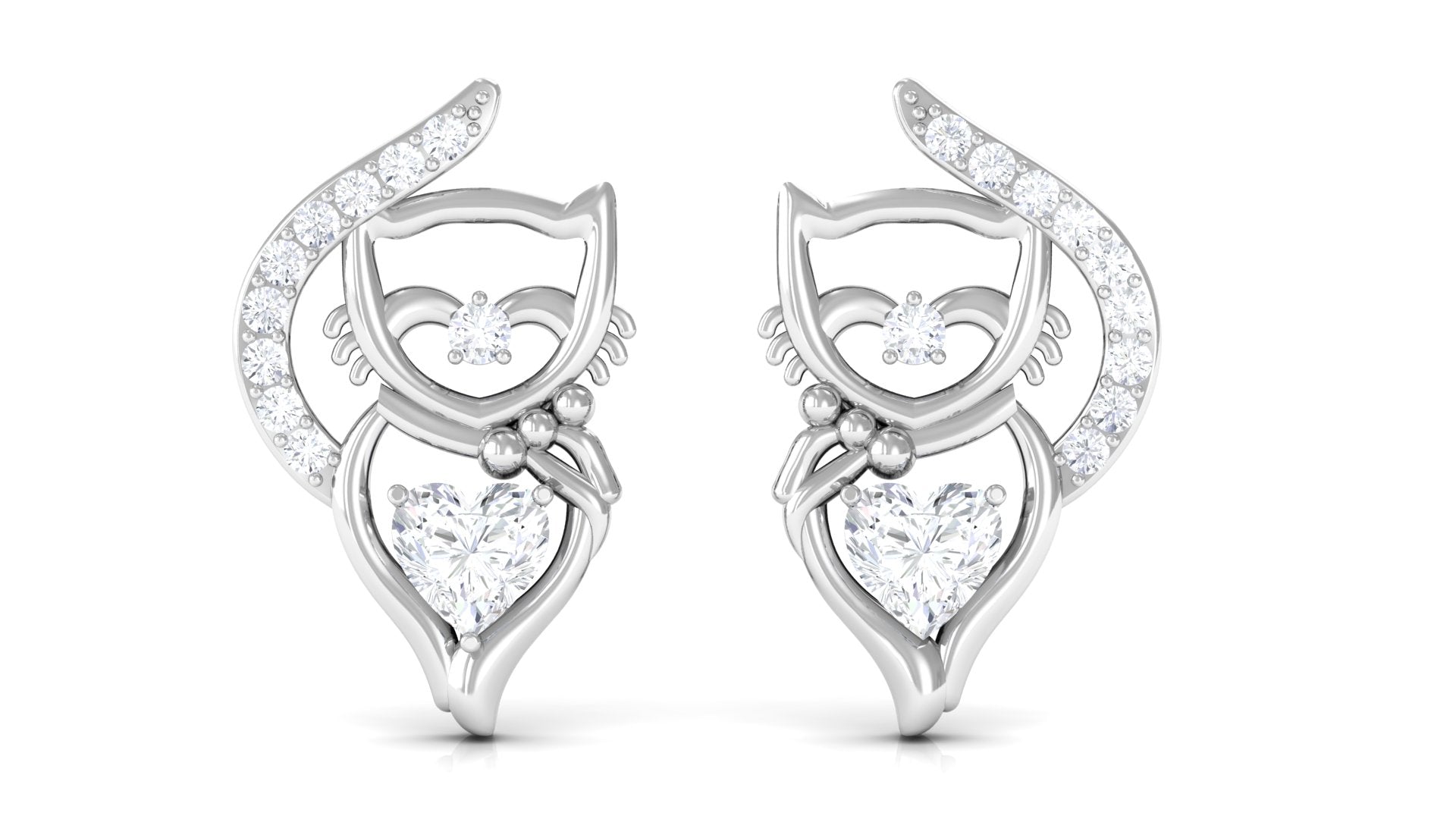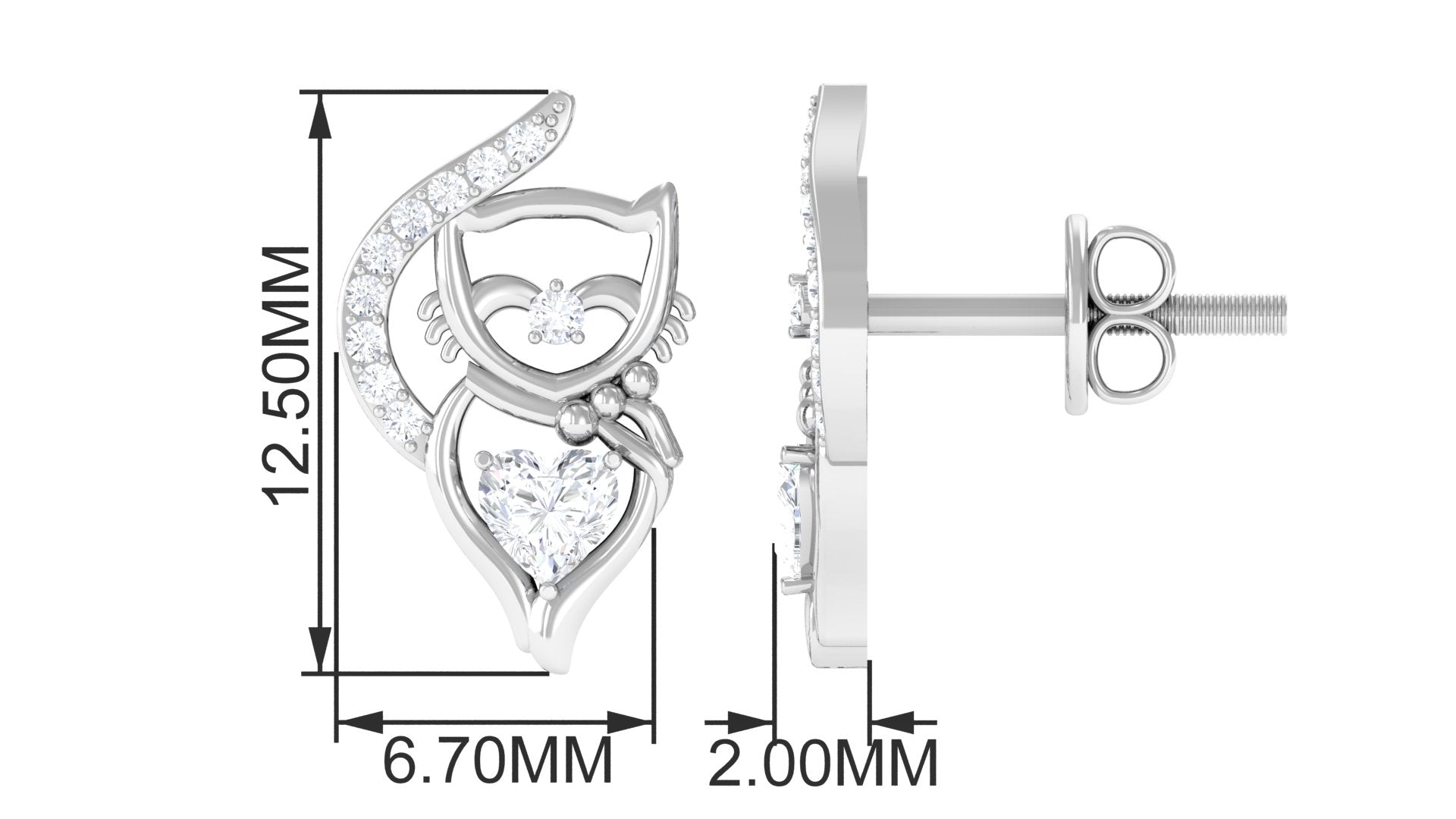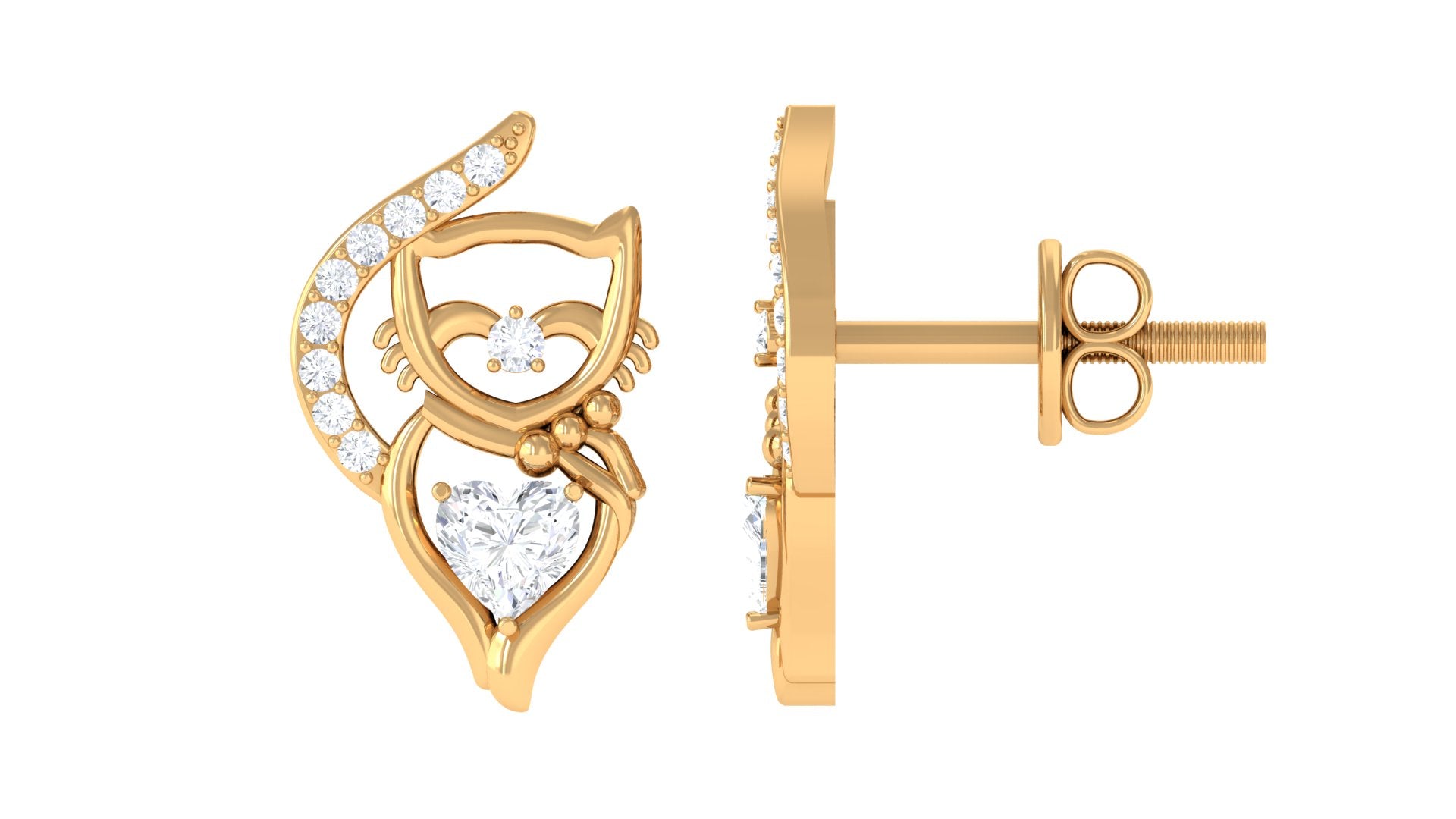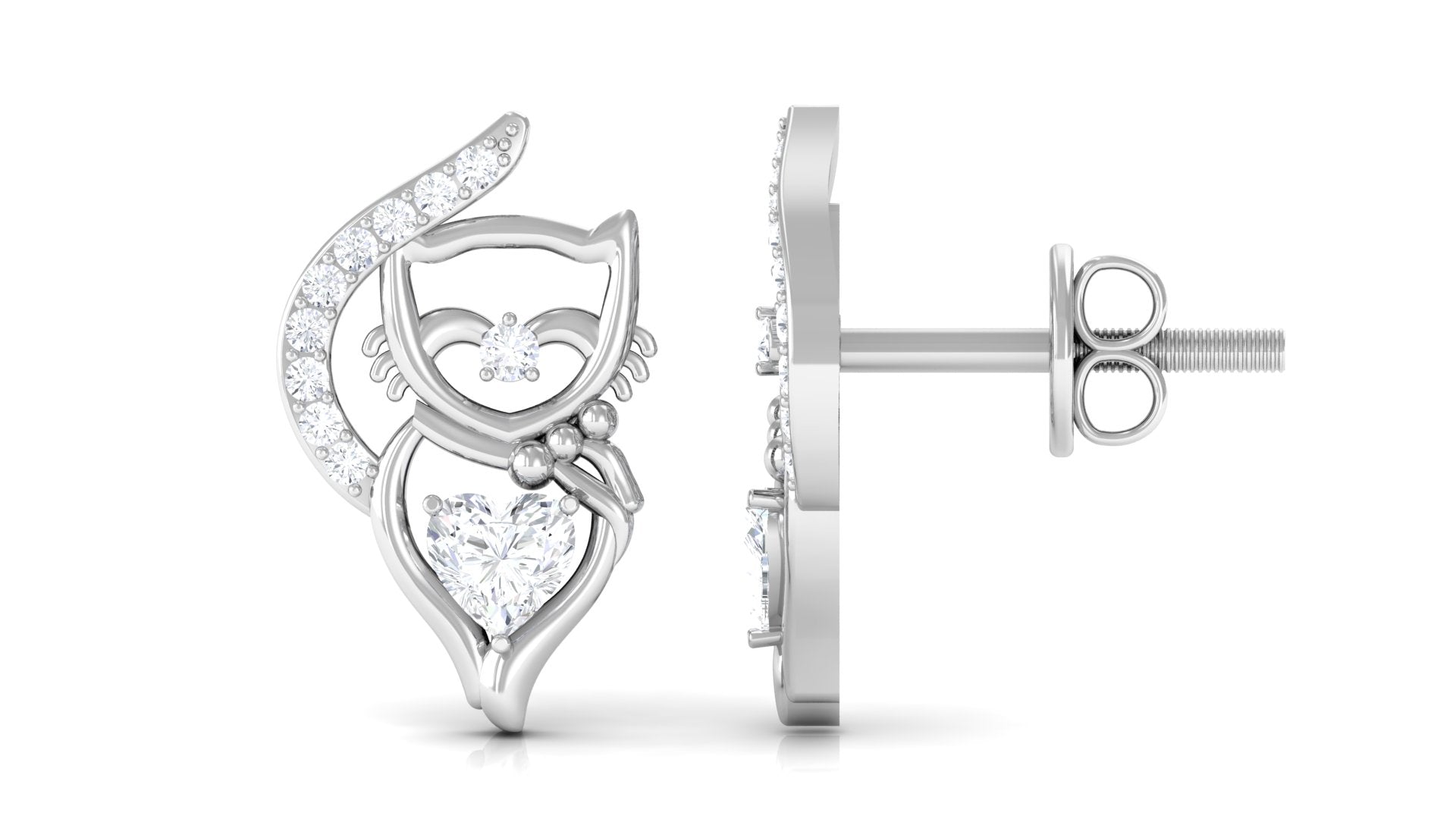 Show off your cattitude with these Diamond Cat Stud Earrings, featuring a sassy feline with a long tail, you will make a bold statement with this furry friend. Incorporate these Cat Stud Earrings into your style and are an appropriate accessory for any occasion - whether it be work or pleasure. Wear these Cat Ear Studs and dont go anywhere without a little catty edge. These Earrings are portrayed with 4 mm Heart Shape Diamond in Prong Setting with a metal head and fur with a Round Diamond studded in the center. Its tail is beautifully accented with a brilliant cut and sparkling Diamond. These cat themed earrings are indeed for cat lovers that give an unmatched quirkiness factor. This pair of Earrings with Cats have quirky energy and would undoubtedly bring vibrance and individuality to your jewelry collection.