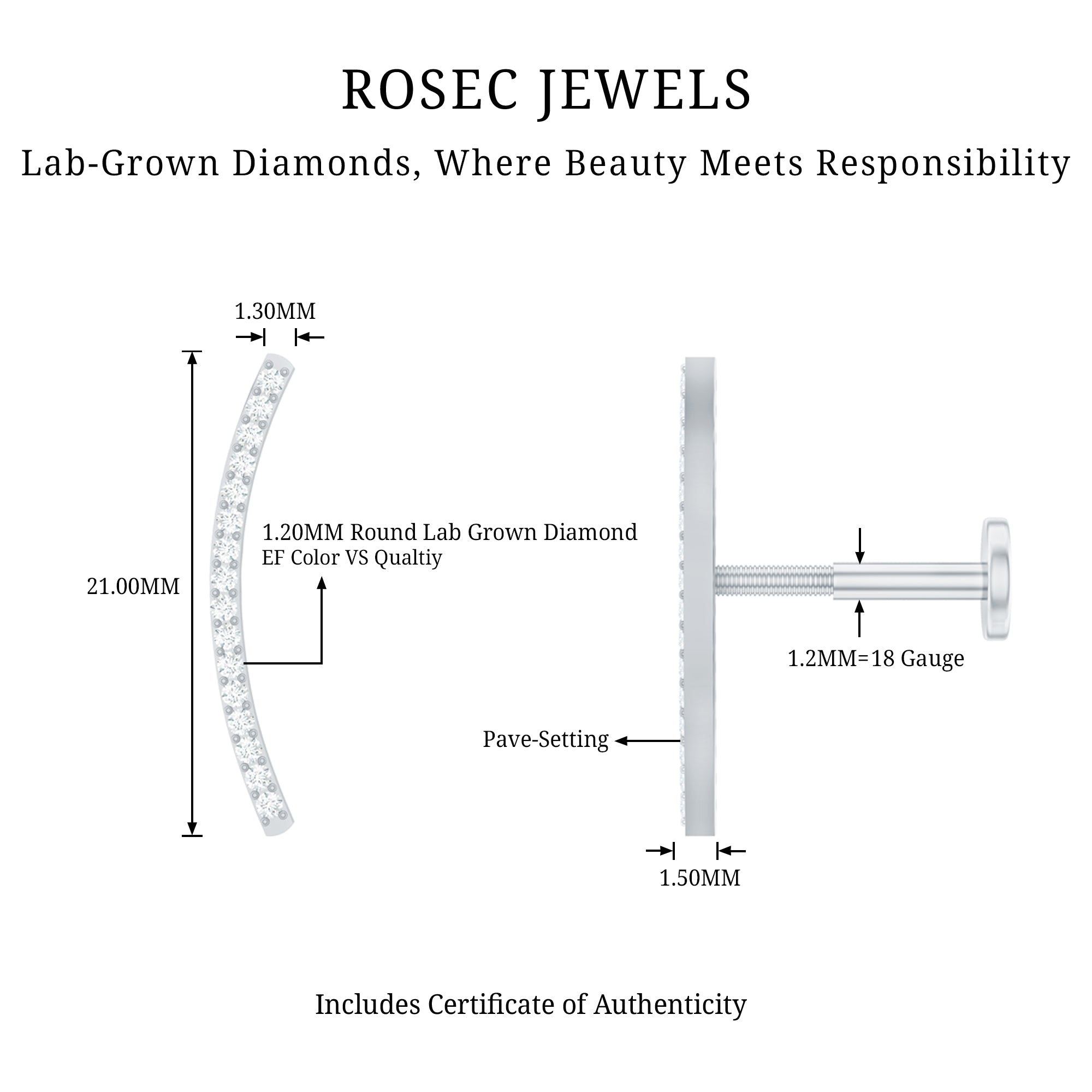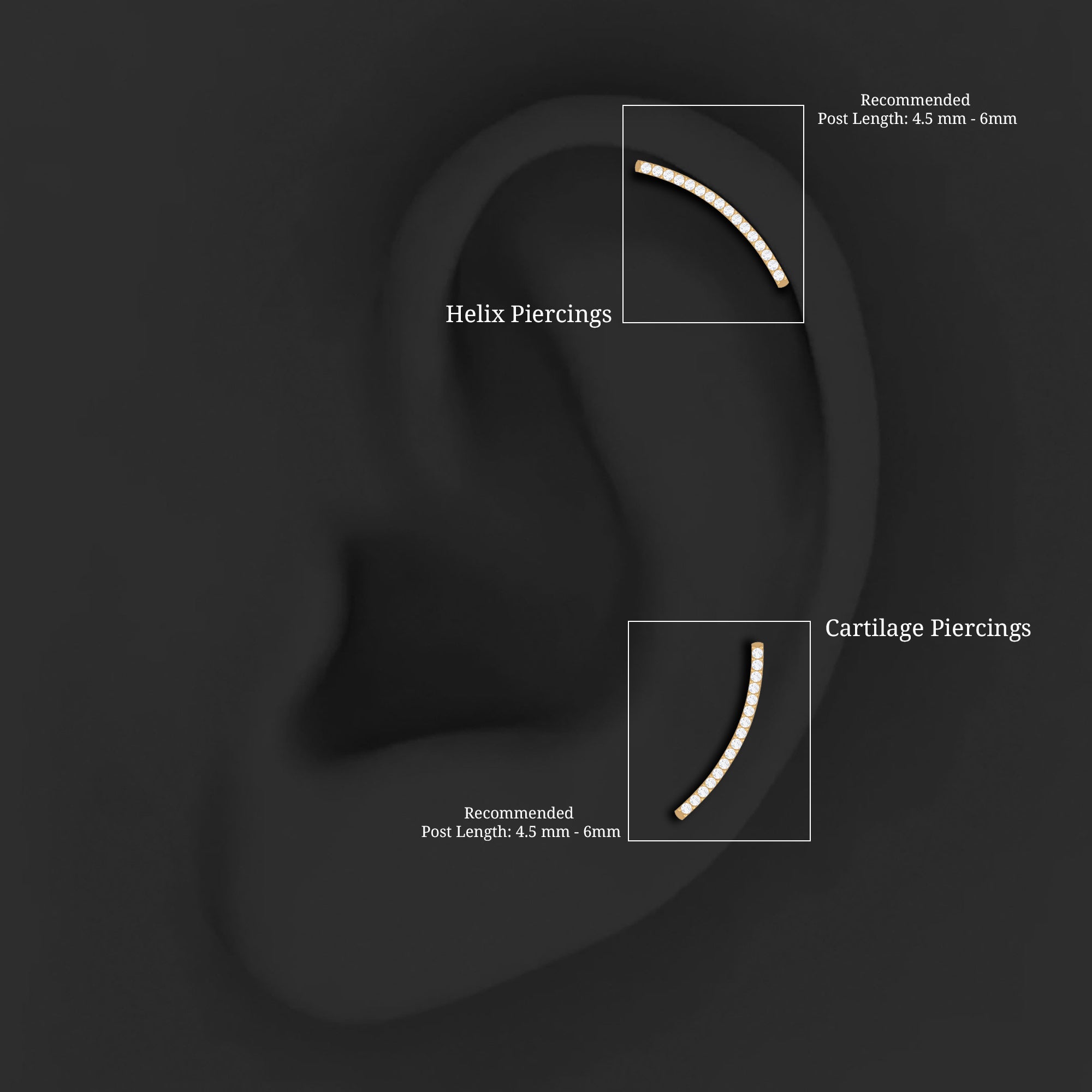 Pave Set Diamond Curved Bar Earring for Cartilage Piercing