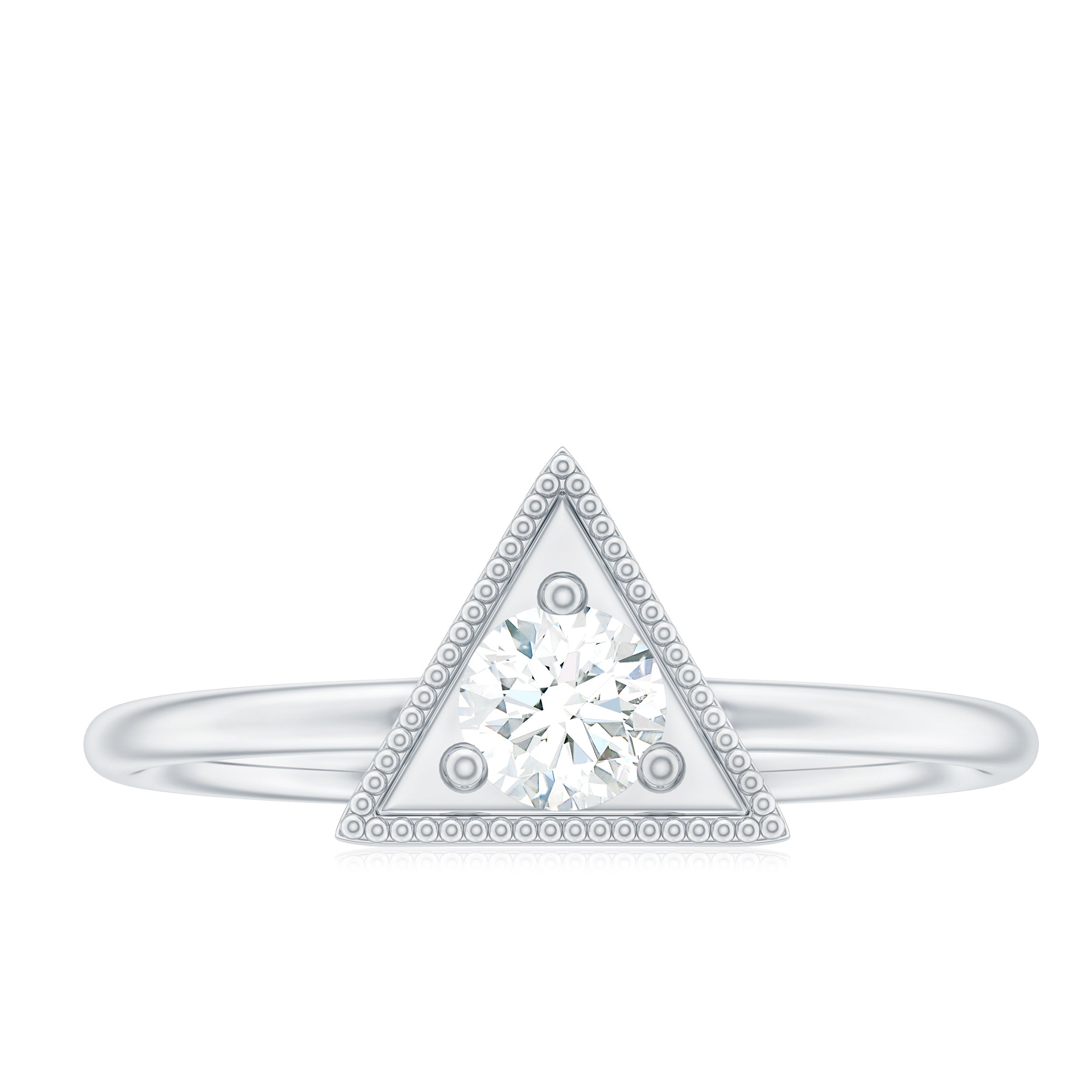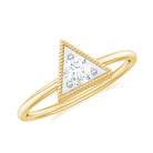 Our Promise Ring, delicately designed with a Round Cut Diamond at its center, is nestled within a distinctive triangular frame, held securely in place by a surface prong setting. The addition of Beaded Detailing only adds to its charm and allure. This Triangle Diamond Ring, crafted with Solid Gold, is sure to elevate your style and garner endless compliments throughout your day.