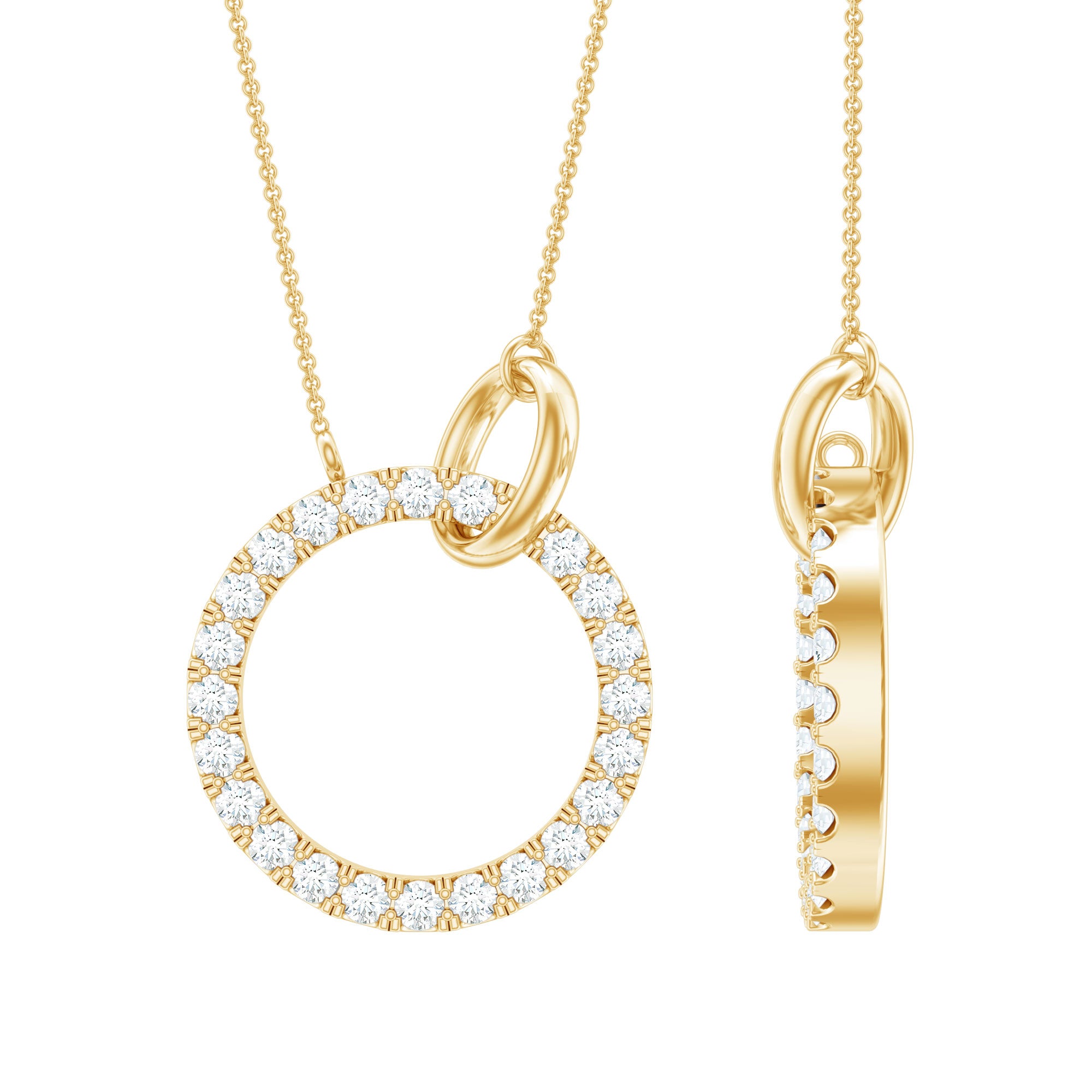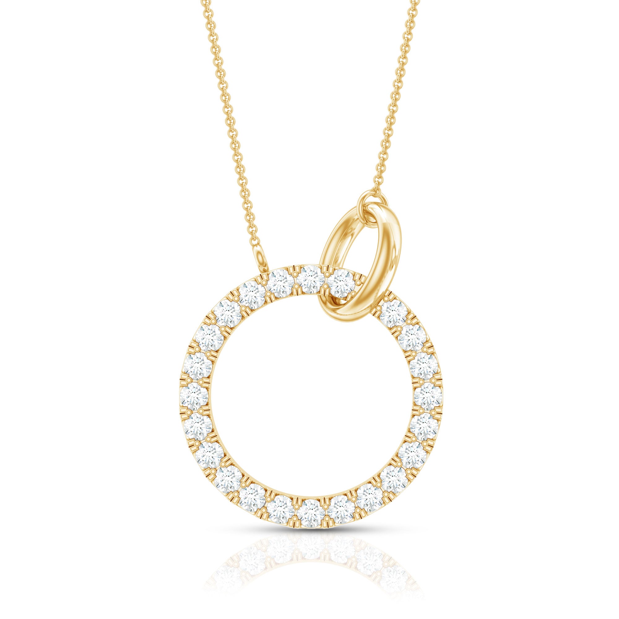 A Diamond Eternity Necklace is an exquisite token of your love which will captivate her heart with its mesmerizing sparkle. Embellished with dainty Round Cut Diamonds secured in French Pave Setting on a circular frame. • With its alluring shine, the Diamond Necklace will effortlessly enhance your casual or evening attire. A lovely birthday gift for someone special would be this elegant Circle Necklace.