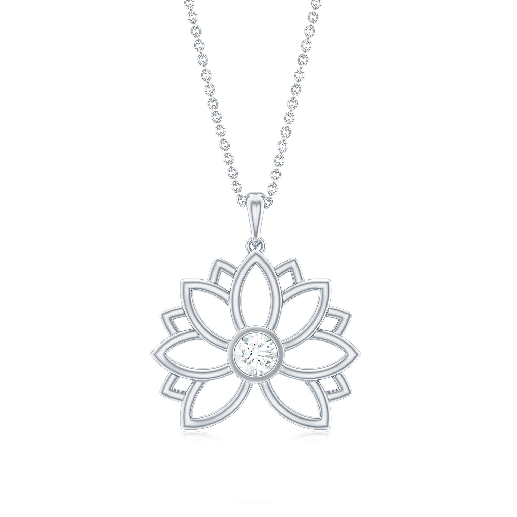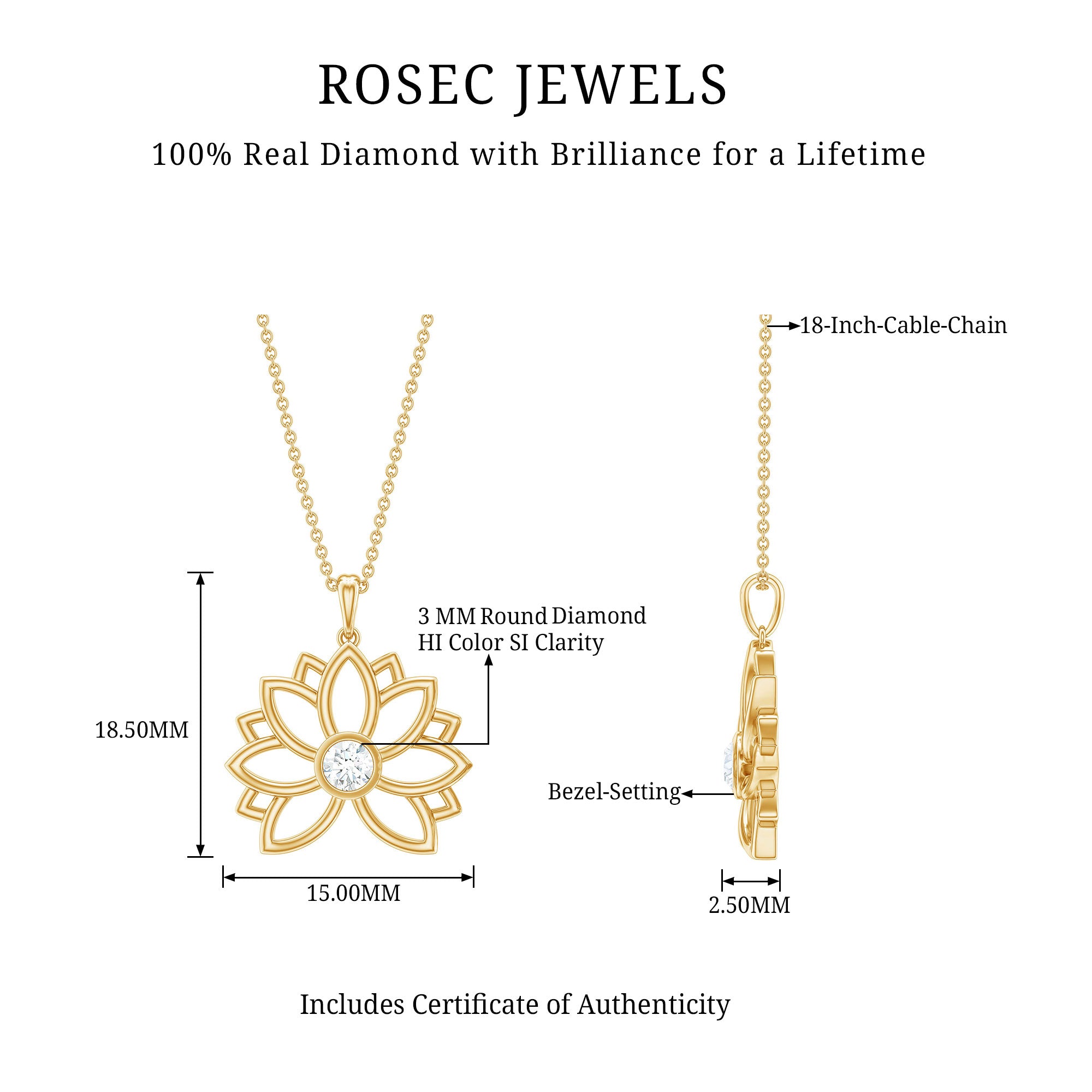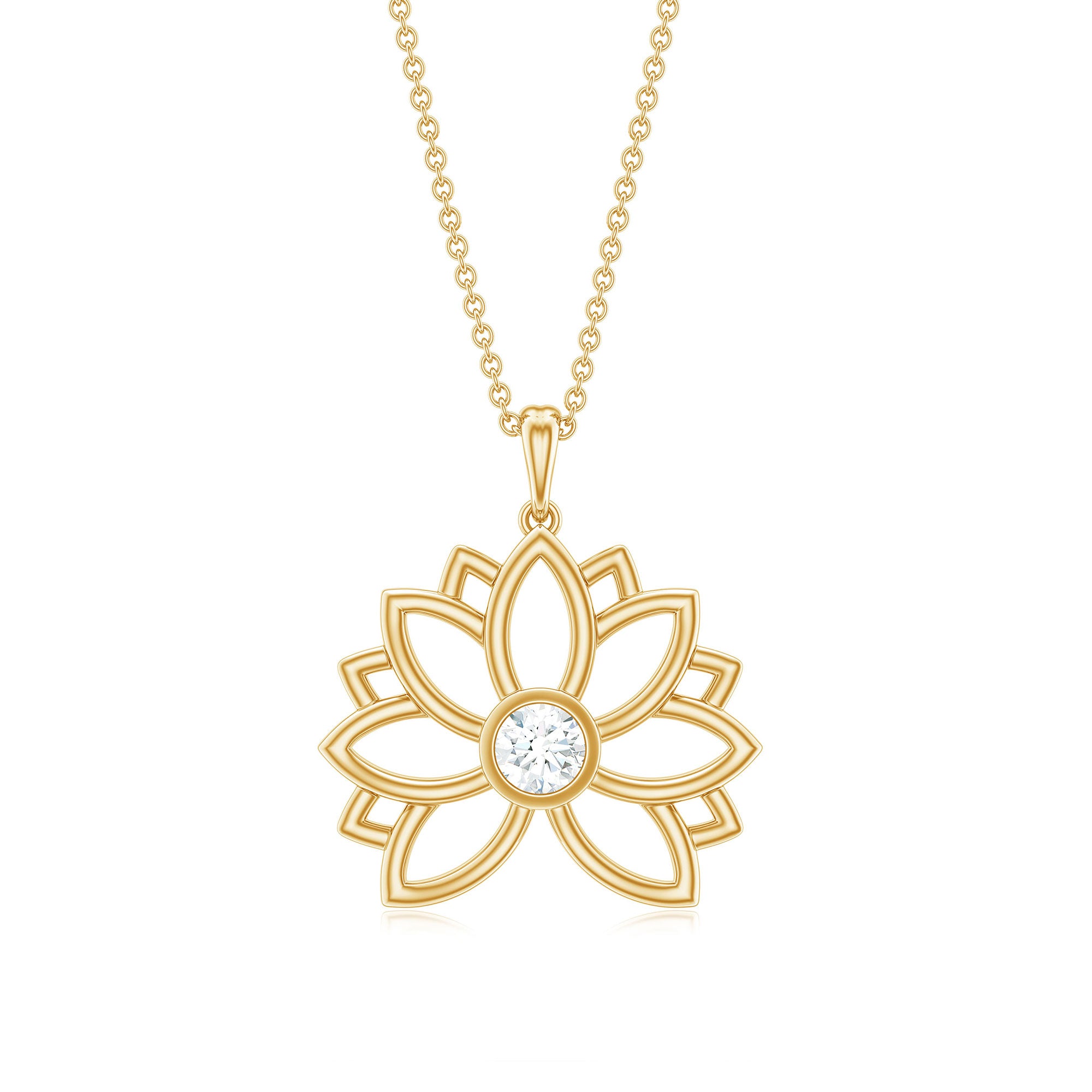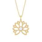Natural Diamond Gold Lotus Floral Pendant Necklace in Bezel Setting