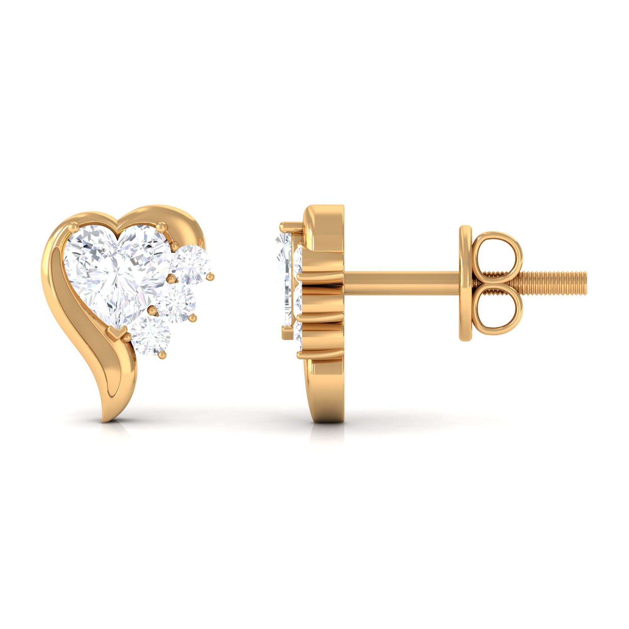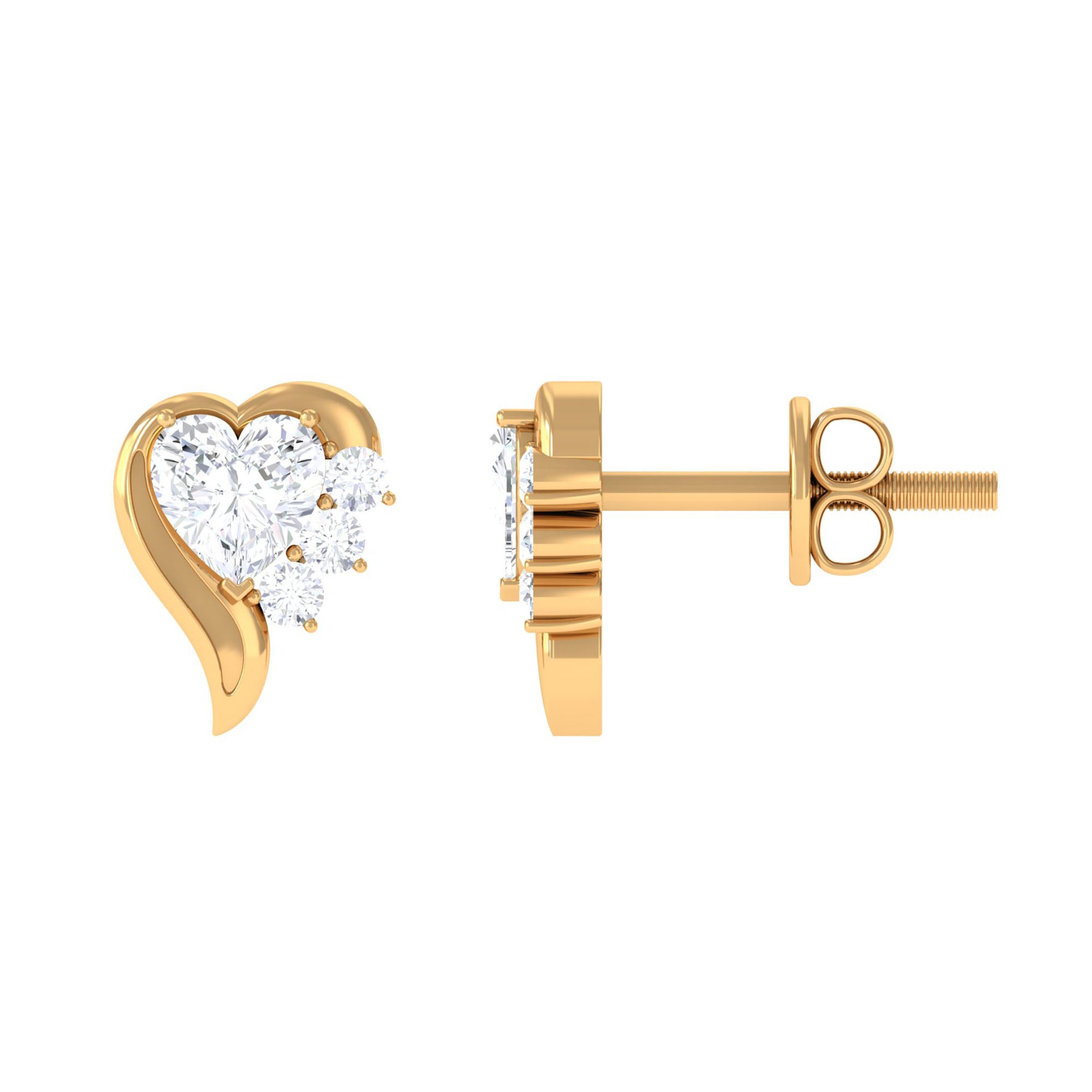 Celebrate love and sparkle with these Diamond Heart Earrings, a perfect blend of romance and elegance. Each Earring features a 4 mm Heart Shape Diamond at its center, surrounded by three dainty Diamond stones that catch the light with every movement, creating a subtle yet captivating shimmer. The secure Screw Back Closure ensures comfort and peace of mind, making these Diamond Stud Earrings ideal for both daily wear and special occasions. Versatile and effortlessly charming, these Diamond Ear Studs pair beautifully with casual outfits, office attire or elegant evening looks, adding a touch of timeless sophistication wherever they go. Delivered in a chic jewelry box, these Heart Stud Earrings arrive ready to gift, making them a thoughtful choice for birthdays, anniversaries or any moment that calls for a meaningful gesture. These Heart Shaped Earrings are a symbol of affection, connection and enduring beauty, a small reminder of someone special in your life. Whether you are treating yourself or surprising a loved one, the delicate sparkle and romantic design of these earrings turn every glance into a moment of joy and every day into a celebration of love.