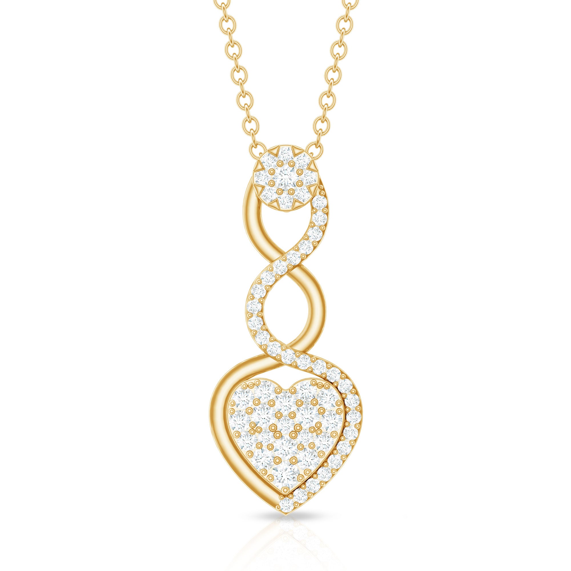 The Diamond Pendant Necklace is a stunning piece of jewelry that combines classic elegance with modern design. The heart-shaped pendant is adorned with natural diamonds, with an infinity symbol crafted from lustrous gold. With its timeless beauty and exceptional craftsmanship, this Infinity Heart Pendant is an unforgettable symbol of love and devotion. Present this pendant to your special one and capture a priceless reaction of her.