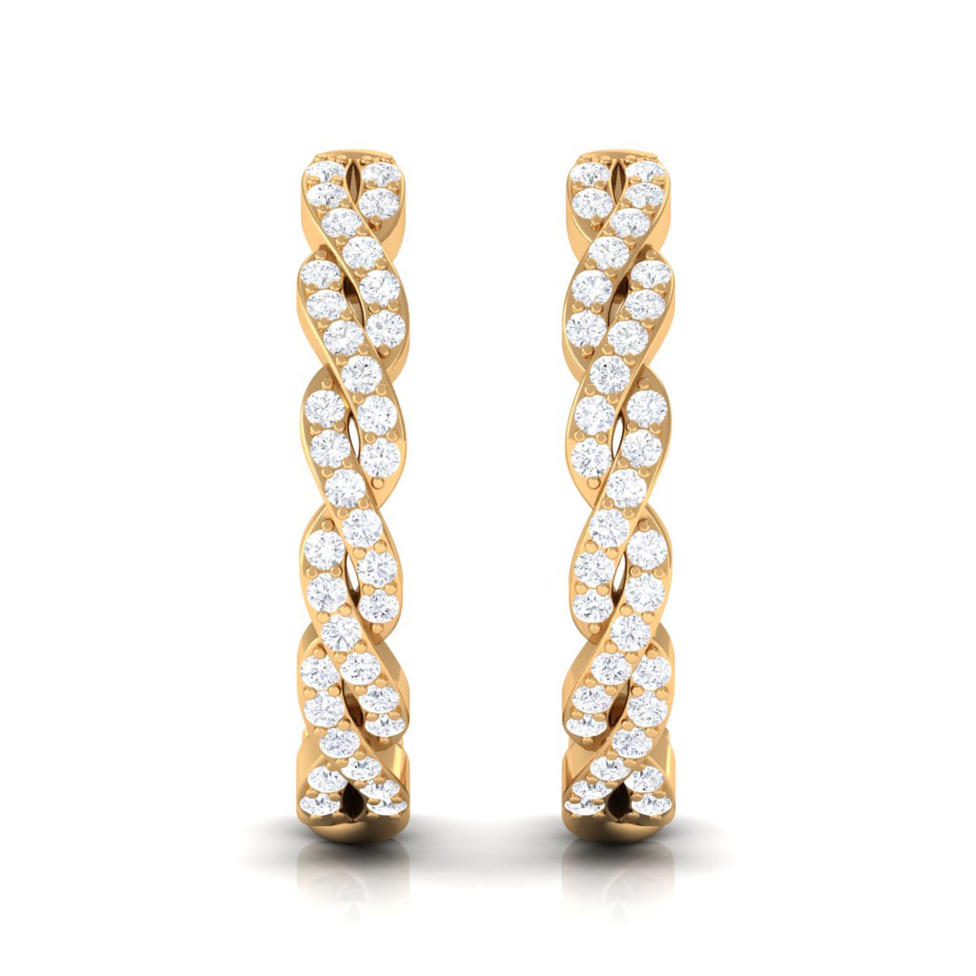 Uniquely designed to bring a touch of effortless elegance to any moment, these Twisted Hoop Earrings are the perfect blend of sparkle, style and sophistication. Their graceful Twisted design catches the light beautifully, giving each movement a soft shimmer that feels both modern and timeless. Delicately set dazzling Diamond stones add the right amount of brilliance, making these Half Hoop Earrings versatile enough for everyday wear yet stunning enough for special occasions. Crafted with a secure Screw Back Closure, these Diamond Hoop Earrings promise comfort and confidence all day long. Whether she pairs them with her favorite casual outfit or a glamorous evening look, these Diamond Earrings for Women elevate every ensemble with ease. Thoughtfully presented in a charming jewelry box, these Diamond Hoops make an unforgettable present for birthdays, anniversaries, holidays or simply to show someone how much they mean to you. Elegant and beautifully crafted, these Real Diamond Earrings are a little celebration of style and love in every twist.