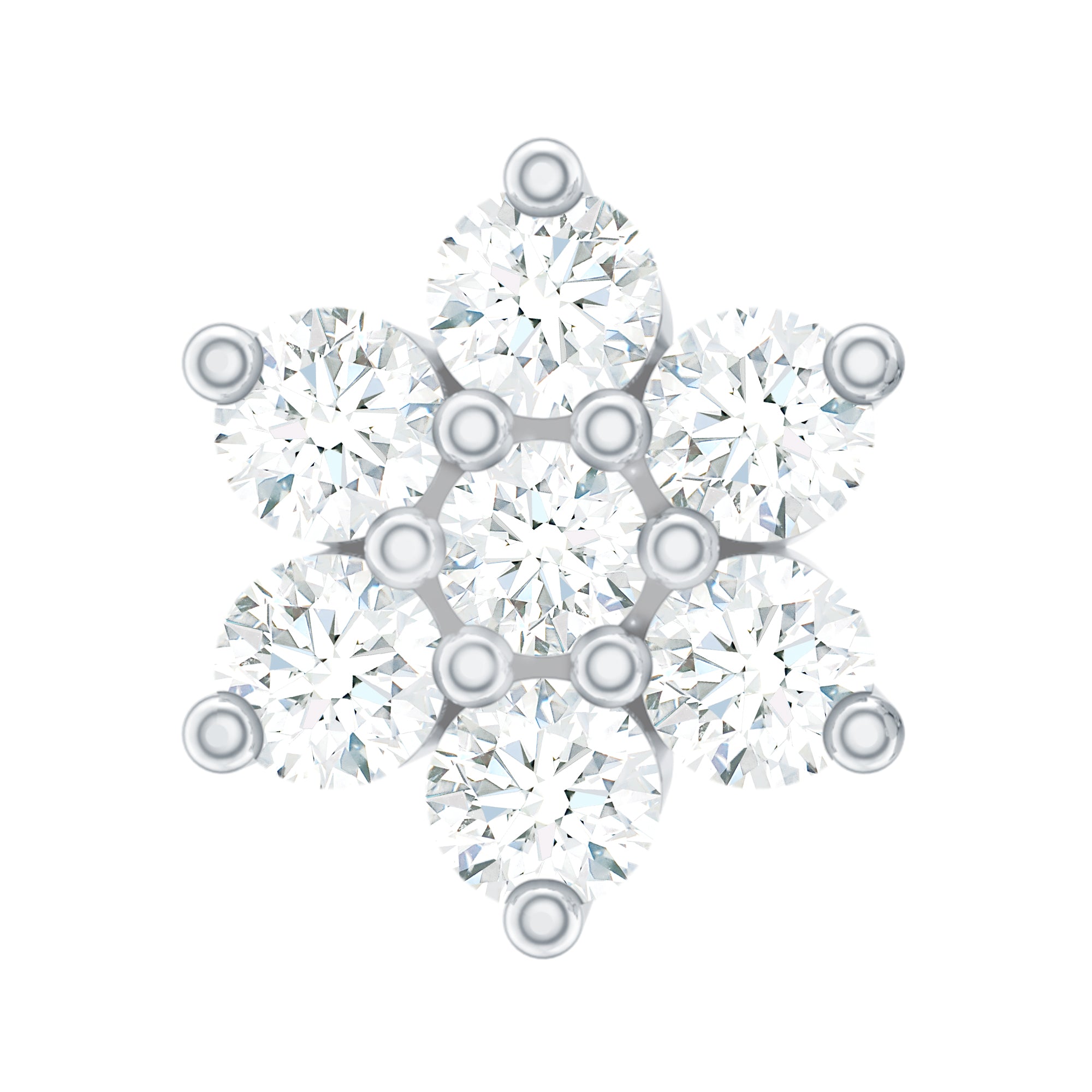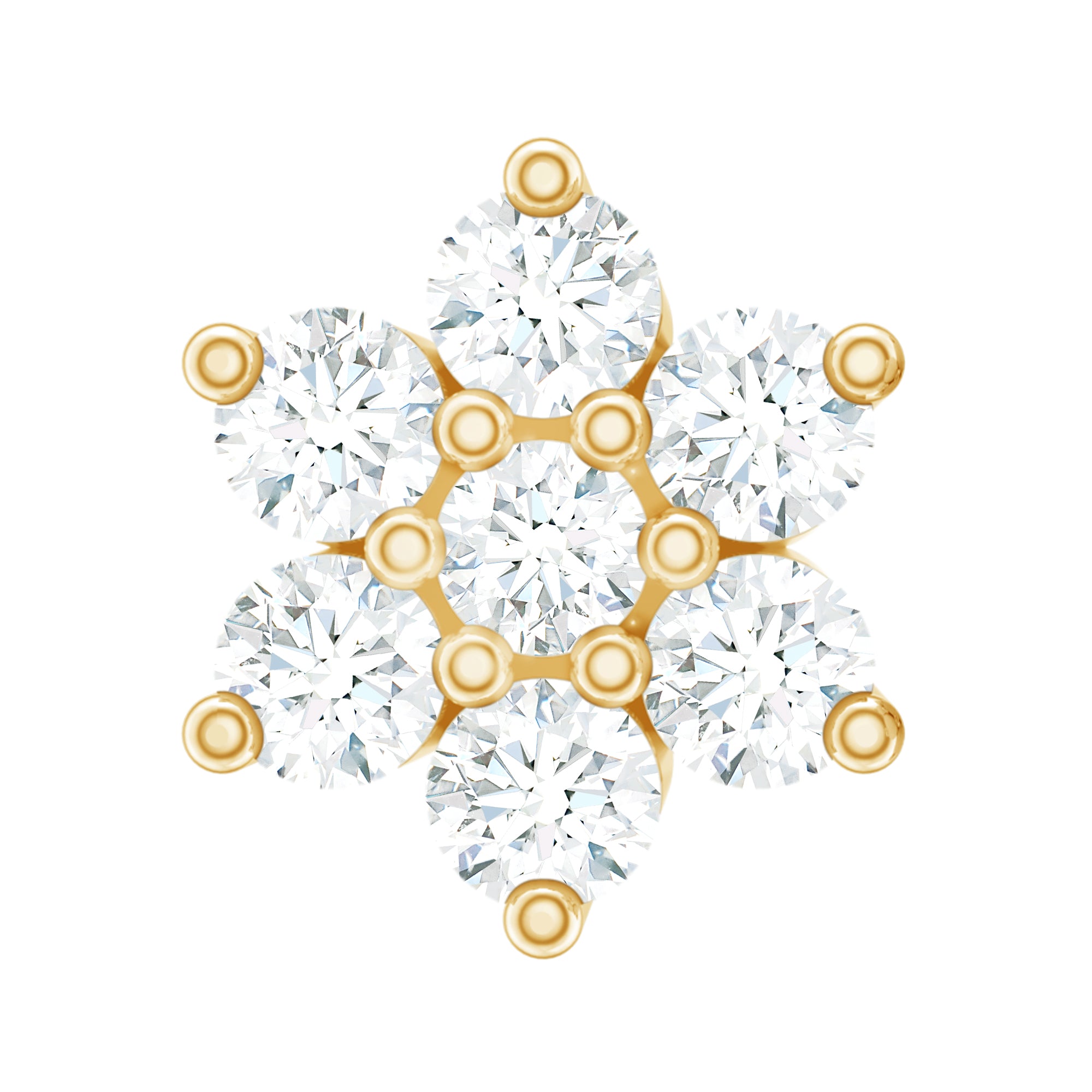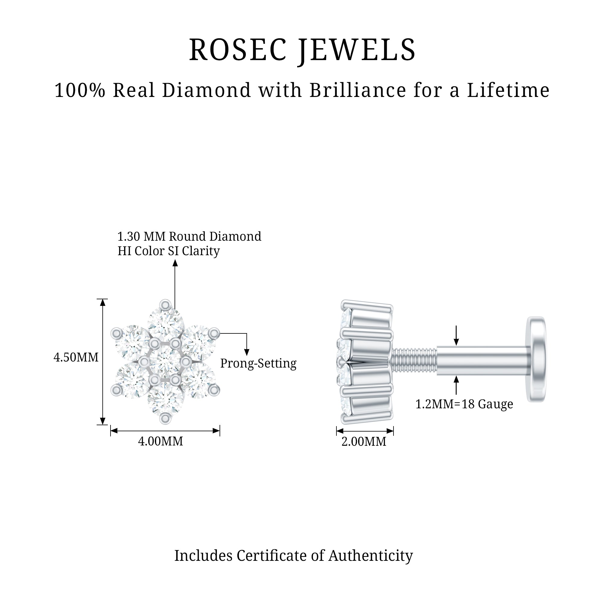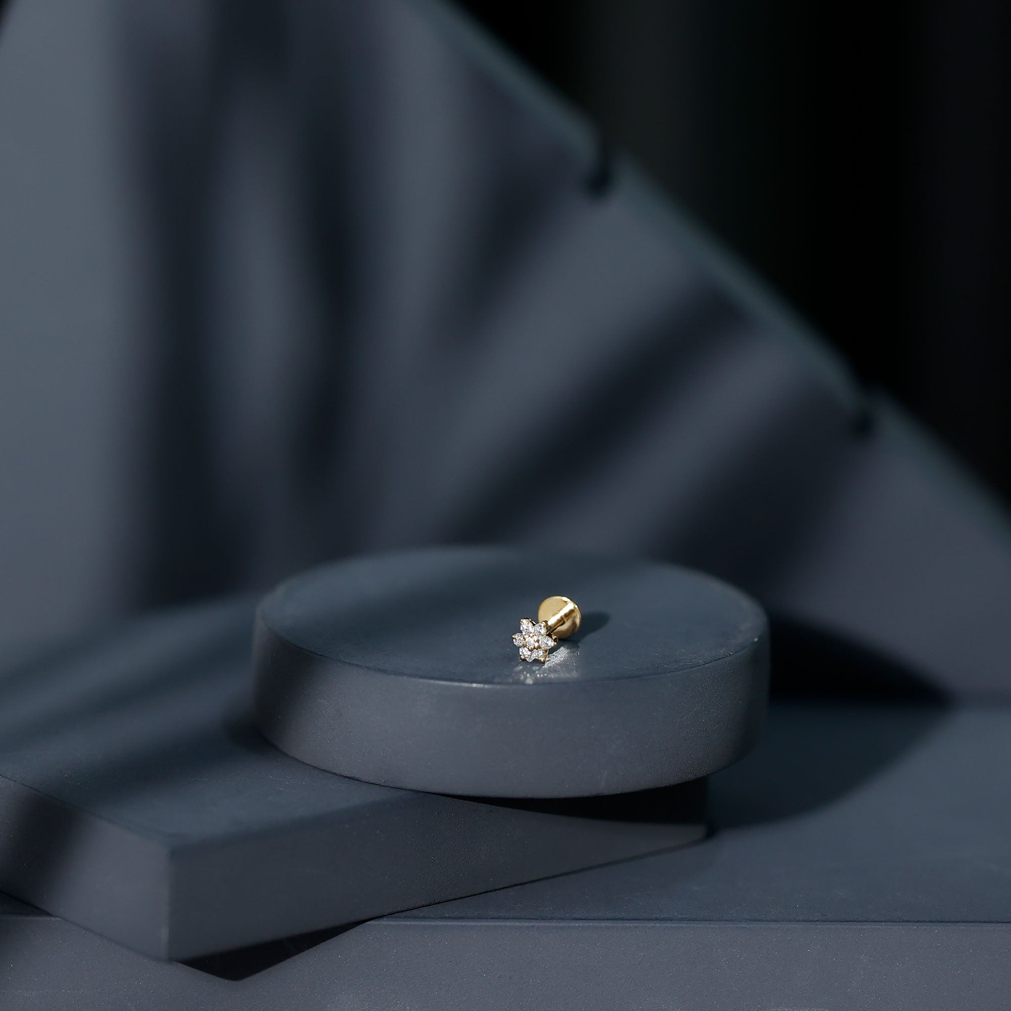 Introducing a stunning Floral Nose Pin adorned with small Round Shape Diamonds arranged in a delicate floral pattern. The simple yet secure Flat Back Closure ensures it stays in place all day long. Its timeless design is perfect to accentuate both casual and special occasions, making it a must-have addition to your jewelry collection. Surprise your loved one by gifting her this elegant Gold Nose Pin.