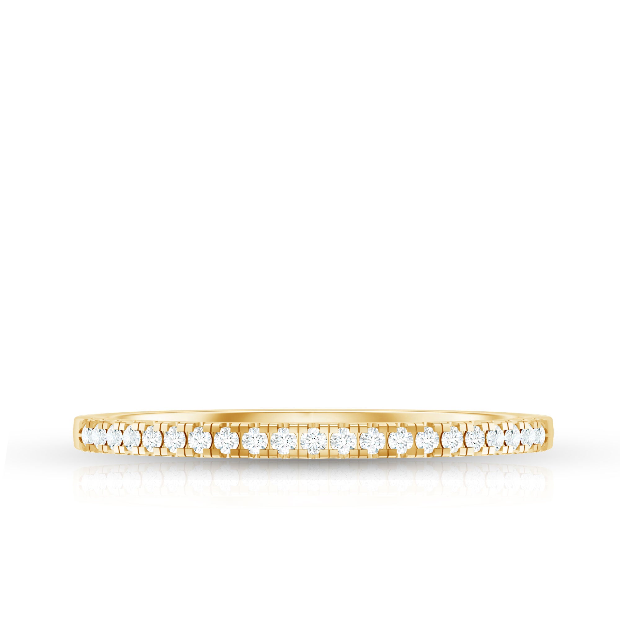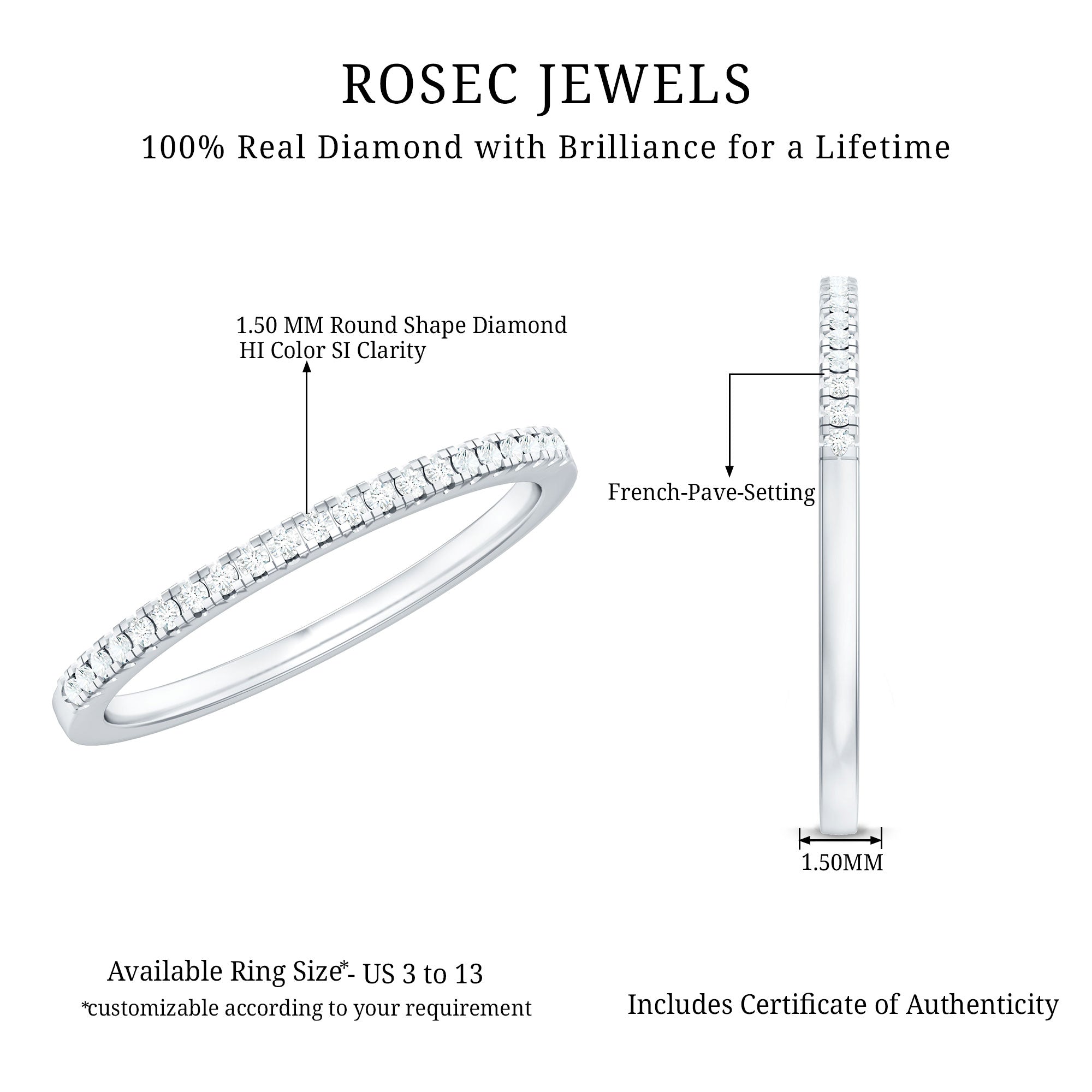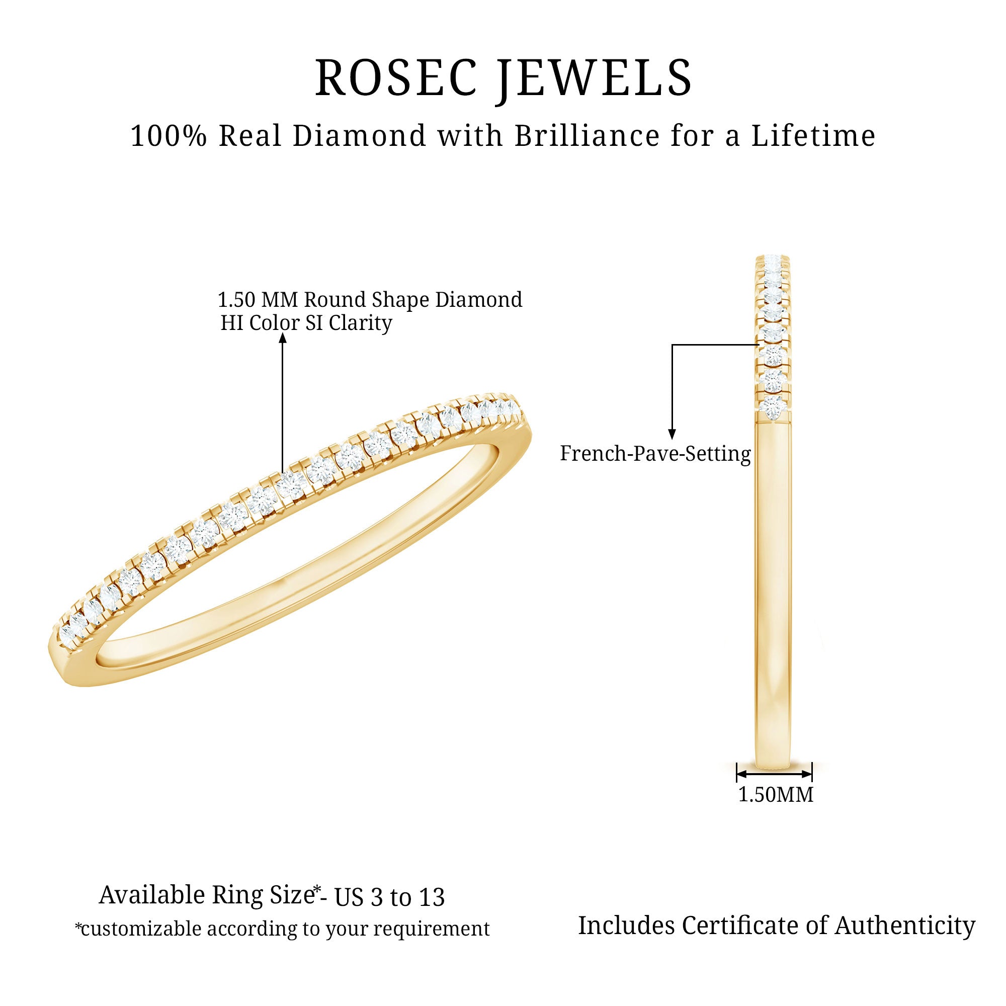 Seize the opportunity to captivate her heart once more with this exquisite Diamond Stackable Band Ring. Set in an enchanting French Pave Setting, this minimal band ring exudes charm and sophistication. Adorned with round shape diamonds arranged in a Semi Eternity style, it offers a subtle yet captivating aesthetic. Do not wait too long to gift this Diamond Ring to your beloved lady.