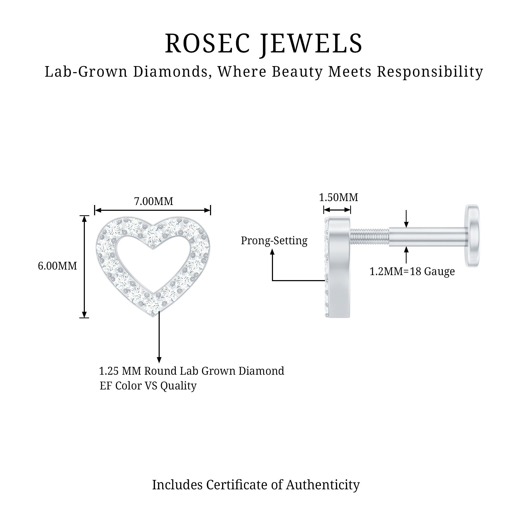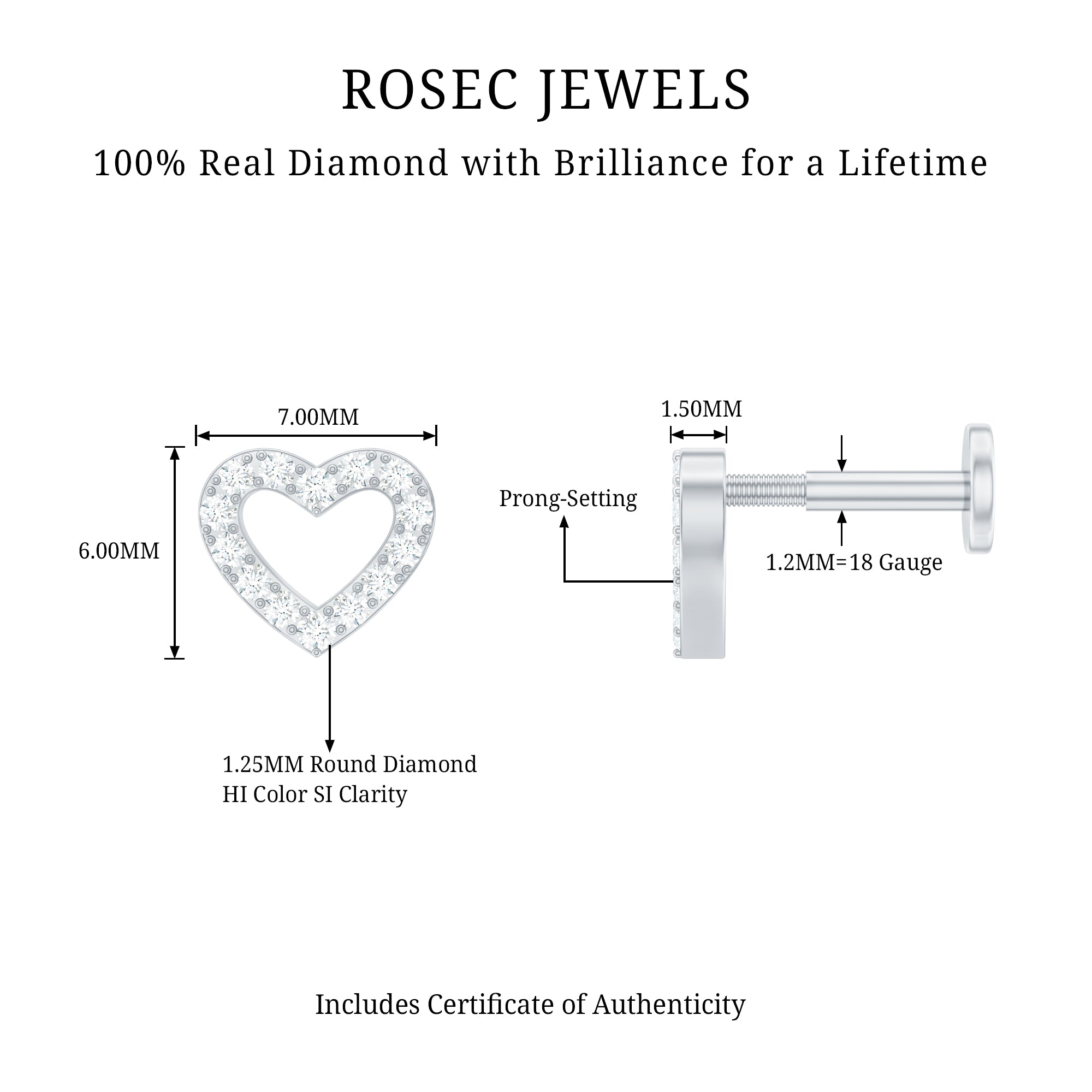A heart filled with love. Our open heart earring is cast from hallmarked metal. The open heart design is carefully set with sparkling round brilliant cut diamonds for subtle sparkle as they catch the light. You can wear this cute heart earring in your helix, conch, tragus, cartilage, or upper lobe piercing. Secures comfortable with flat back closure. Wear this heart diamond earring individually or pair it with your other piercing jewelry as part of a curated earring stack. This beautiful and dainty diamond stud earring is every girls dream. Suitable for all ages and will look good on anyone. These are perfect for everyday wear and special occasions.
