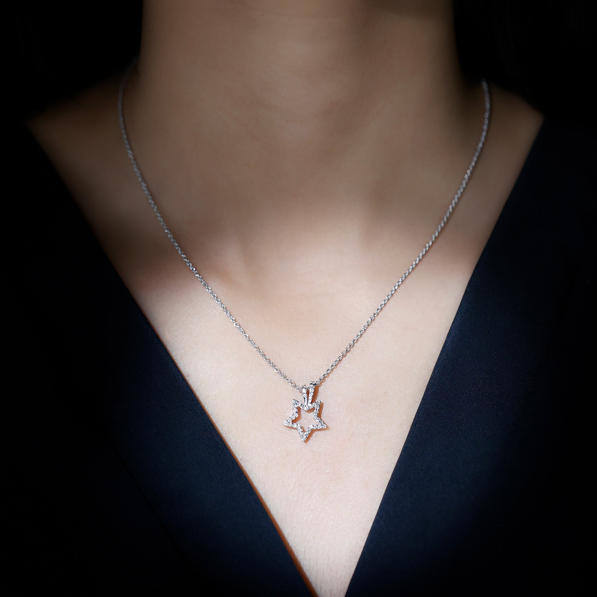 Looking for something to embrace your personality then get this Diamond Star Pendant. It features a Diamond Studded Star motif, the diamonds are securely placed in prong setting. The pendant beholds the classic shine of HI-SI quality Real Diamond which makes the star motif shine like a real night star. This Celestial Necklace is precisely crafted to beautify your neckline and will be delivered to you in a premium quality box.