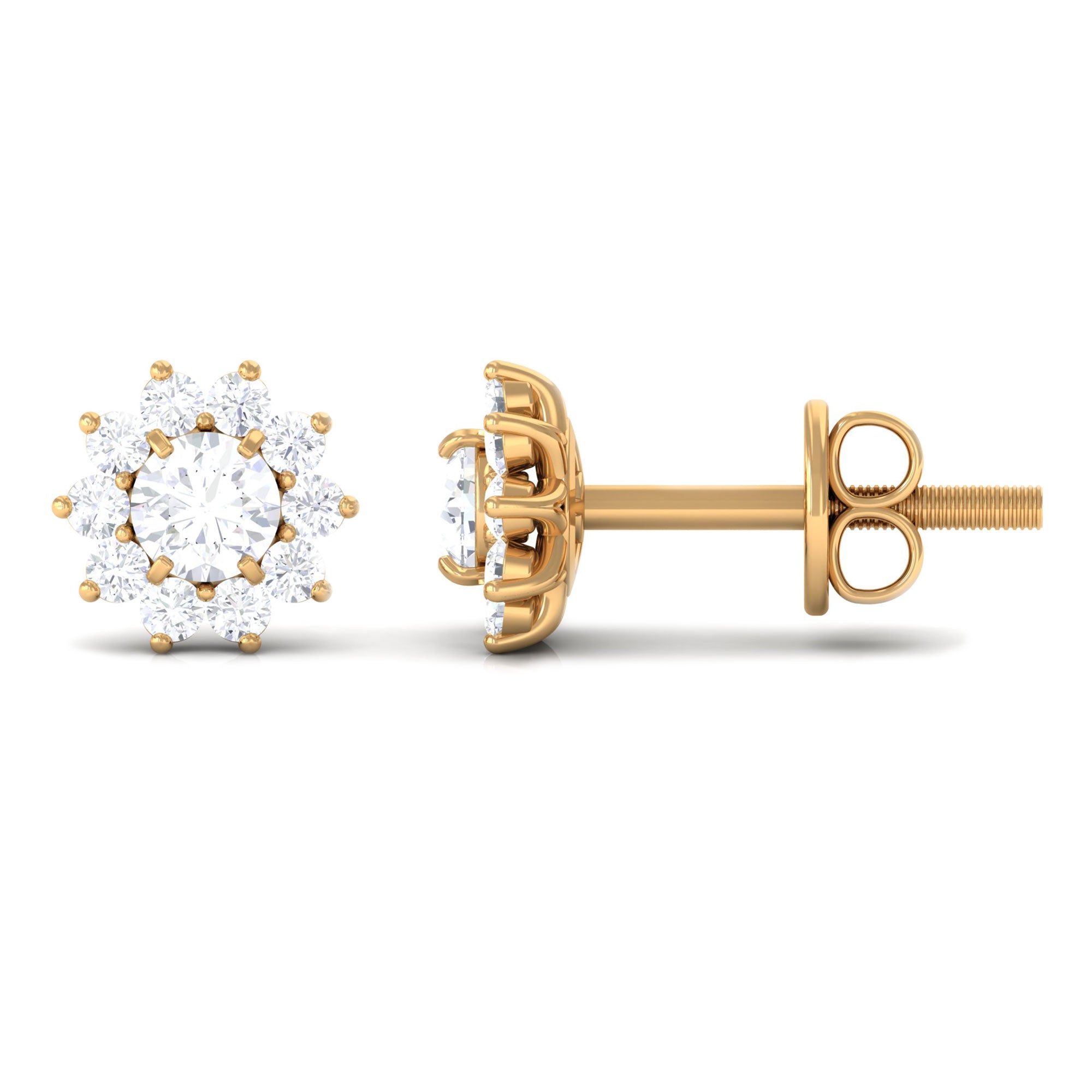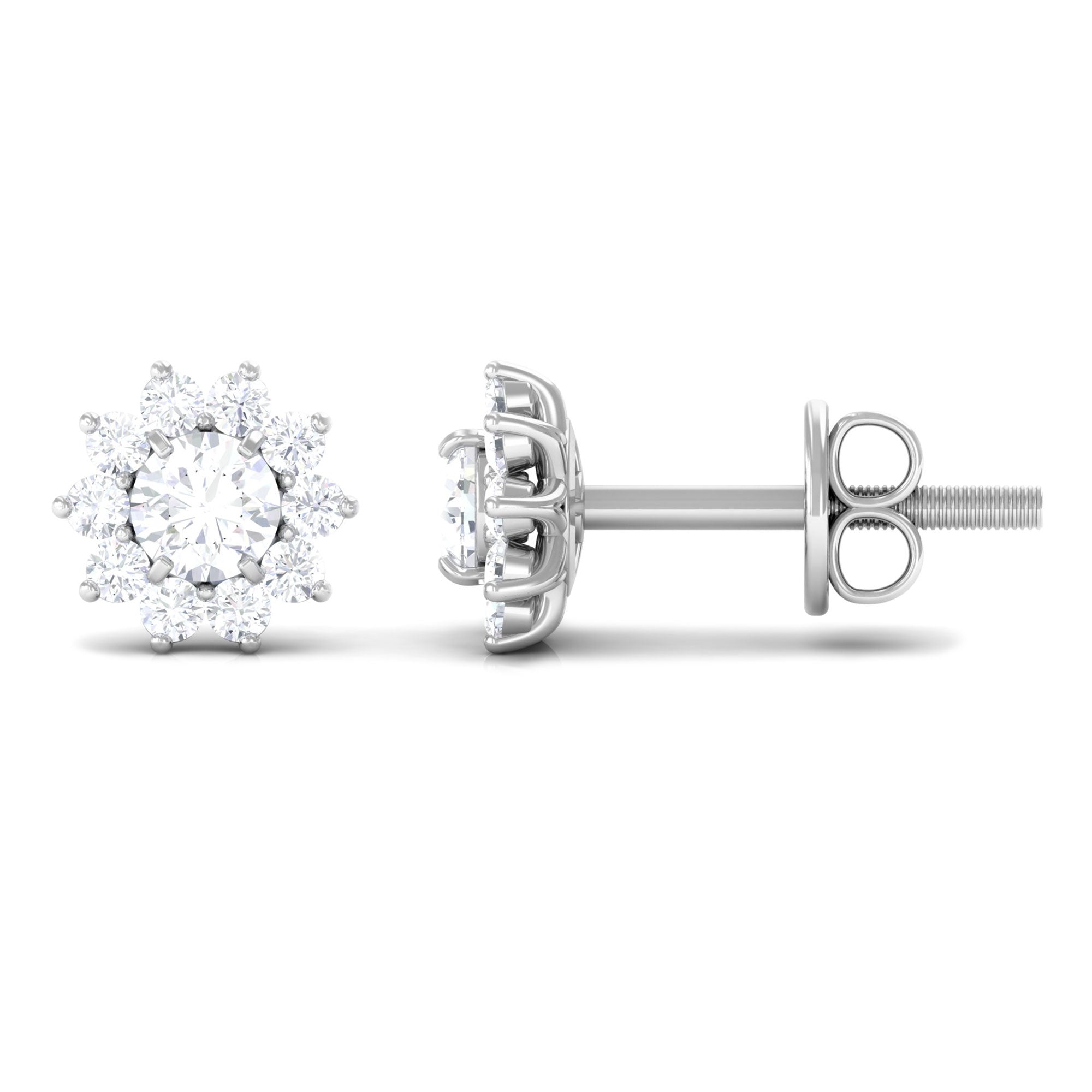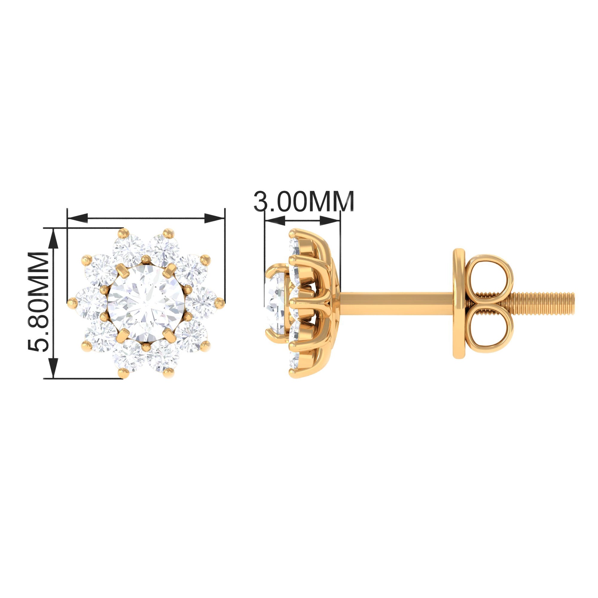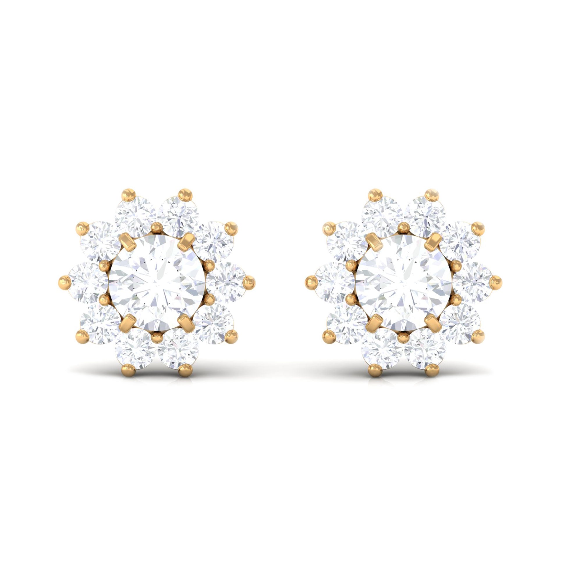 Elevate your everyday style with these Diamond Stud Earrings, designed to bring effortless sparkle to any moment. Each Stud features a 3 mm Round Shape Diamond surrounded by a delicate halo, creating a cluster-like glow that feels modern and beautifully timeless. Their minimalist design makes them perfect for women who appreciate jewelry that is subtle yet unbelievably stunning. The secure Screw Back Closure ensures they stay comfortably in place, giving you the freedom to wear them from morning to night without a worry. Presented in a charming jewelry box, these Diamond Earrings come ready to gift, making them a thoughtful choice for birthdays, anniversaries, holidays or a surprise for someone who deserves something truly special. Their classic design ensures they will be cherished and worn often, blending seamlessly with any jewelry collection. Delicate and endlessly versatile, these Diamond Ear Studs are a beautiful reminder that even the smallest details can shine the brightest.