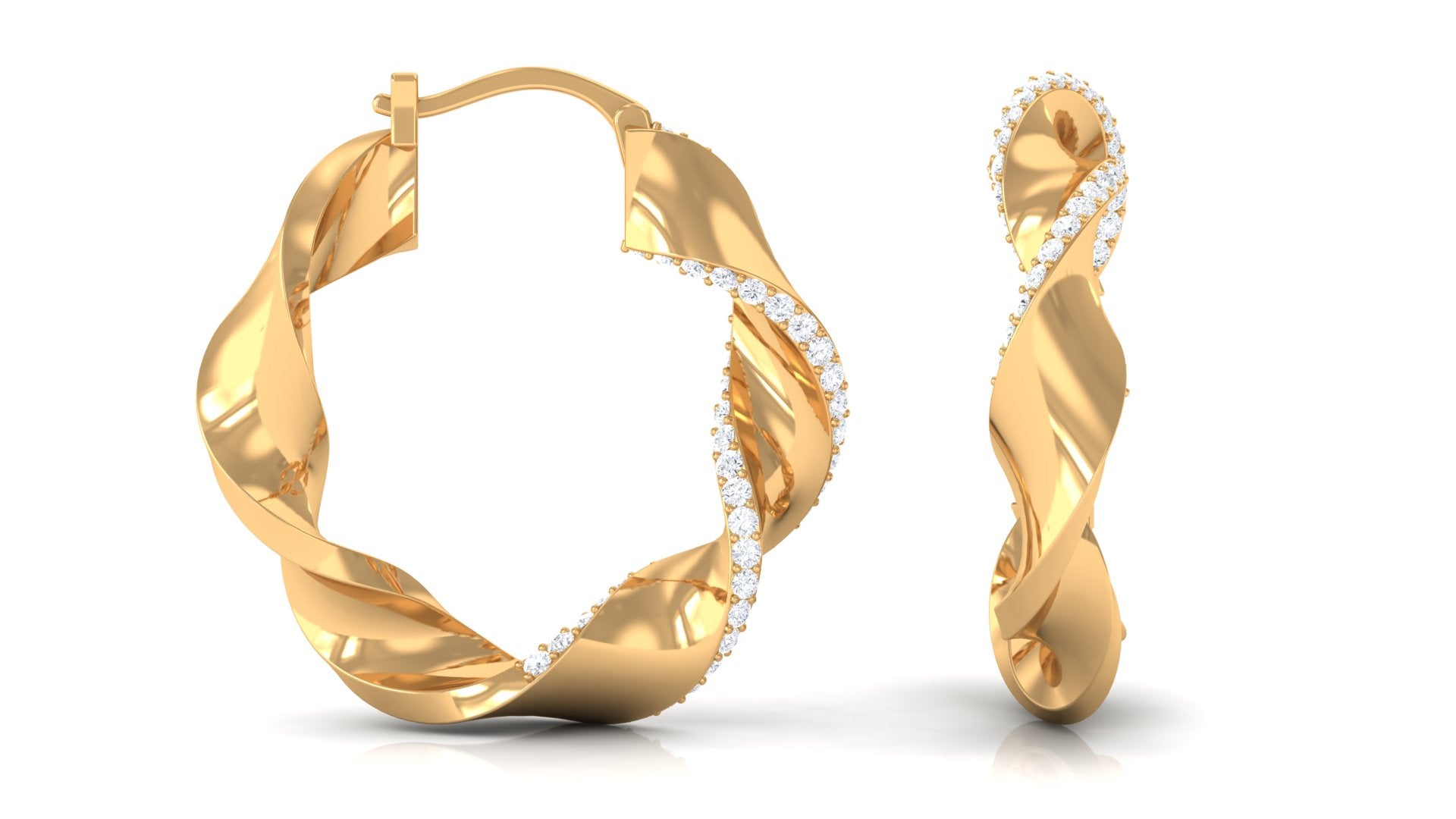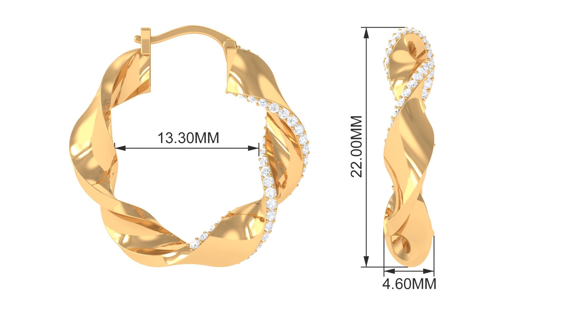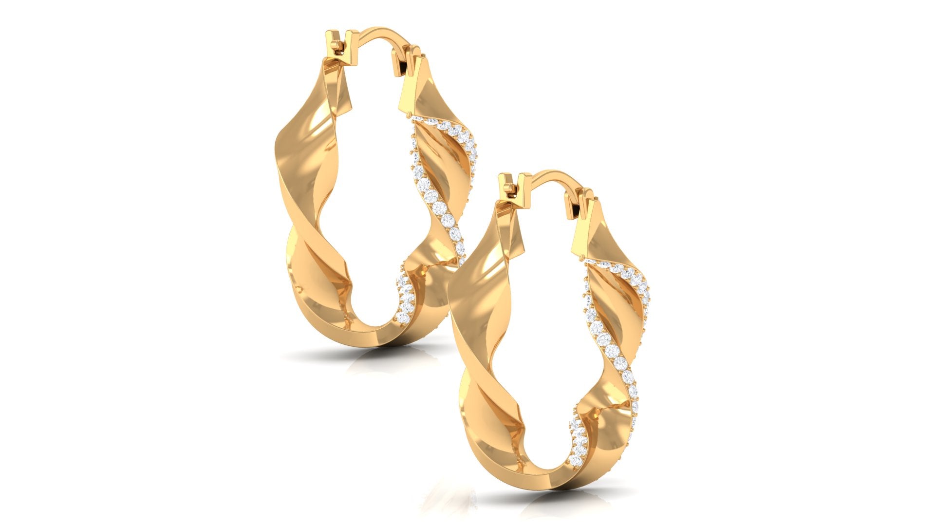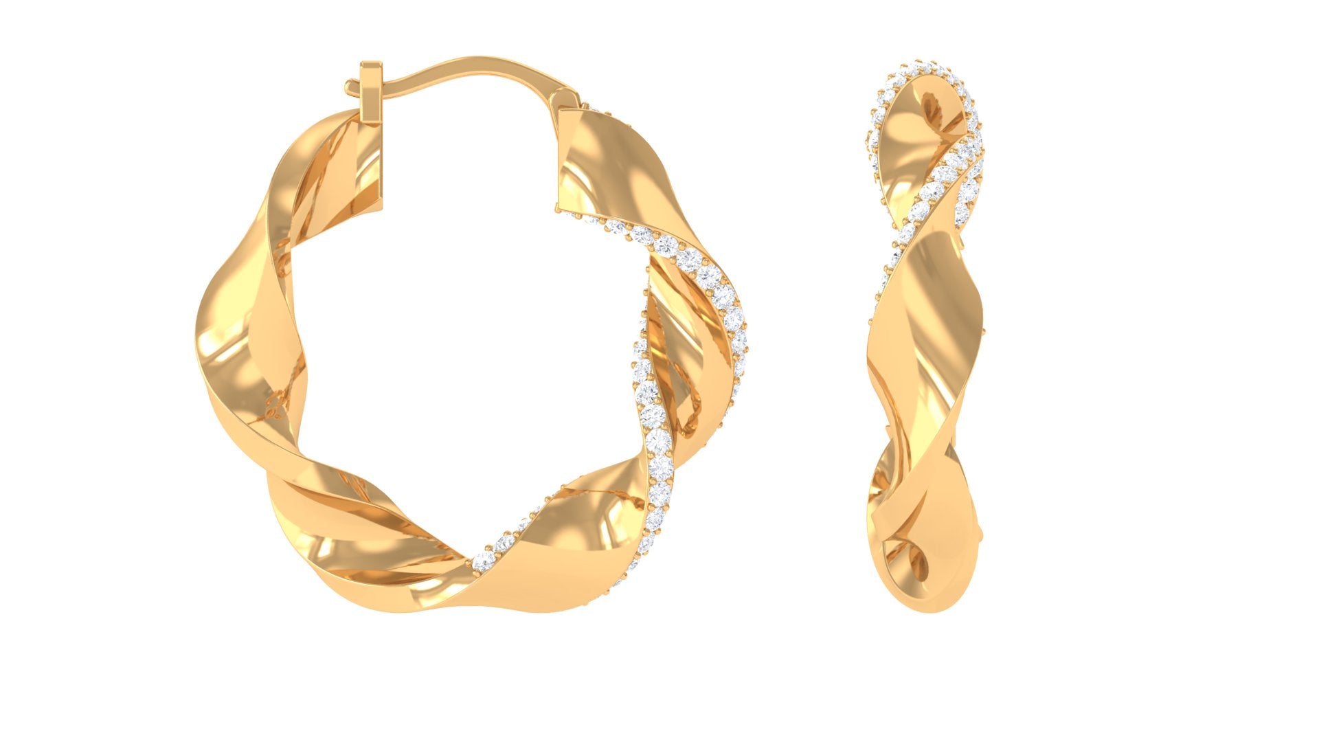 Bring more charm and sparkle to every outfit with these Twisted Hoop Earrings, a perfect blend of elegance and modern flair. The twisted design gives the Hoop an eye-catching look, while the sparkling Diamond stones add just the right amount of shimmer to catch the light beautifully from every angle. These Diamond Hoop Earrings feature a secure Snap Back Closure, making them ideal for all-day wear without compromising style. These Diamond Earrings for Women effortlessly elevate both casual and formal looks, pair them with your favorite dress for a night out or add a touch of sophistication to everyday outfits. Presented in a sleek jewelry box, these Diamond Hoops are ready to delight the wearer from the very first glance. Add them to your collection to enjoy a timeless accessory that complements every mood and every occasion with effortless grace and radiant charm.