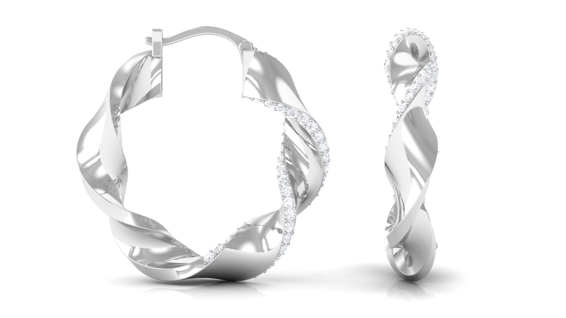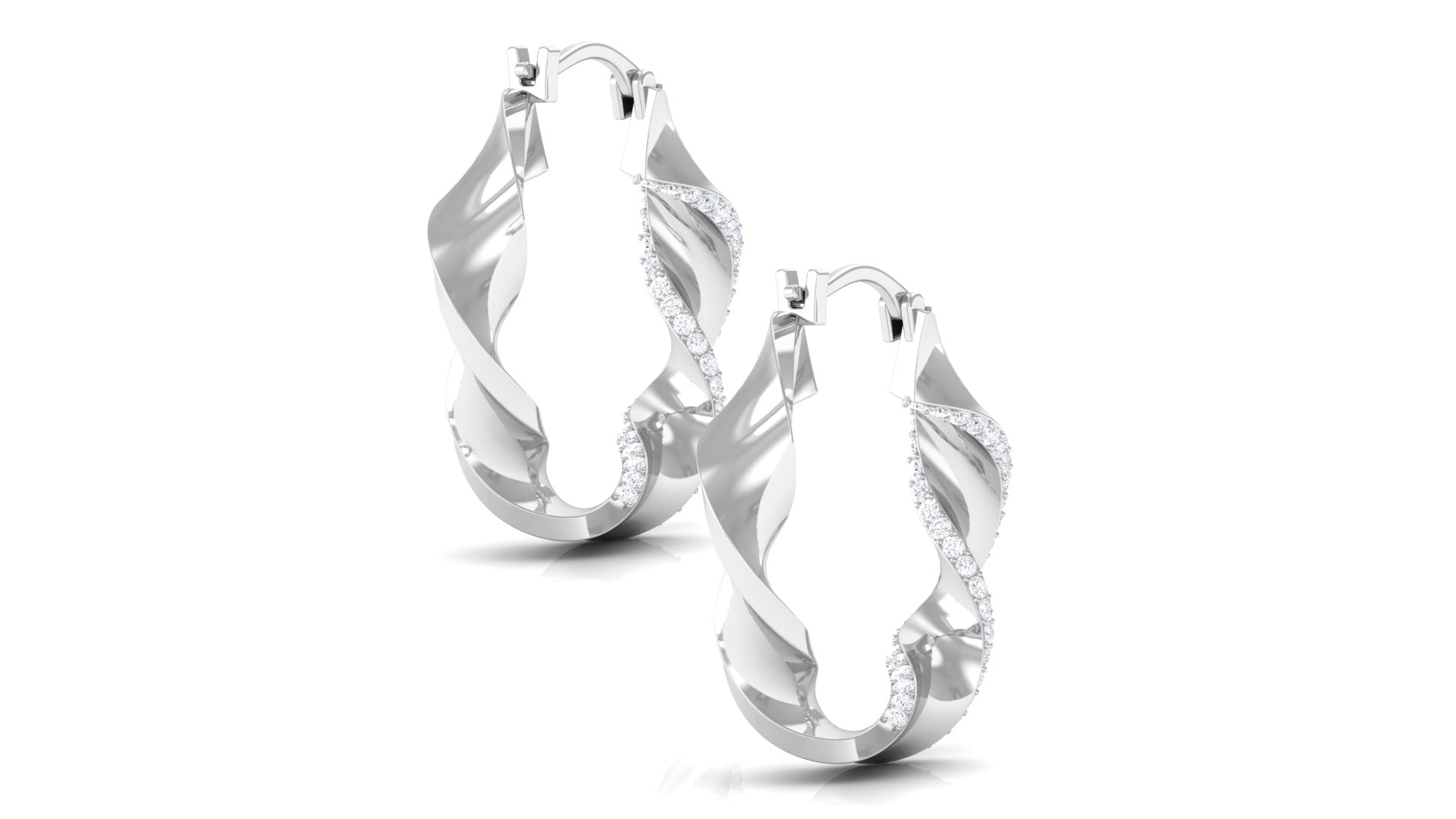 Natural Diamond Twisted Hoop Earrings with Snap Back