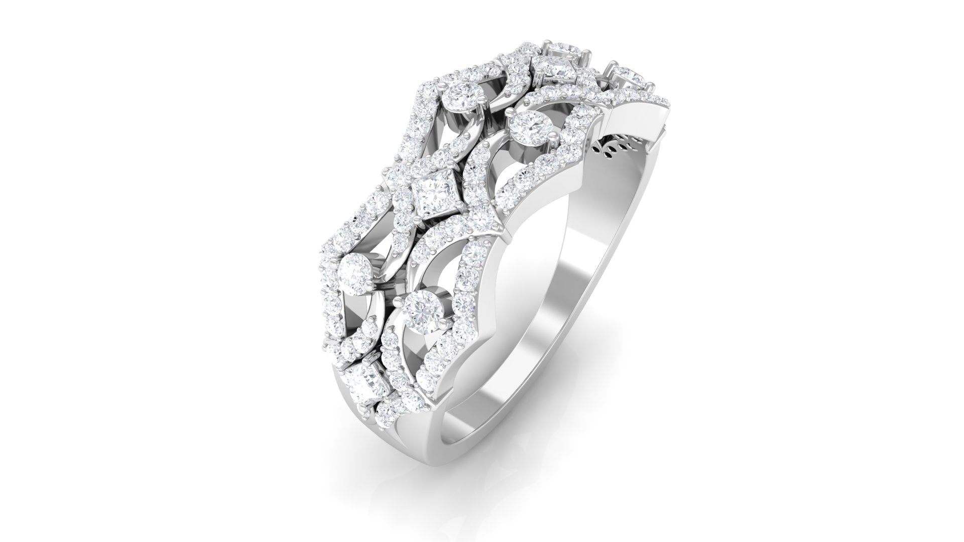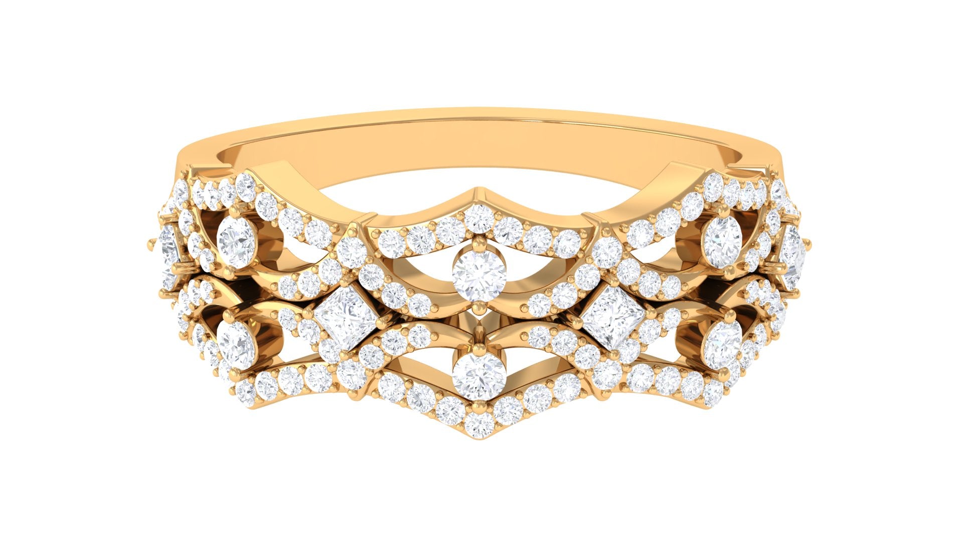 Mark the special occasion of your life with this dazzling Wedding Band. Princess and Round Shape Diamonds adorn this ring in a Prong Setting to make for a charming choice for your beloved.