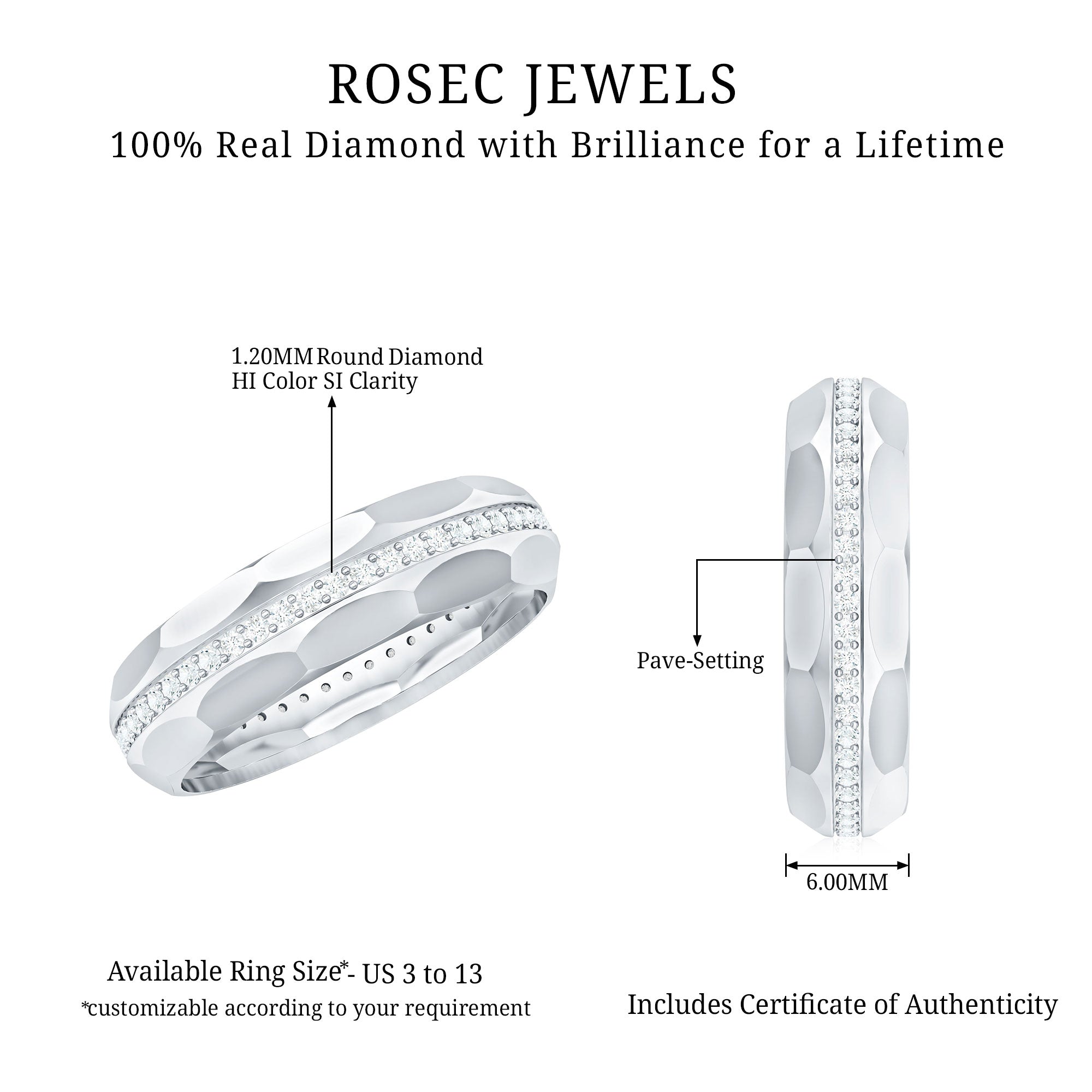 Capture the essence of everlasting love with an eye-catching Diamond Eternity Band Ring. This exquisite ring features a continuous loop of brilliant, Round Diamond that symbolize an unending bond. This timeless piece exudes elegance and sophistication with textured gold on the band. The sparkle of each diamond is accentuated by the carefully crafted Prong Setting, ensuring maximum brilliance from every angle with this Wedding Band Ring. Whether worn alone or paired with an engagement ring, this Eternity Wedding Ring radiates timeless beauty and serves as a powerful emblem of enduring commitment. Celebrate your love story with a symbol as eternal as your devotion with this April Birthstone Ring.