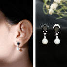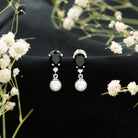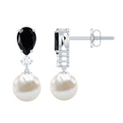 Natural Elegant Pearl Dangle Earrings with Black Onyx