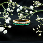 Natural Emerald and Diamond Half Eternity Wedding Band